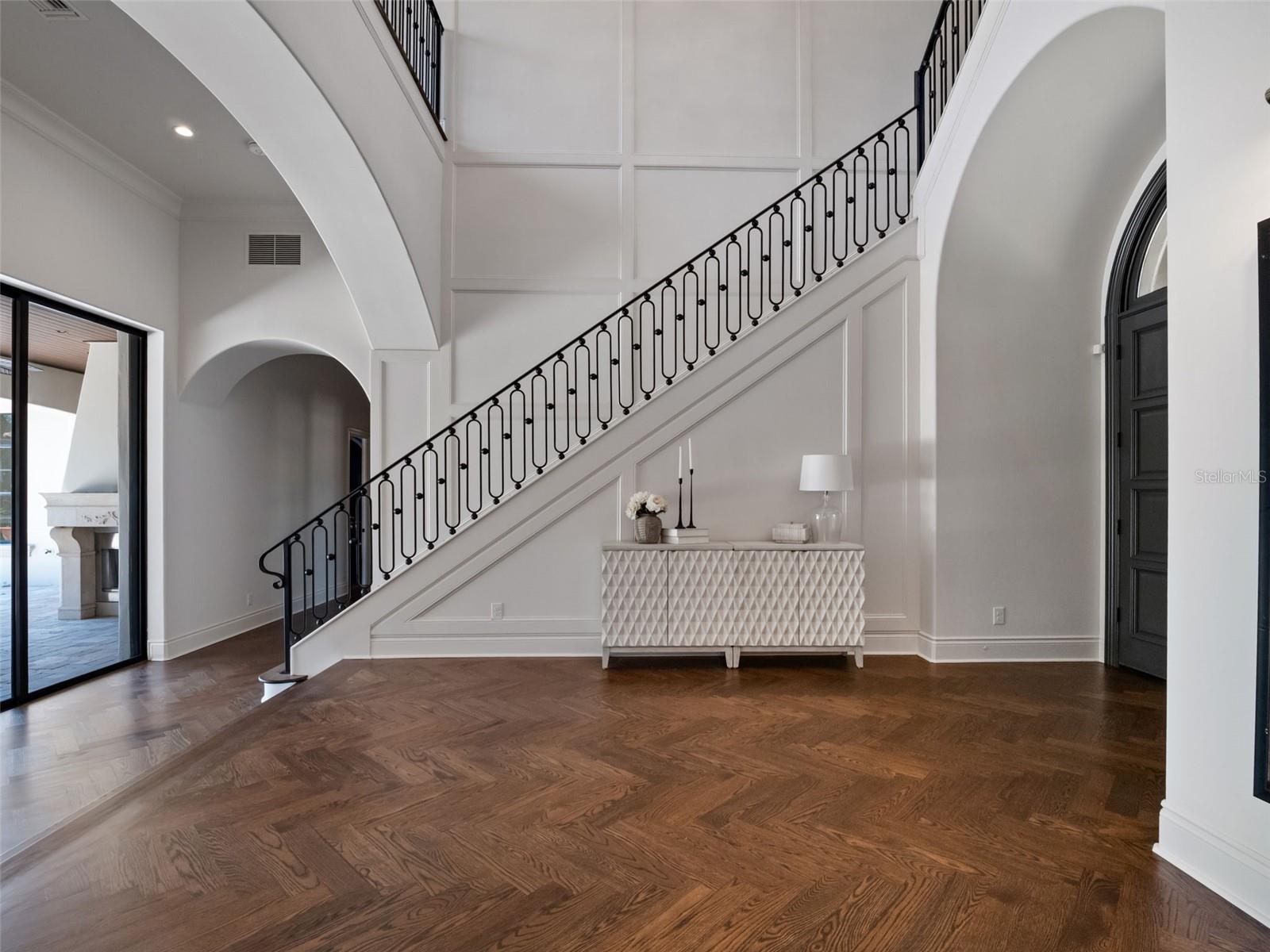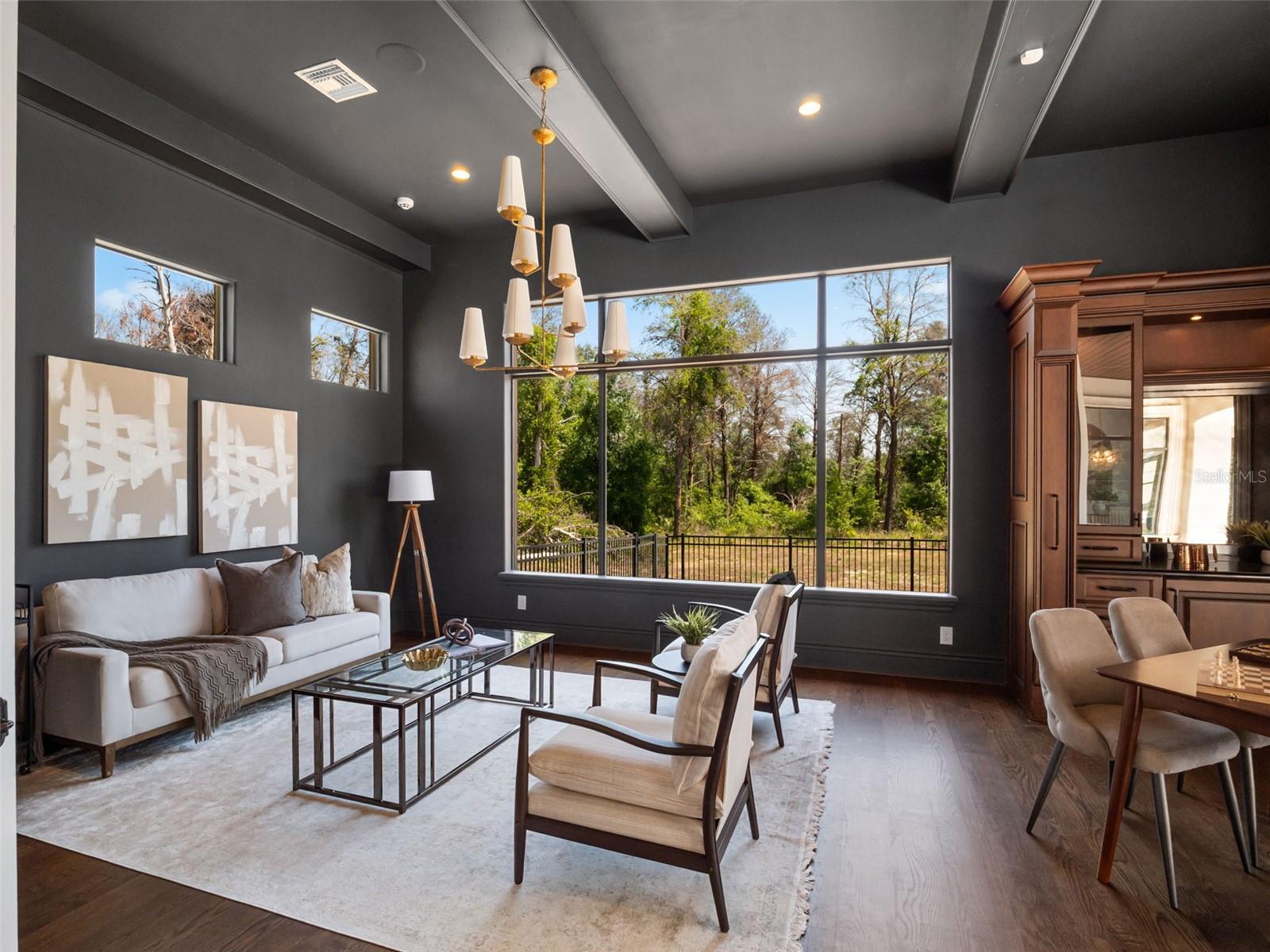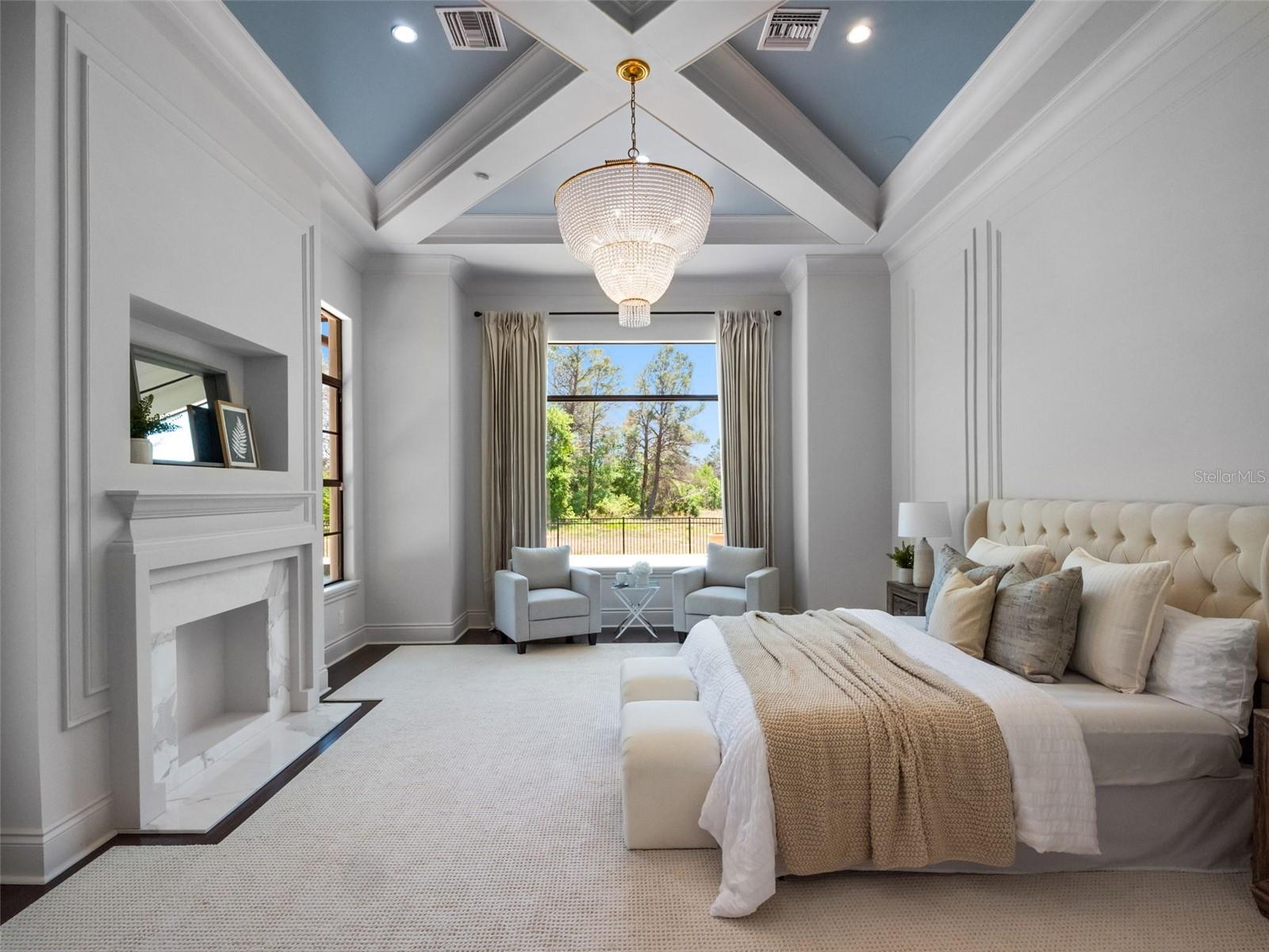 Sophisticated luxury in Bella Collina's Premier Golf Community, sits this exquisite estate, a true masterpiece of luxury living. Spanning over 6,500 square feet and situated on nearly 1.5 acres of impeccably landscaped grounds, this residence offers an unmatched blend of elegance, privacy, and resort-style amenities — including a breathtaking, oversized custom pool. Designed for those who appreciate the finer things, the home features 4 expansive bedrooms, 4 full bathrooms, 2 half baths, a private home office, a media room, and a spacious 4-car garage. Every room is thoughtfully positioned to take full advantage of panoramic views of Bella Collina’s lush surroundings. As you approach, a grand driveway framed by manicured gardens sets the tone for what lies beyond. Inside, soaring ceilings, newly installed hardwood floors, oversized windows, and a show-stopping chandelier create a dramatic and welcoming entrance, with unobstructed views of the pool and grounds drawing your eye from the moment you step inside. The main level is a seamless blend of form and function. The gourmet kitchen is a chef’s dream, outfitted with premium stainless steel Wolf appliances, a Lacanche range, custom cabinetry, Calacatta gold marble countertops, designer backsplash, a gas cooktop, and two oversized islands—ideal for both entertaining and culinary creations. Just off the kitchen, a warm and inviting family room features an elegant fireplace, custom coffered ceilings, and floor-to-ceiling sliding doors that extend the living space outdoors. Also on the main floor is the luxurious owner’s suite—an elegant retreat with a cozy seating area, serene natural views, dual walk-in closets, a lavish en-suite bath with soaking tub, dual vanities, Calcutta gold marble countertops, walk-in shower, private laundry, and a versatile flex space ideal for a gym, nursery, or additional office with a hidden features. The main level also includes a formal dining room with its own wine cellar, a guest suite with private bath, and a large laundry room with ample storage Upstairs, rich hardwood flooring continues throughout, leading to an oversized loft with built-in cabinetry, a formal sitting area, and picturesque views of the property. Two generously sized bedrooms, each with walk-in closets and luxurious en-suite baths featuring quartz countertops and designer tile finishes, complete the upper level. Outdoors, the covered lanai spaces are perfect for entertaining year-round, offering an outdoor kitchen, fireplace, and multiple seating areas. The oversized resort-style pool with spa creates a tranquil escape for relaxation or entertaining under the Florida sun. Residents of Bella Collina enjoy access to world-class amenities, including a championship Sir Nick Faldo-designed golf course, a Tuscan-inspired clubhouse with two restaurants, spa, fitness center, tennis courts, resort-style pool with cabanas, and scenic walking trails. The community also offers a private boat ramp, dog park, and 24-hour manned security for peace of mind. Ideally located with convenient access to major highways, this estate offers proximity to top-rated schools, elite medical facilities, luxury shopping, fine dining, and world-renowned theme parks. This exceptional property presents a rare opportunity to experience the pinnacle of luxury living in one of Central Florida’s most prestigious communities. Schedule your private tour today.