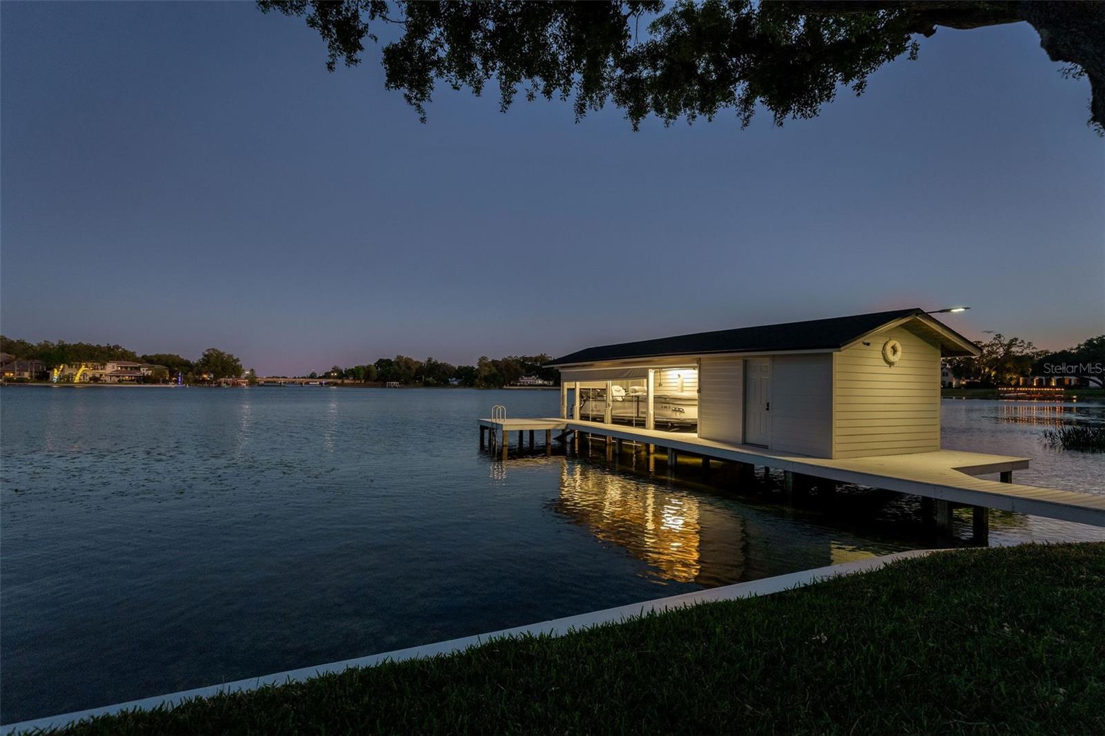 Discover unparalleled tranquility and luxury at this stunning Lake Conway residence. This beautifully renovated home promises exceptional privacy and captivating water views. A grand circular driveway, accented by elegant fountains, sets the stage for impressive gatherings and events. Step inside to be greeted by breathtaking panoramic lake vistas and sophisticated interiors. The gourmet kitchen, a true chef's delight, showcases a backlit onyx island, sleek countertops, and premium Bosch and Gaggenau appliances. Each of the three sumptuous bedroom suites features spacious custom closets, while a convenient vacuum elevator provides seamless access between floors. Designed with convenience and comfort in mind, this home includes a whole-house generator fueled by a substantial propane tank, ensuring uninterrupted power for weeks. The air-conditioned garage offers ample room for your vehicles and storage needs. Additional features include new luxury vinyl plank flooring, a movie projector with a retractable screen, automated hurricane screens, an electric car charging station, and a large Sub-Zero wine refrigerator. Situated on over half an acre, the expansive lot offers endless possibilities for outdoor living. Direct access to Lake Conway invites a myriad of water activities, complemented by a refurbished boathouse with a lift, storage closet, and fishing dock. The Lake Conway chain, spanning over 1,800 acres, is renowned for its crystal-clear waters and excellent fishing. Conveniently located just 20 minutes or less from Orlando International Airport, downtown Orlando, Orlando Health, the theme parks, and both Florida and Millenia Malls, this established community offers the perfect blend of seclusion and accessibility. Schedule a private showing today to experience the exquisite charm of this remarkable home. Pool rendering available upon request.