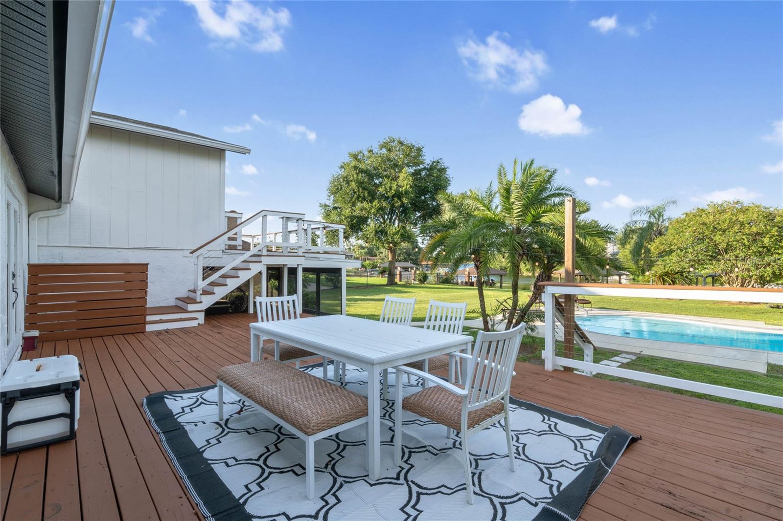 HALF AN ACRE ON LAKE CONWAY!! Lakefront POOL home on LAKE CONWAY CHAIN OF LAKES!! HUGE LOT WITH TONS OF EXTRAS! This spacious home features 4 Bedrooms and 2.5 bathrooms, the Tri-level floor plan includes a SPACIOUS family room with FIREPLACE!! Real Bamboo flooring throughout with the exception of one tiled bathroom. The owners suite includes elegant French doors to access the outdoors, a massive custom walk-in closet, spacious private bathroom for those well deserved at home spa days. The light and bright kitchen would delight any chef with ample space for preparing recipes and entertaining. The backyard is an entertainers dream to include, deck, screened porch, a large pool, and a stunning lake front view with your very own private boat dock built in 2020 with 220 electric and plumbing run. This home has a huge list of recent upgrades for extra piece of mind, new roof 2017, A/C 2020, New exterior paint 2024, New soffits 2024, new concrete 2023, new pool pump 2024. Schedule your showing today and make this home yours!