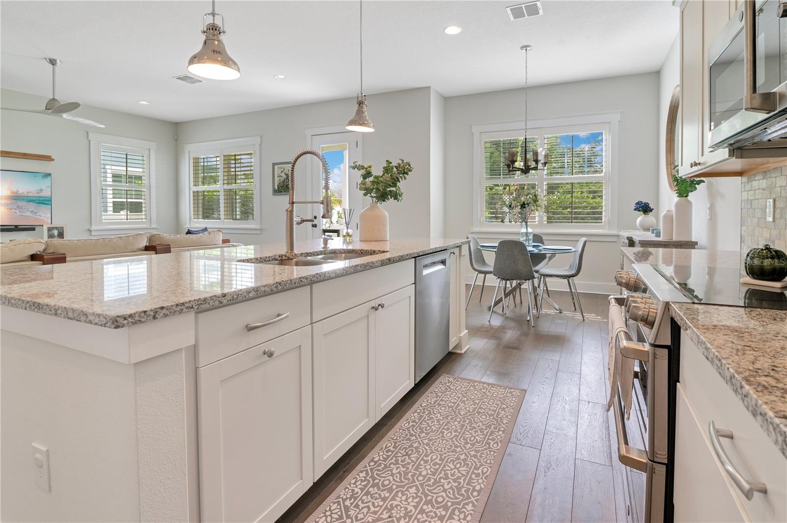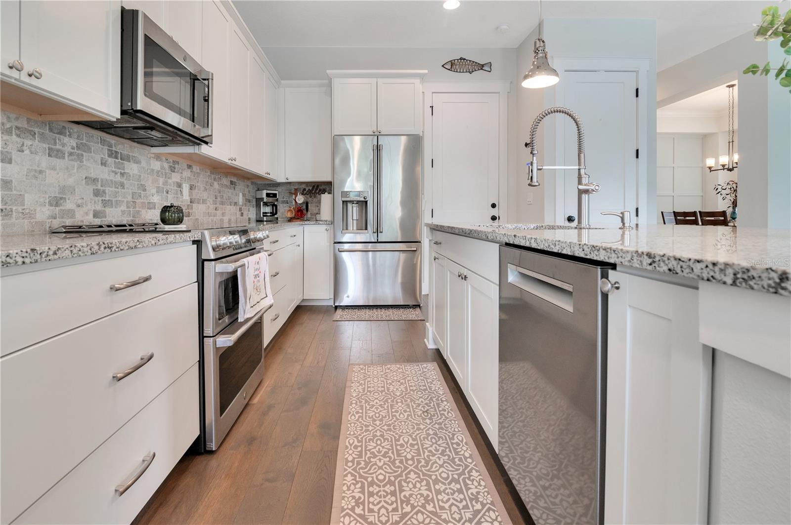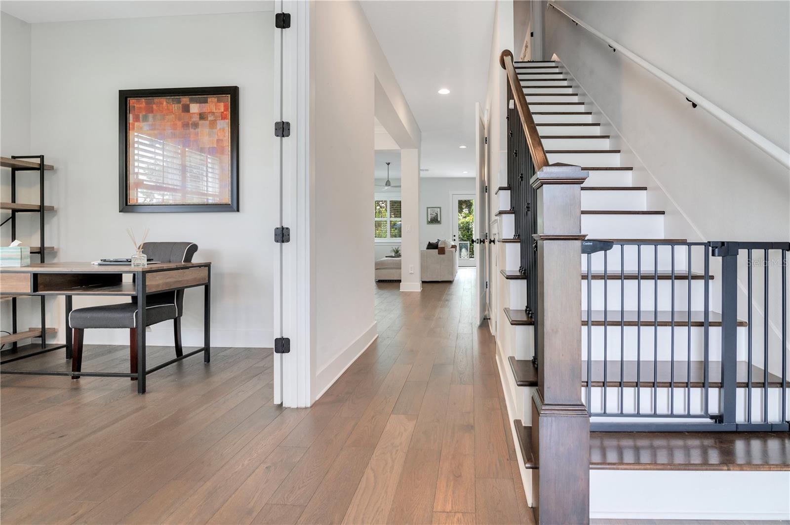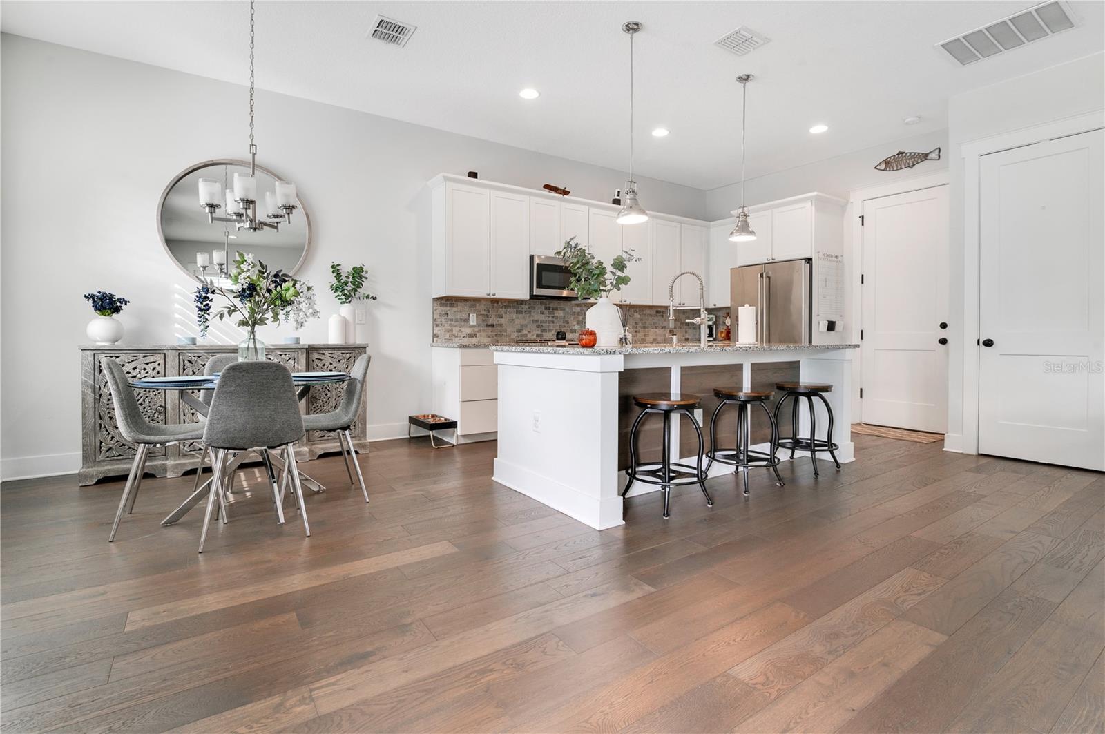 Under contract-accepting backup offers. Step into the charm and modern elegance of this thoughtfully designed 3-bedroom (+office), 2.5-bathroom, two-story home in the heart of Belle Isle. Being one of the few newer construction homes in the area, you're greeted with curb appeal from the moment you arrive, with an inviting front porch framed by beautifully manicured landscaping setting the tone for the quality and comfort that await inside. As you step through the front door, you’re welcomed by hand-scraped hickory wood floors that stretch across the main level, complementing the 10-foot ceilings that create an open and airy atmosphere. Historic-style wood details, including baseboards, door casings, and window surrounds, add timeless sophistication, making every corner of the home feel polished and inviting. The heart of the home is the impeccably designed kitchen, where functionality meets style. Featuring Aristokraft cabinetry, sleek granite countertops, and a GE Café series stainless steel appliance suite, this space is as practical as it is beautiful. The closet pantry offers abundant storage, while the open flow into the breakfast nook and spacious living room ensures you're always part of the action, whether hosting friends or enjoying a quiet evening. The primary suite is a true sanctuary, boasting a coffered ceiling with crown molding for a touch of elegance. The walk-in closet provides ample storage, while the ensuite bath invites relaxation with its premium finishes and thoughtful design. Upstairs, the additional bedrooms are equally well-appointed, offering comfortable accommodations with large closets and easy access to the upstairs bathrooms. Step outside into your private backyard retreat. The expansive paver patio is perfect for al fresco dining or unwinding under the stars, surrounded by lush greenery. A charming side gate adds to the ambiance, offering a seamless blend of beauty and practicality in this outdoor haven. This home doesn’t just deliver beauty; it’s also built with efficiency in mind. MI insulated low-E argon-filled windows, R30 attic insulation, and foam-filled insulated block walls work together to keep your energy bills low and your comfort high. The 14 SEER Carrier A/C-heat pump with a digital thermostat ensures year-round climate control, while durable Hardie siding on door frames, window trim, and ceilings adds lasting protection against the elements. Zoned for Pershing K-8 and PRIORITY given to residents of Belle Isle for Cornerstone Charter! Situated just a block away from Randolph Street Public Boat Ramp, Florida boat days on Lake Conway are on your horizon! Whether you're relaxing on the charming front porch, entertaining in the open-concept living areas, or enjoying the thoughtfully designed outdoor space, this home promises a lifestyle of comfort, efficiency, and timeless elegance. Schedule your private showing today — this gem won’t last long!