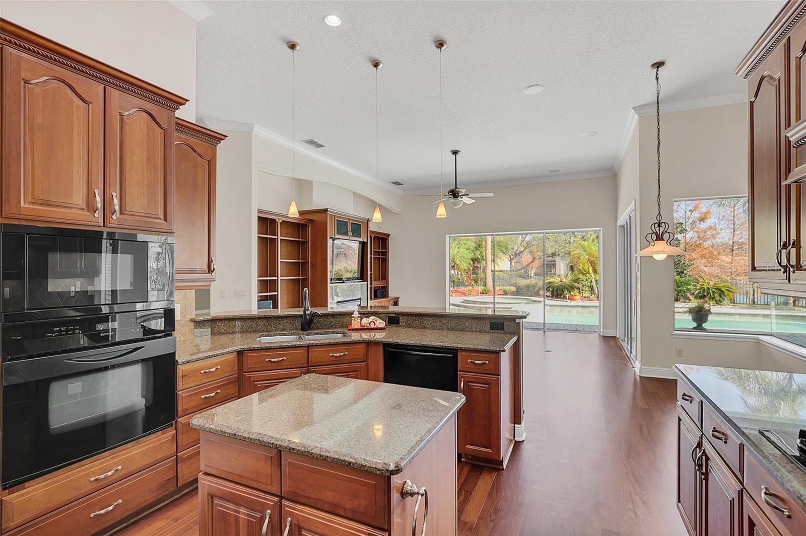 Location, Location, Location!! This beautiful five bedroom five bath pool home in the highly sought after Belle Isle gated neighbor of the Highlands at Lake Conway is waiting for its new owner. This home was built by the acclaimed Reiche Silliman Homes. The property has an easy access curved large driveway. As you enter the home through the freshly landscaped front yard, you are greeted with loads of light and a beautiful wood foyer with soaring ceilings. Off the foyer is the dining room and living room with French doors out to the pool area. To your right at the front of the house is a guest area, which includes a generous sized bedroom and a full bath. Off the living area is the primary suite boasting a large bedroom with walk-in closet and sliders to the pool area. The primary bath is oversized with dual vanities, garden tub, large standup shower, toilet room and an additional walk-in closet. Back out in the main area of the home off the living/dining area is the kitchen. This kitchen features wood floors with beautiful cabinetry, granite countertops, breakfast bar, eat in space along with a small island, closet pantry and a gas cooktop. The kitchen is open to the family room where the wood floors continue and a gas fireplace is encased in beautiful built-in cabinetry. Sliders lead out to the beautiful backyard. Off the family room is a full pool bath with standup shower. As you continue you have three additional bedrooms, two of which are joined by a Jack and Jill bath. As you continue on the ground floor you walk by a cozy work station located just outside the large inside laundry room and a door leading to the three car garage. Back in the house are stairs leading up to the large bonus room boasting a wet bar with built-in cabinetry and a pool table. This room features the fifth full bath. Outside is a backyard oasis featuring a pool, a spa, an outside shower and a covered lanai and beautiful landscaping overlooking a pond. This home is a must see!!!