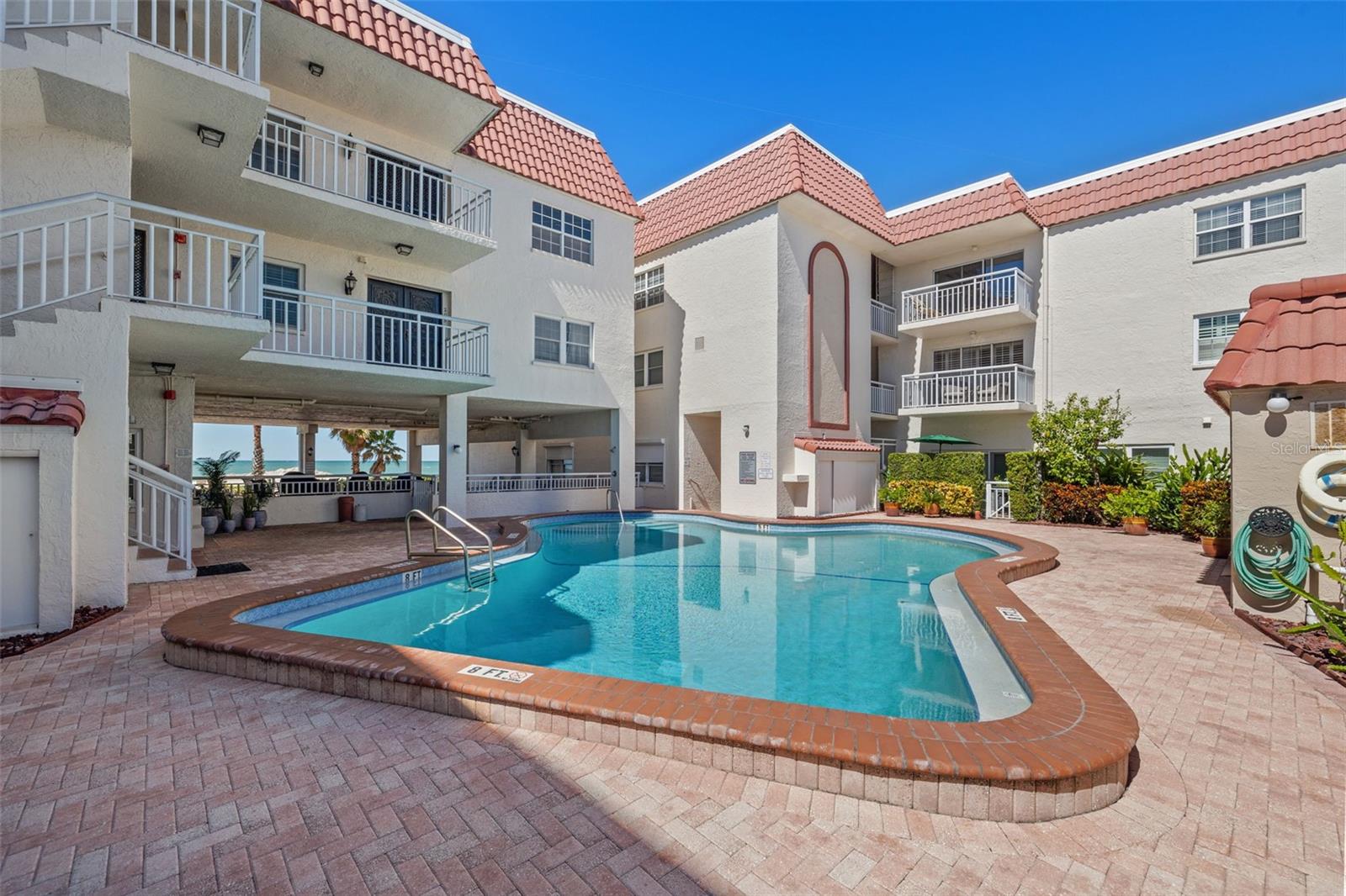 Discover the ultimate beach lifestyle in this fully FURNISHED 2-bed, 2-bath 2nd-floor end unit at Sereno Del Sol in Belleair Beach. With 1369 sq ft, this condo features an open floor plan, plantation shutters, new appliances (2021), inside laundry, and a great view of the pool. The galley kitchen offers ample cabinetry and a cozy eat-in area. Belleair Beach has something for everyone—gentle waves, gorgeous sunsets, and delightful walks along the soft sandy shore. Enjoy the nearby Sand Key Park (less than 2 miles away), known for its diverse wildlife, and plenty of local activities. The trolley stop is close by, and you can easily access Clearwater Water Sports, Pier 60’s sunset events, or try your luck fishing off Clearwater Beach Pier. Dine at beachfront restaurants like Frenchy’s Rockaway Grill, or take a ferry to Caladesi Island State Park for an unforgettable day. Sereno Del Sol, a waterfront community, offers a large, heated pool, gated entry, and a covered breezeway with tables and chairs to enjoy Gulf of Mexico views. The seller has a great rental history, making this an excellent investment opportunity.