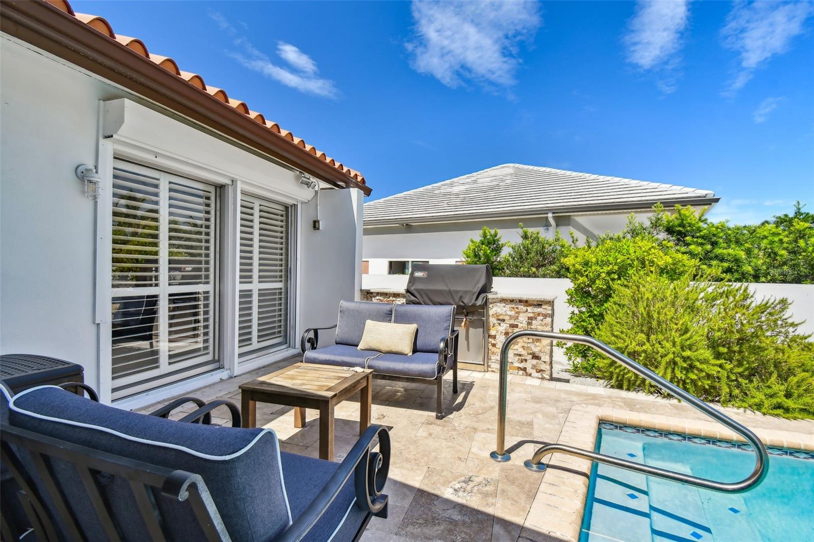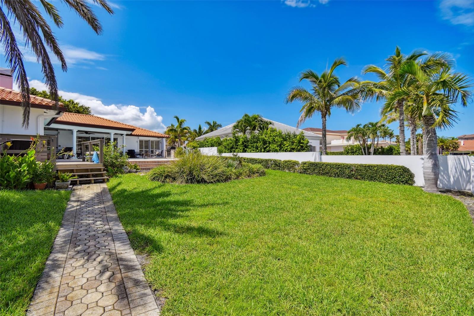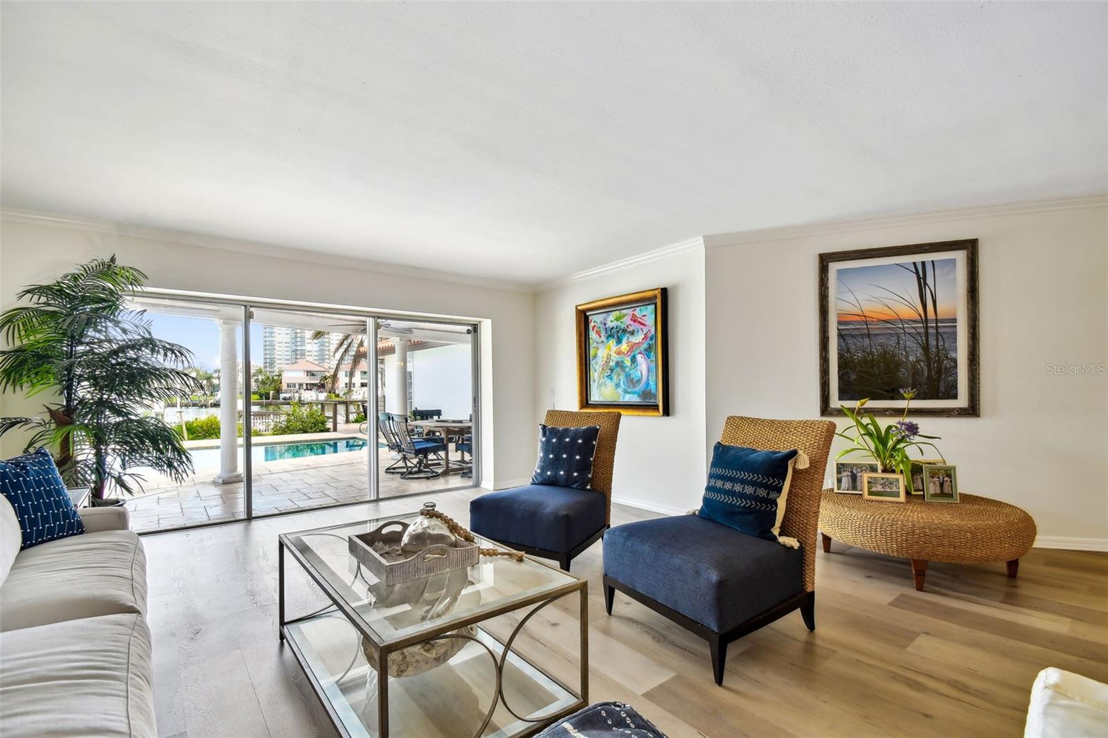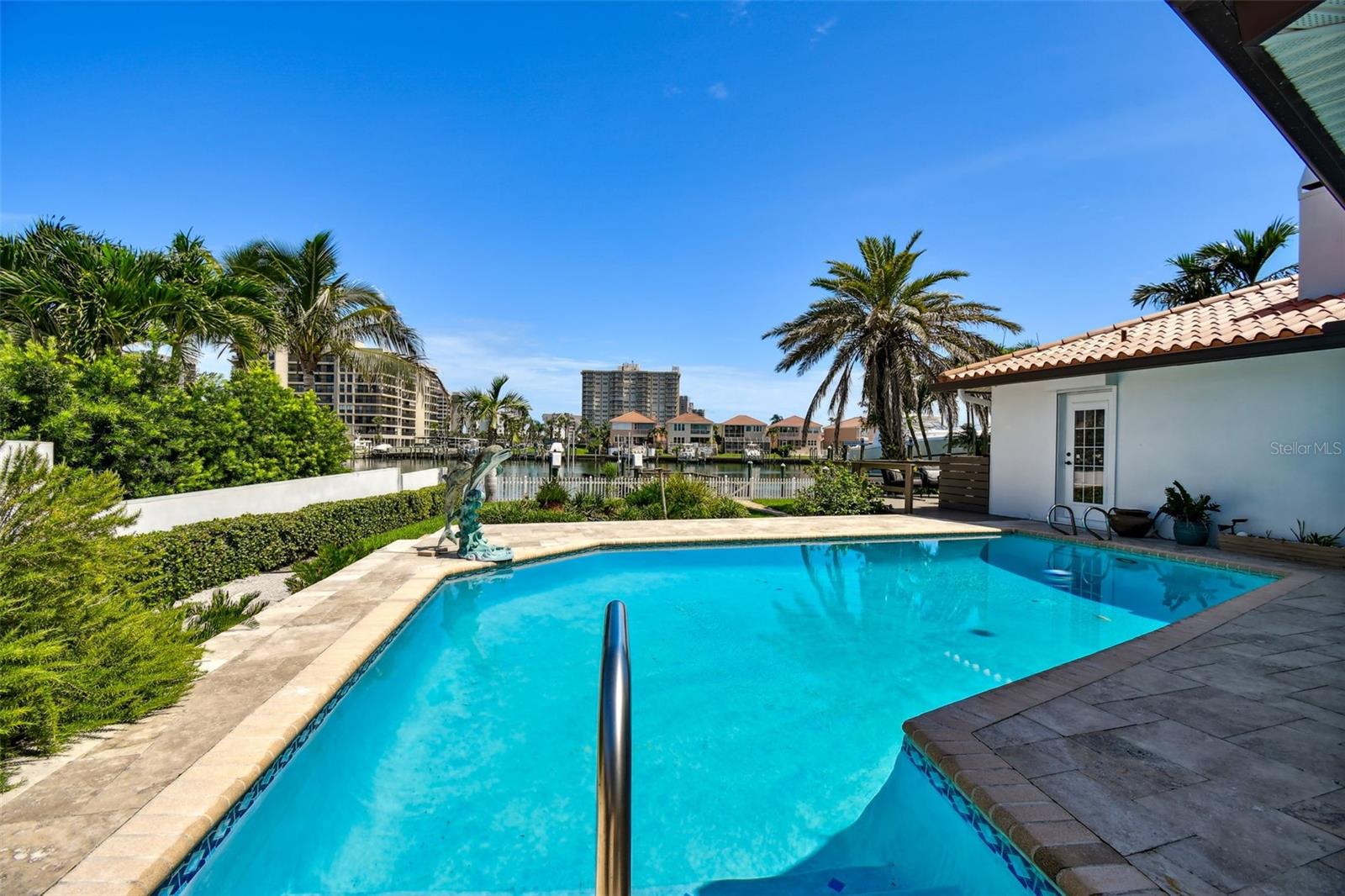 UNAFFECTED BY FLOODING - Waterfront Oasis Steps from the Beach - Just a block from the private pedestrian BEACH Access on Harrison Ave, this 4-bedroom, 3-bathroom residence, located in the coveted city of Belleair Beach, offers bright and airy coastal living, cozy fireplace, large eat-in kitchen, granite countertops, high-end appliances, 3 autonomous sleeping quarters featuring spacious bedrooms. Oversized primary suite comes with private access to the pool area, his/hers walk-in closets and an en-suite bathroom. Speedy access to the Gulf from the deep-water Intracoastal waterway. 69 feet of water frontage, 12K lbs boat lift, NEW dock and decking. The house is equipped with an energy-efficient water softener system as well as a whole-home GENERATOR. Home has received significant RECENT UPDATES (new floors, pool resurfacing, new outdoor Weber built-in gas grill, hurricane rated garage door, plantation shutters, garage floor epoxy, new pool heater & pump, new interior exterior painting just to name a few).