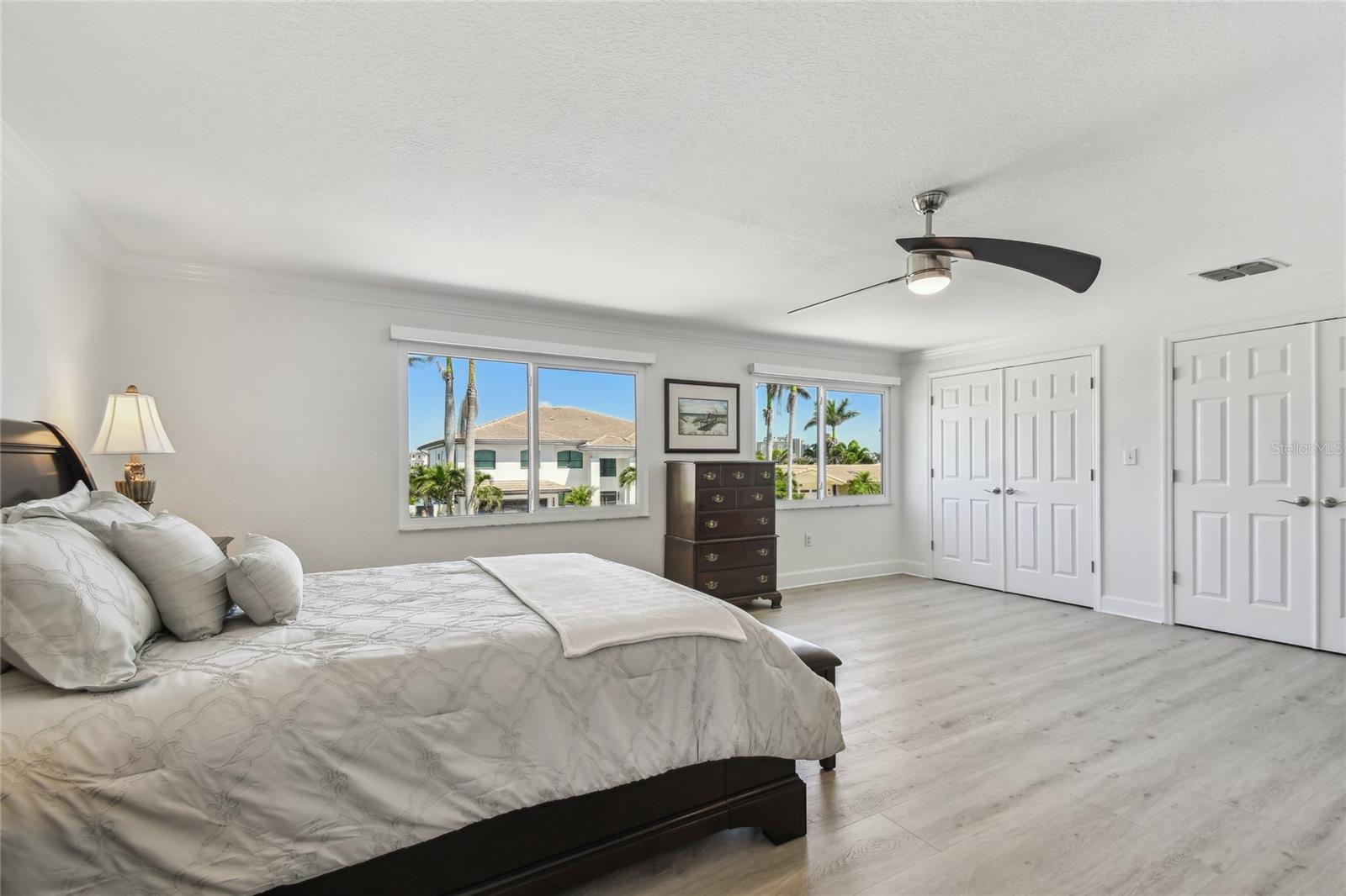 Welcome to the pinnacle of coastal luxury in the prestigious enclave of Belleair Beach where everyday living feels like a world-class waterfront vacation. This spectacular five-bedroom, five-bath estate delivers 3,793 sq. ft. of refined elegance, magnificent architecture and unforgettable views stretching across the shimmering Intracoastal waterway. Step through the grand entry and feel the home unfold with breathtaking impact showcasing soaring ceilings, gleaming marble floors, and walls of glass framing mesmerizing water vistas from sunrise to sunset. The gourmet kitchen is a chef’s fantasy displaying granite counters, premium stainless appliances, gas cooktop, two dishwashers, touchless faucet, Bosch refrigerator, and a full-size wine refrigerator ready for lavish entertaining. Two versatile first-floor bedrooms include a dedicated office with built-ins and a private ensuite bedroom with a handicap-accessible bath. Upstairs, an alluring loft leads to two guest bedrooms and an extraordinary primary suite featuring dual closets, a jewelry closet, a spa-inspired bath with soaking tub, oversized shower, and dual vanities. There is a private bonus room off of the primary bath currently being used as a gym, with panoramic water views and its own balcony completing this luxurious sanctuary. Remote-controlled electric window treatments throughout the entire home elevate the ease of everyday living. Step outside and indulge in your private paradise. A heated saltwater pool, standalone spa, expansive waterfront patio, and a fully equipped dock with a 10,000-lb boat lift, a jet ski lift (for 2 jet skis) and a kayak lift/launch, all with water and electricity. The home comes equipped with a Generac generator servicing the entire home, adding priceless peace of mind. Belleair Beach’s private resident-only beachside is just a short distance or golf cart ride away, along with boutique dining, shopping, and vibrant beachside entertainment with nearby Indian Rocks Beach and Clearwater Beach. All watercrafts are available for purchase but DO NOT convey with the sale of the home. This spectacular WATERFRONT HOME experienced NO WATER INTRUSION OR STORM DAMAGE. FLOOD POLICY is ASSUMBLE and reasonably priced.