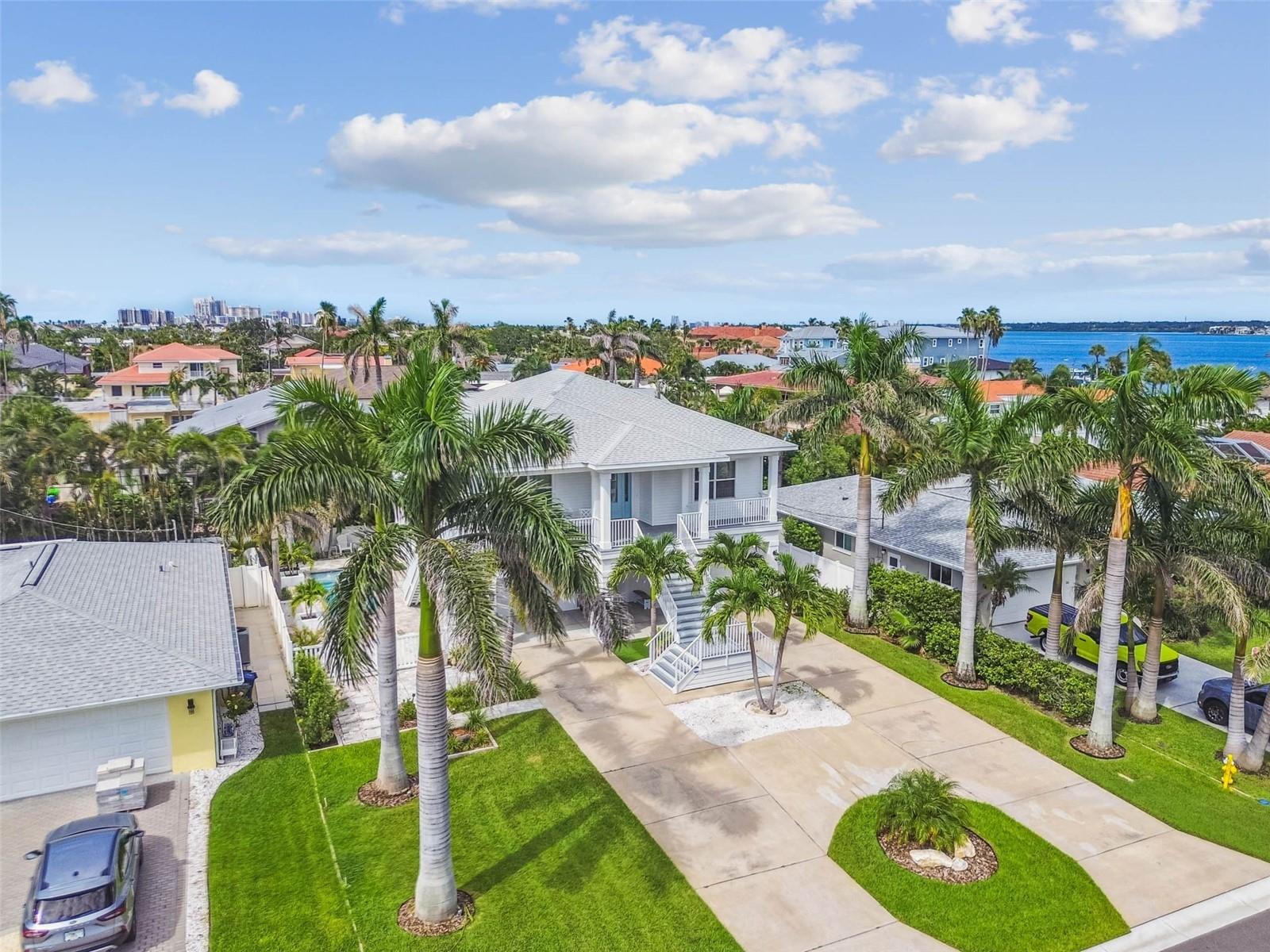 Over 4,500 sq. ft. of living and entertaining space with an elevator and a beautiful pool with fountains! Live in one of the most exclusive beach communities on the west coast of Florida! Belleair Beach is home to less than 700 households and fewer than 1,700 residents with 3 private beach entrances featuring resident only parking. This elegant elevated custom built home offers sunrise views over the intracoastal waterway in the morning and sunsets over the Gulf in the evenings from the expansive 394 sq. ft. covered front porch. Ideally located only 5 houses from both the beach and intracoastal. Take a quick golf cart ride to the community center for tennis and pickleball or a short stroll and you’ll be fishing off the community dock one street away or head toward the Gulf and enjoy the private and exclusive beach access to the world-famous white sands. You don't have to worry about this house flooding, it was custom built in 2016 as an upscale residence to FEMA standards with a main floor elevation of 17.5 feet, so even insurance costs are minimal. Step inside and enjoy the light and bright living area with custom molding and fine detail work throughout. From vaulted cathedral ceilings, marble floors, and hand-scraped hardwood, to Abalone shell accent walls, the luxury of this home is impeccable. Built to detailed and exacting standards as a beach house for national television show hosts, the design boasts the ideal entertaining and living space that even includes an elevator. The 4-car tandem garage floor has new Polyaspartic flooring which is four times stronger than epoxy and perfect for the island lifestyle, pool entertainment room and gym. Just outside the double doors of the downstairs area is the custom pool with a splash pad, jets, and color changing fountains. If you’re looking for a beautiful, elevated beach house in the prestigious neighborhood of Belleair Beach, this move-in ready jewel is an investment for generations. View the Matterport 3D walkthrough for a detailed view of the entire house. All measurements are approximate and should be verified by buyers.