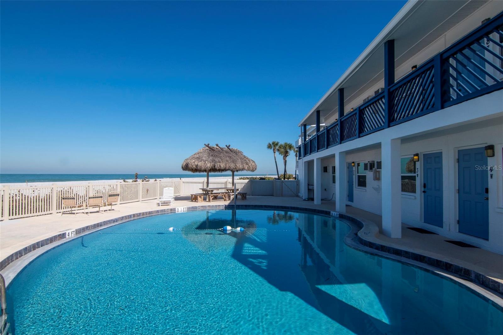 This is true ground-floor Gulf-front living in quiet, residential Belleair Beach — no stairs, no elevators, nothing between you and the water!! The building offers just 15 total residences, 7 on the ground level — and only 4 enjoy direct beachfront access. Among those four, this residence occupies one of the premier beachfront positions in the building, with effortless walk-out access to both the private beachfront pool and the Gulf. Completely rebuilt from the studs out following Hurricane Helene, this home represents a true interior reset. All finishes, appliances, cabinetry, and systems are new, delivering modern reliability within a boutique beachfront setting. The interior is pristine and thoughtfully curated in refined coastal tones, featuring custom cabinetry and an updated bath. Every detail is intentional and meticulously maintained. Offered fully furnished and impeccably turn-key — furnishings, linens, dishes, and décor included — allowing for immediate enjoyment. Short-term rentals are permitted, providing flexibility for personal use or income potential. Recent building enhancements include a new 2024 metal roof and a professionally repainted exterior completed within the last month, lending the property a crisp, refreshed presence that reflects the care invested throughout. New landscaping and updated pool furnishings are scheduled for installation, further elevating the private beachfront setting. HOA coverage includes reserves and master insurance, including flood insurance, providing rare confidence in beachfront ownership. A ground-floor beachfront opportunity that rarely comes to market!