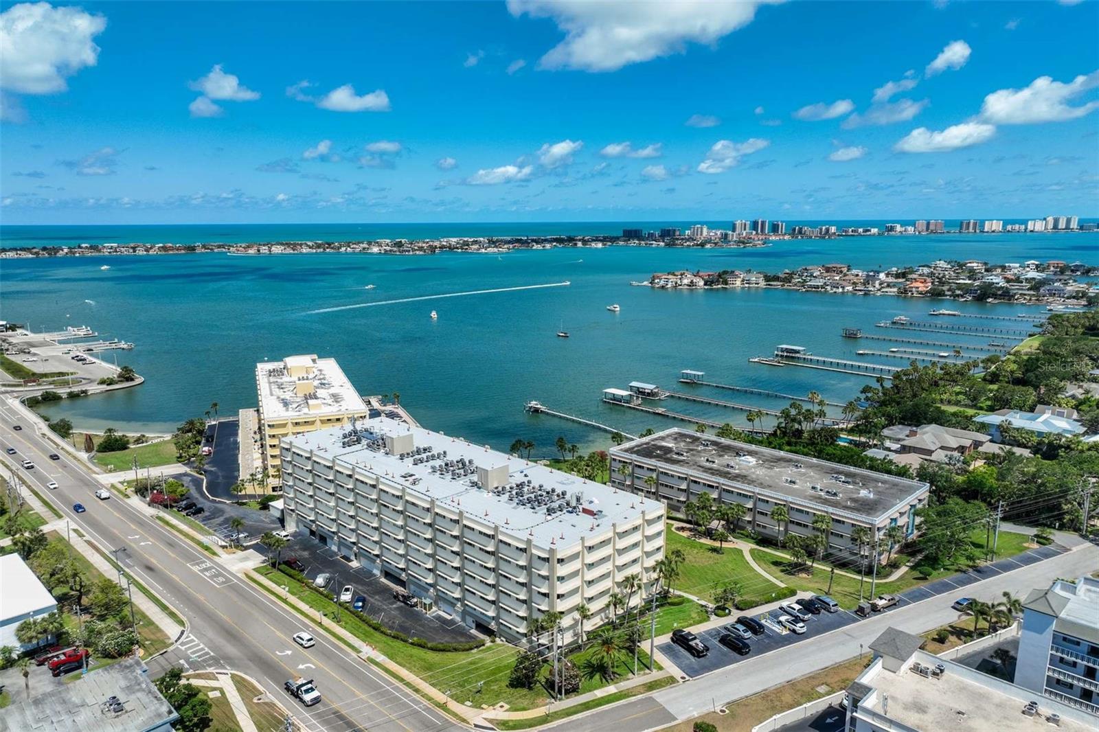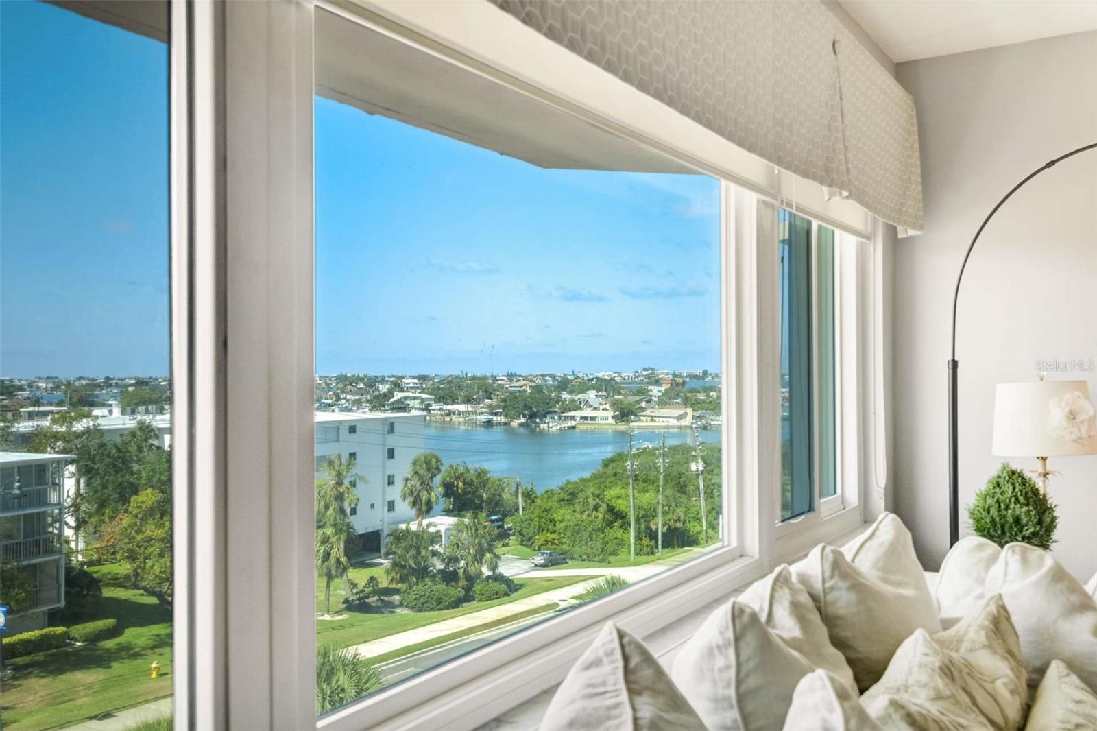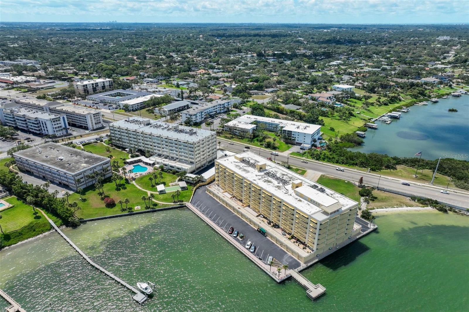 Enjoy breathtaking southern views of the Intracoastal Waterway from this beautifully updated 2-bedroom, 2-bath condo located in the heart of Belleair Bluffs. This bright and spacious unit features a modern, fully updated kitchen with stone countertops, stainless steel appliances, and ample cabinet space. The open-concept living and dining area is enhanced by wide plank laminate flooring and large, hurricane impact windows (2020) that flood the space with natural light and frame the sparkling water views. The primary suite offers serene intracoastal views, a large walk-in closet, and an en-suite bathroom with updated fixtures and tile. The second bedroom is generously sized and adjacent to an updated guest bath. Additional features include an in-unit washer and dryer as well as a bonus space perfect for a home office or reading nook. Enjoy peace of mind with an updated HVAC and water heater (2022). Experience resort-style amenities in this well-maintained, 55+, waterfront, non-flood zone community, including a heated pool overlooking the intracoastal, fitness center, clubhouse, and assigned parking in the secure garage. Located just minutes from award-winning Gulf beaches, top-rated dining, and shopping, this condo offers the perfect combination of luxury, location, and low-maintenance living.