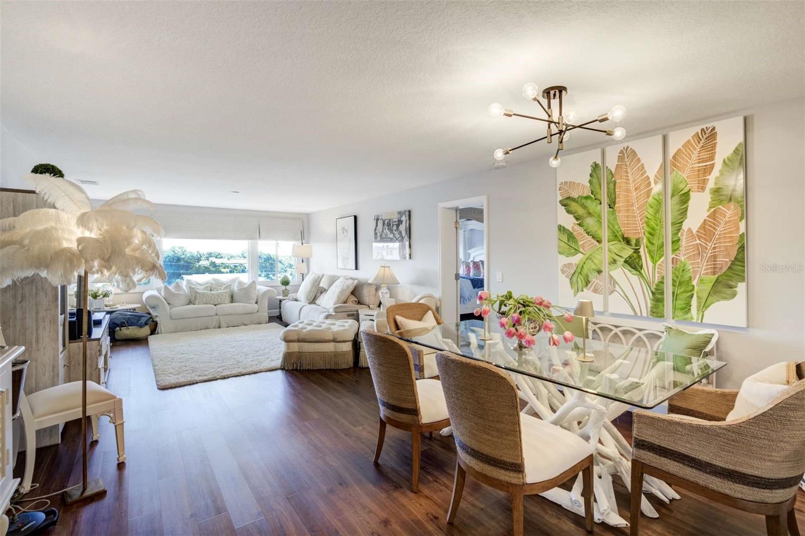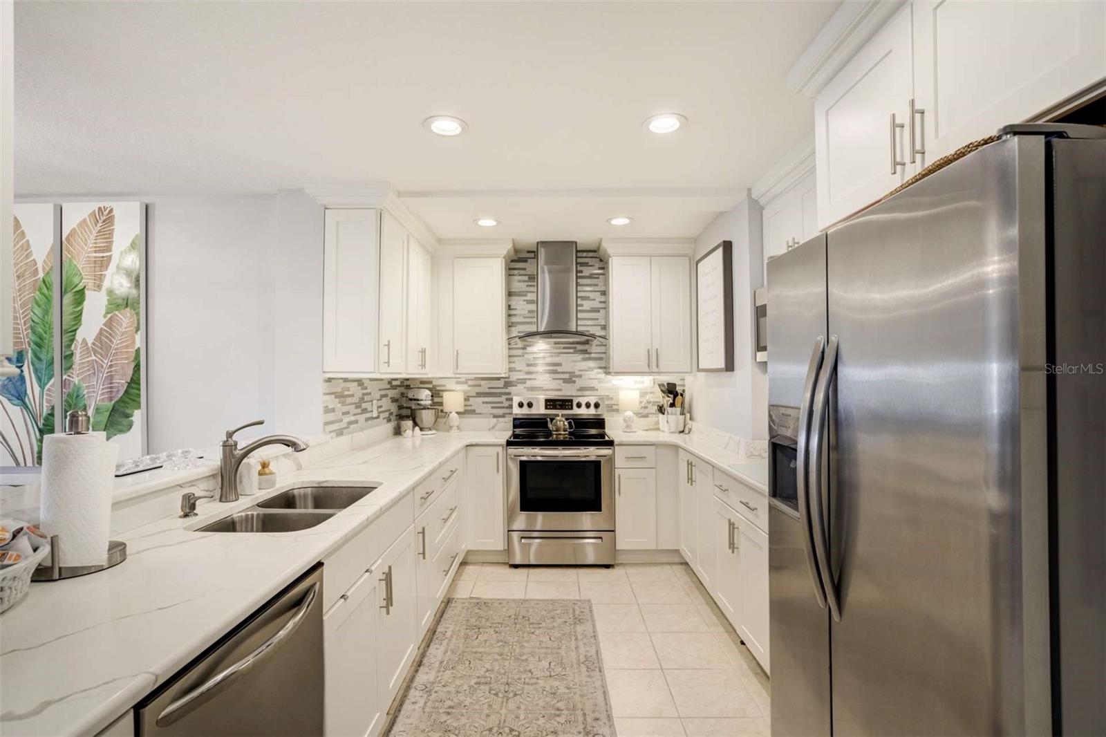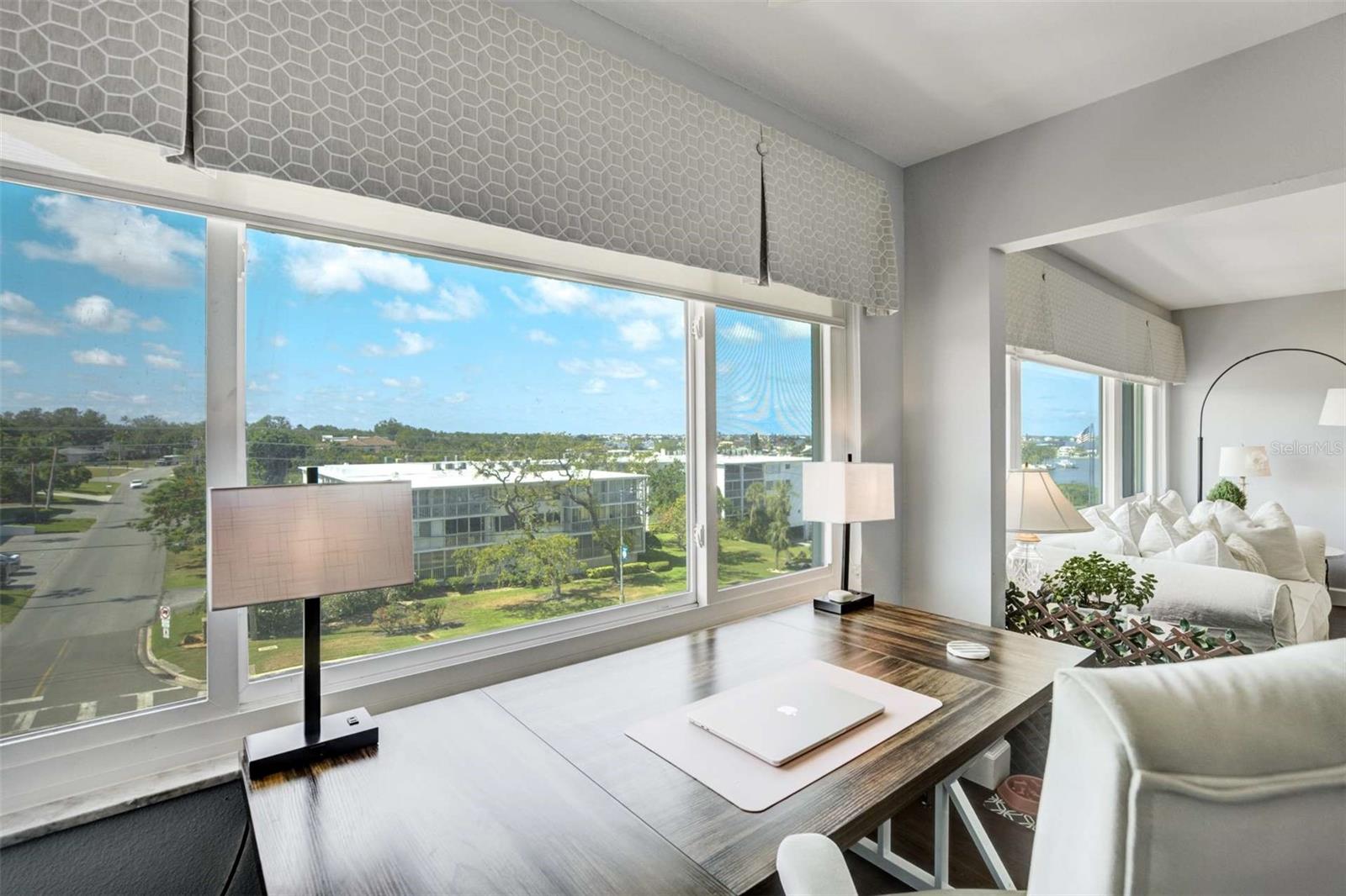 Enjoy breathtaking southern views of the Intracoastal Waterway from this beautifully updated 2-bedroom, 2-bath condo located in the heart of Belleair Bluffs. This bright and spacious unit features a modern, fully updated kitchen with stone countertops, stainless steel appliances, and ample cabinet space. The open-concept living and dining area is enhanced by wide plank laminate flooring and large, hurricane impact windows (2020) that flood the space with natural light and frame the sparkling water views. The primary suite offers serene intracoastal views, a large walk-in closet, and an en-suite bathroom with updated fixtures and tile. The second bedroom is generously sized and adjacent to an updated guest bath. Additional features include an in-unit washer and dryer as well as a bonus space perfect for a home office or reading nook. Enjoy peace of mind with an updated HVAC and water heater (2022). Experience resort-style amenities in this well-maintained, 55+, waterfront, non-flood zone community, including a heated pool overlooking the intracoastal, fitness center, clubhouse, and assigned parking in the secure garage. Located just minutes from award-winning Gulf beaches, top-rated dining, and shopping, this condo offers the perfect combination of luxury, location, and low-maintenance living.