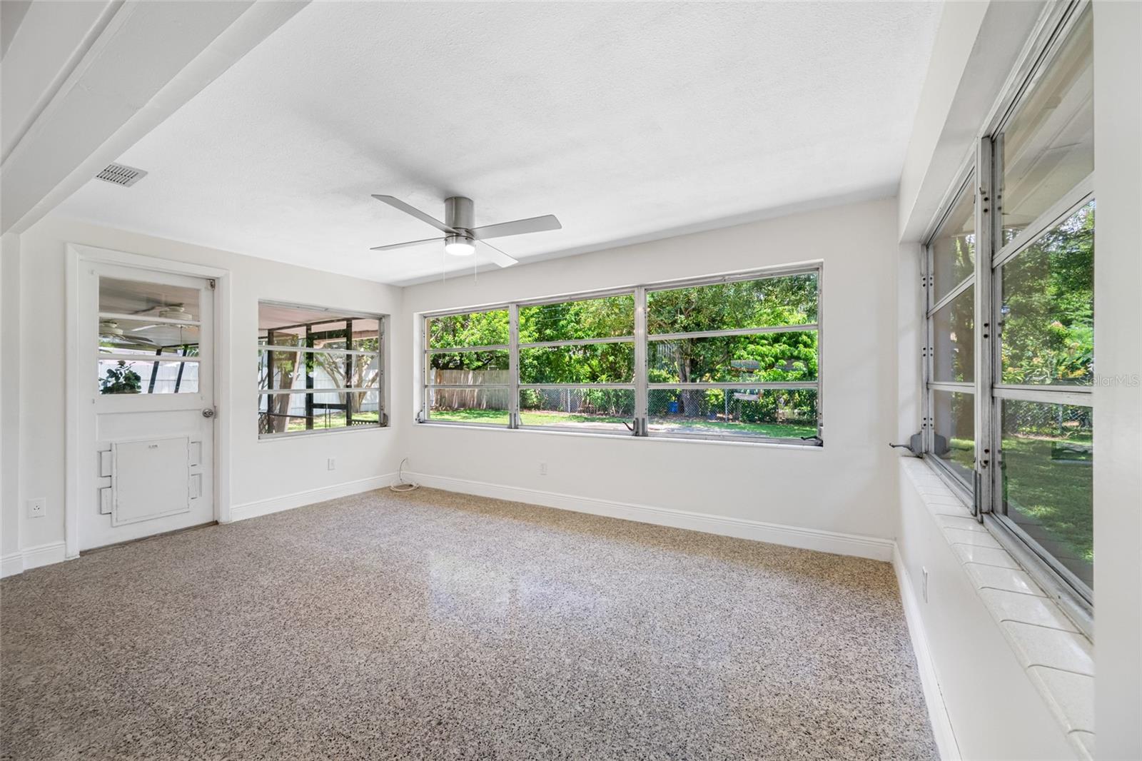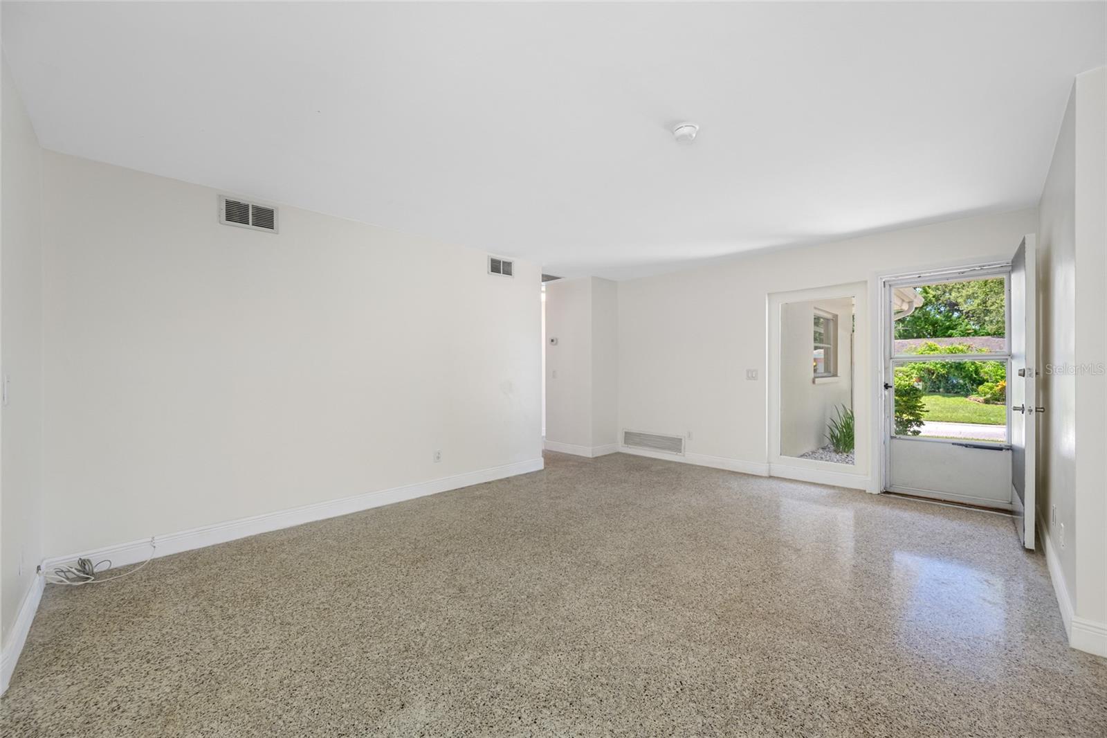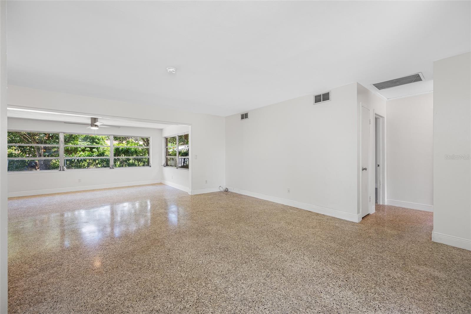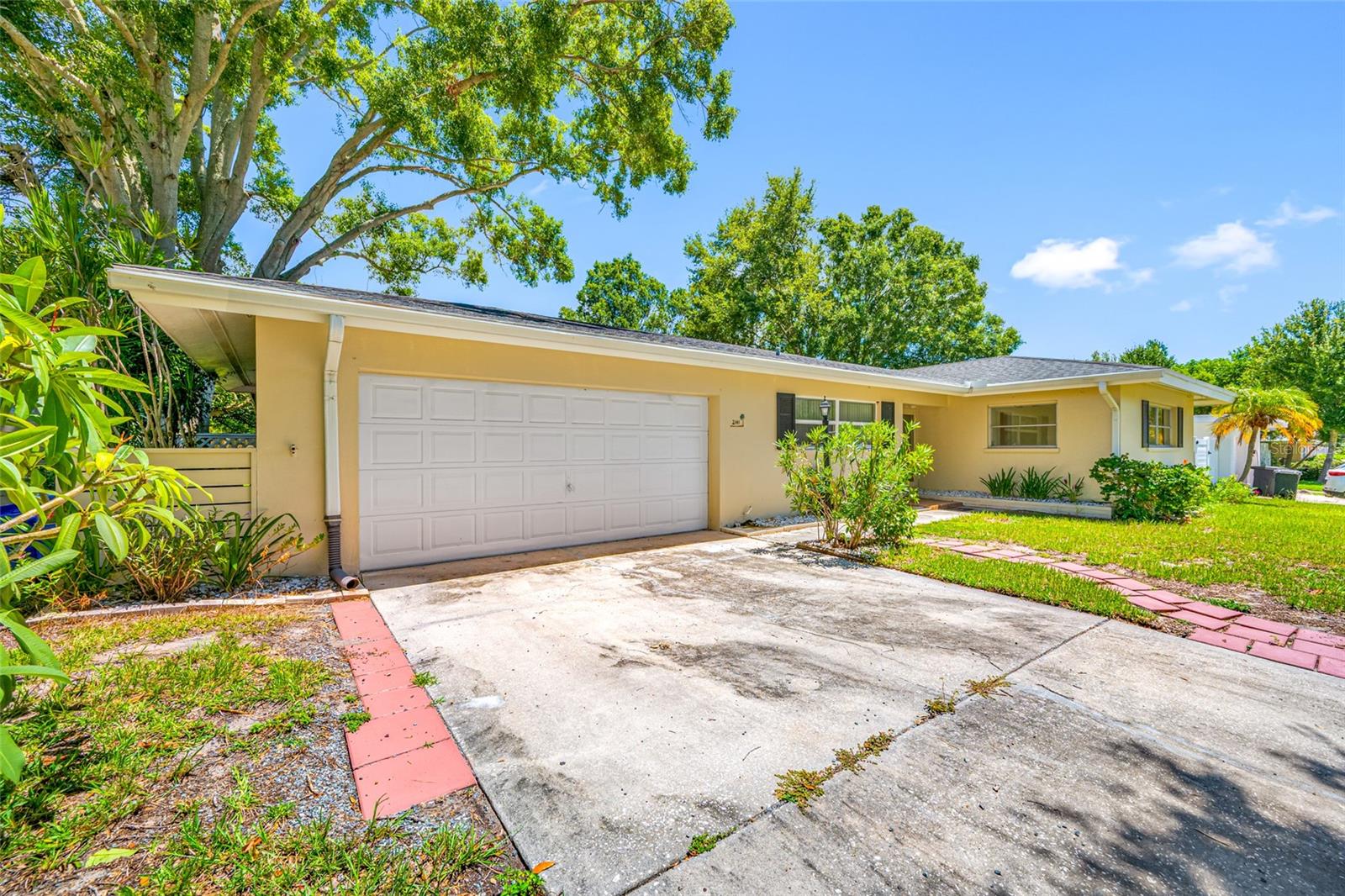 One or more photo(s) has been virtually staged. PRICE ADJUSTMENT TO $419,900! Tailored for Family Living, this Belleair Bluffs residence with history and heart is ready for your vision! Step inside this Mid-Century Modern retreat with extraordinary upside tucked into the vibrant Belleair Manor community—one of Pinellas County’s most cherished neighborhoods. With its inviting curb appeal, oversized 2-car garage, and timeless charm, this rock-solid Ranch-style home is ready to welcome your family with style, comfort, and practicality. Located on a quiet, tree-lined street, just blocks from scenic parks, Pelican Golf Club, and top-tier dining and shopping, the location encourages outdoor adventures and close-knit community connections—without sacrificing convenience. No flood insurance is required – truly a huge benefit in today’s market! Enjoy a truly peaceful setting for everyday life! Inside, discover 1252 square feet of expansive, sun-filled living featuring gleaming terrazzo flooring throughout. Immediately, your awestruck with the large open, great room layout with versatile uses! The living area off the entry is adjoined by a large dining area, all overlooking a vast wall of windows in the adjoining Florida room flooded with light—perfect for family gatherings or daily relaxation. The kitchen with limitless possibilities is poised for its next chapter! Although primarily original, it is sizable and spills onto the roomy dining area – the half wall offers the wonderful opportunity for a potential breakfast bar. Its open & extremely versatile layout keeps the chef connected to the action, whether it’s homework time or weekend hosting. There are two comfortable, generous sized, light-filled Bedrooms with privacy that provide ample closet space and abundant natural light. The primary suite features its own full bath, while the second bedroom sits beside a full guest bath—ideal for growing families or visiting relatives. Step out to a fully fenced backyard sanctuary—a haven for kids, pets, or backyard dreams. This almost .25 AC lot (85 x 105) could easily accommodate a huge, family sized inground pool! From swing sets to BBQs, there’s room here to create lasting memories. The oversized garage offers bonus space where it counts. With additional storage and including a laundry corner, it’s perfect for beach gear, bicycles, or weekend DIY projects. This Belleair Manor residence is priced to sell and has a wealth of untapped potential! This pristinely kept home is bursting with charm and ready for your distinctive touch. Located in the highly sought after Belleair Bluffs area, it is truly Location, Location, Location! Whether you are preserving its retro soul or envisioning modern updates, this is a canvas filled with the potential! Belleair Manor in Belleair Bluffs – make it your next home!