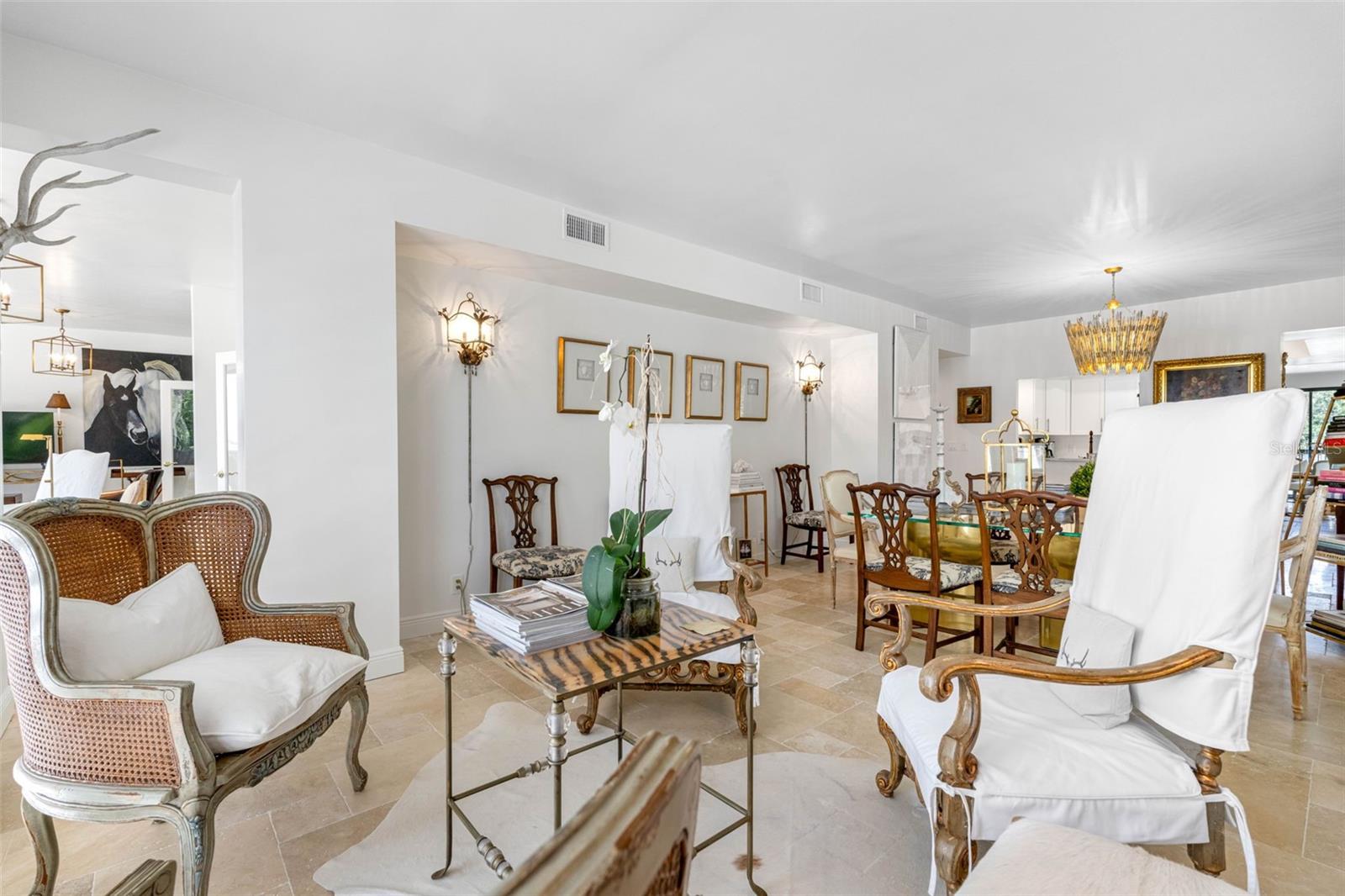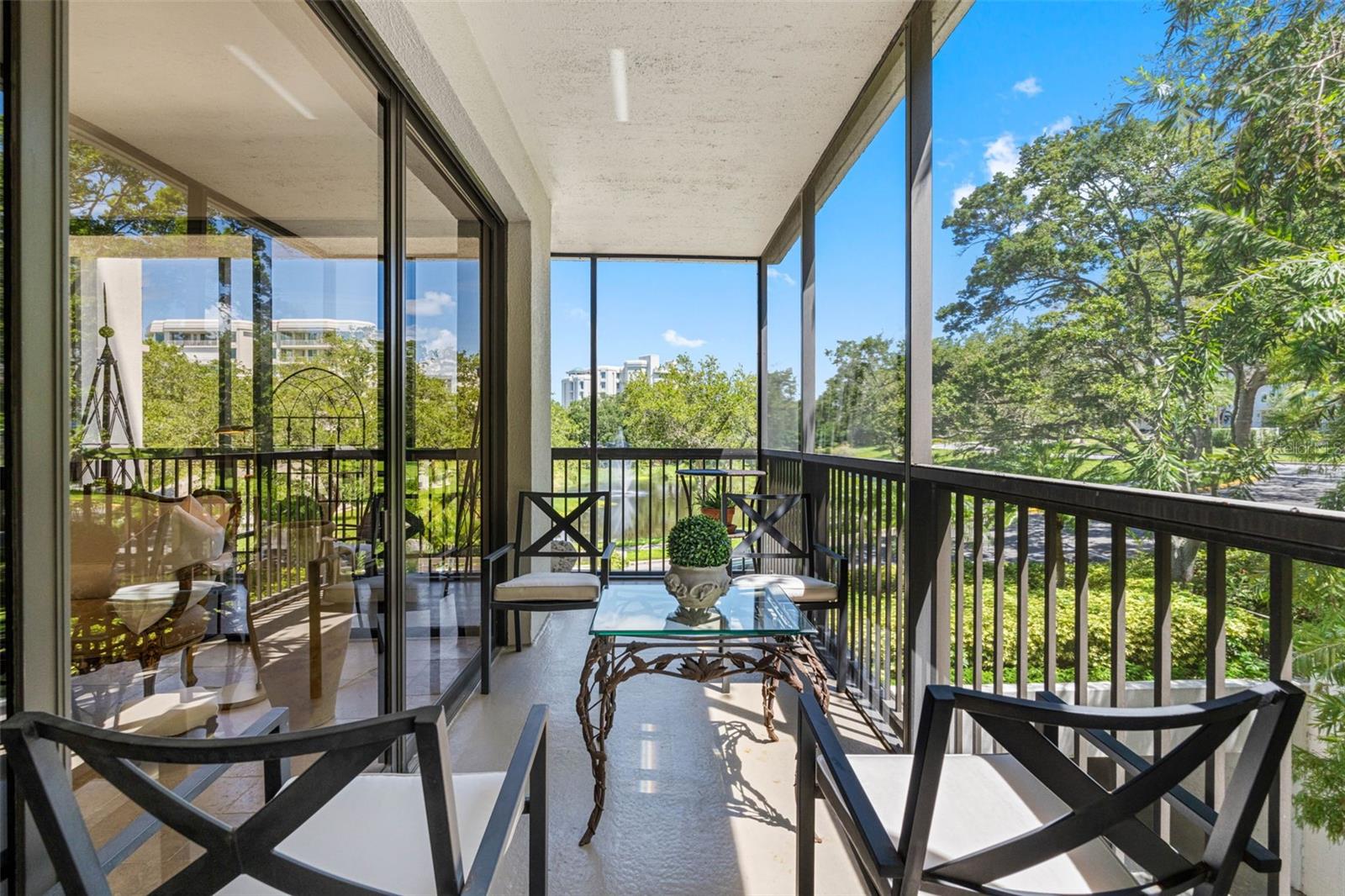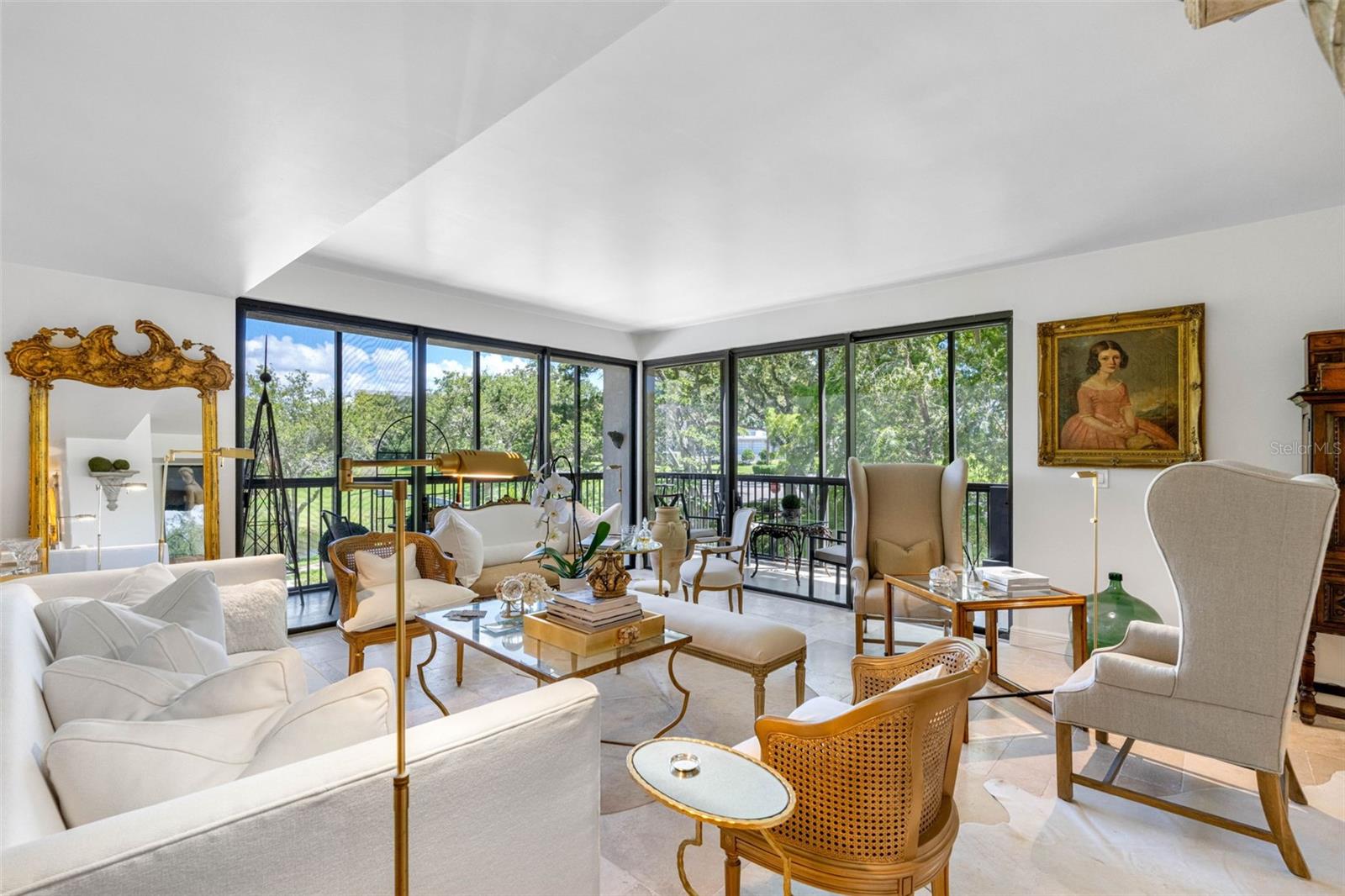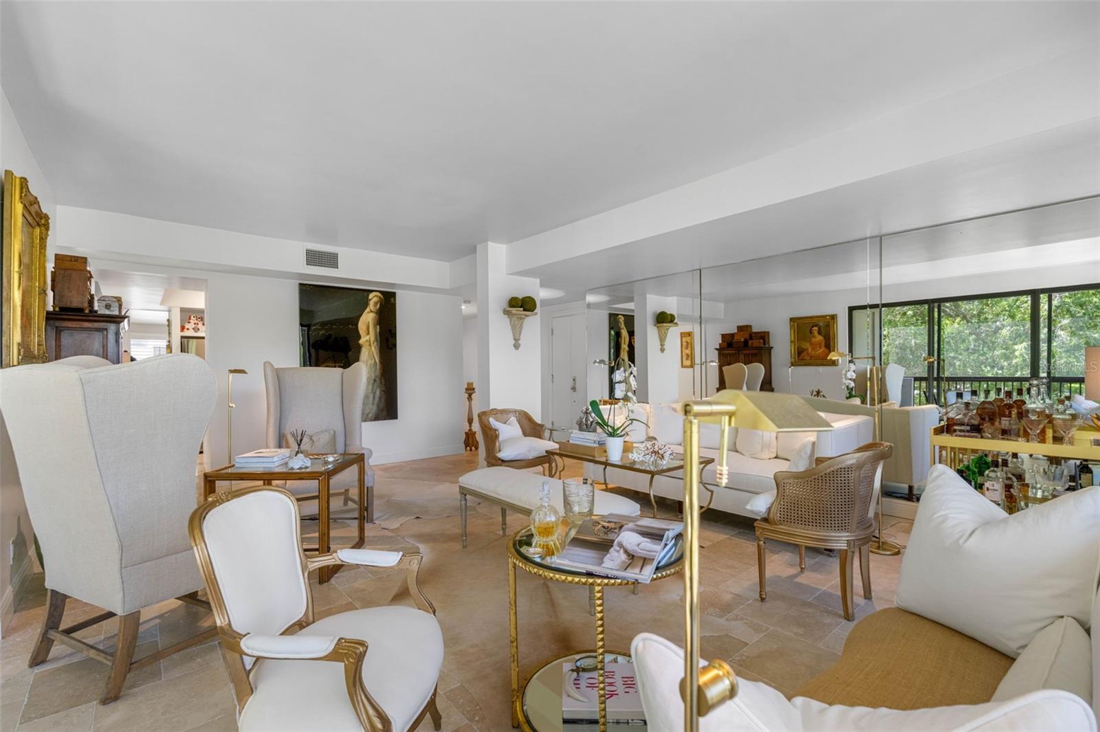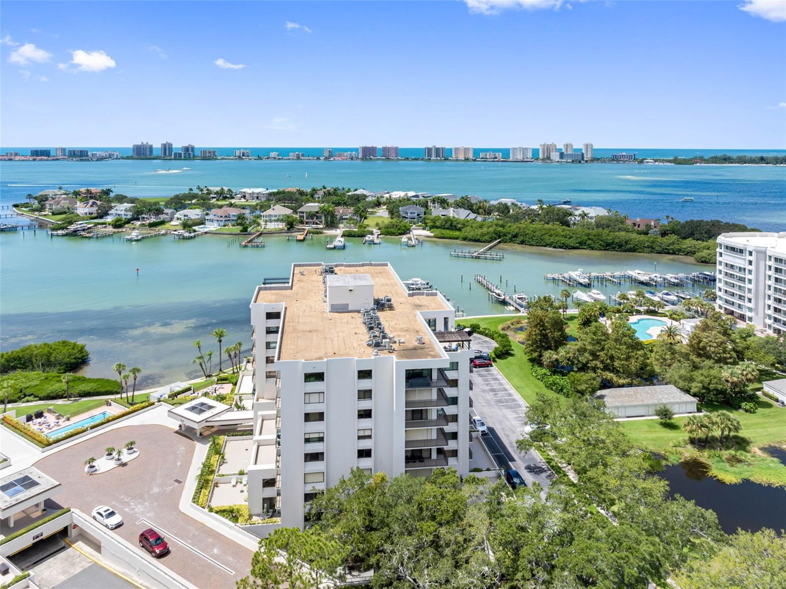 NO issues from recent storms...condo and building did great...no flood & no wind damage...High & Dry Flood Zone X500 situated on bluff on mainland with incredible water views in HIGHLY DESIRED GATED COMMUNITY IN BELLEAIR, FL. Fabulous fully renovated LARGE CORNER END UNIT in Belleview Biltmore South Garden 8 with a CUSTOM FLOORPLAN. Look no further, this spacious and elegant 2 BEDROOM, 2 BATH CONDO IS LIKE NO OTHER..offering 2,176 sq.ft. of gorgeous living space, 280 sq. ft. of beautiful outdoor balconies and 110 sq. ft. of storage closet space. UNIQUE FLOORPLAN LIVES LARGE encompassing the NE corner and WRAPS around to the SE corner. This immaculate residence is in the EXCLUSIVE GUARD GATED Belleview Biltmore community renowned for its luxurious lifestyle and tranquil surroundings. Step into the expansive floorplan with a flow for entertaining, offering an impressive foyer, HIGH SMOOTH CEILINGS, smooth-finish walls and French-style travertine flooring throughout. Every detail has been METICULOUSLY UPDATED from the interior doors and hardware to the high-end plumbing fixtures. THE FAMILY ROOM IS A SHOWSTOPPER offering INCREDIBLE INTRACOASTAL WATERWAY & BELLEAIR BRIDGE VIEWS with access to a private covered balcony. The Living Room is extra large with a wrap-around balcony offering garden, pond and fountain views. Centrally located kitchen is a chef's delight with modern stainless appliances, wood cabinetry, marble countertops and a bar opening to the dining room. Bonus room is used as a conversation area and opens to the dining room and family room. Large windows and sliding glass doors allow abundant sunlight to fill the home creating a warm and inviting atmosphere. The primary suite is a retreat, complete with dual closets and a luxurious en-suite bath featuring an extended vanity, quartz countertops and a walk-in porcelain shower with seamless glass doors. The second bedroom is generously sized with abundant closet space and is ideal for guests or a home office. Second bath features a single quartz vanity and porcelain walk-in shower with seamless glass doors. Convenient and discreet laundry closet with full-size washer and dryer off the main hall. BRAND NEW 4 Ton HVAC. You will certainly appreciate the 3 STORAGE CLOSETS, two are off your balcony and one is under the building. One assigned under-building parking space and ample guest parking. South Garden 8 is well maintained with a secure lobby entrance, HEATED WATERFRONT POOL with paved deck and patio, clubhouse, poolside restrooms, barbecue grills AND BEST OF ALL a waterfront pergola with outstanding Intracoastal and Belleair Bridge views. Located in the 24/7 GUARD GATED community of the Belleair Country Club and historic Belleview Inn. New owner qualifies for a discount on the initiation fee at the Belleair Country Club and also qualifies for immediate golf membership SKIPPING THE 6 YEAR WAIT LIST, WOW WHAT A PERK! Private marina with boat slips for rent or purchase are subject to availability. In the quaint Town of Belleair with its own police department, town hall and recreation center. Minutes to famous gulf beaches, shopping, dining and excellent medical facilities. Close to downtown Clearwater, Dunedin and St. Pete. TPA is 30 minutes away and PIE is just 20 minutes. Chandeliers in dining, kitchen, entry and family room do not convey. Sconces do not convey. Floor plan photo slide #40. Must-see Vimeo video tour: https://vimeo.com/1003184665.