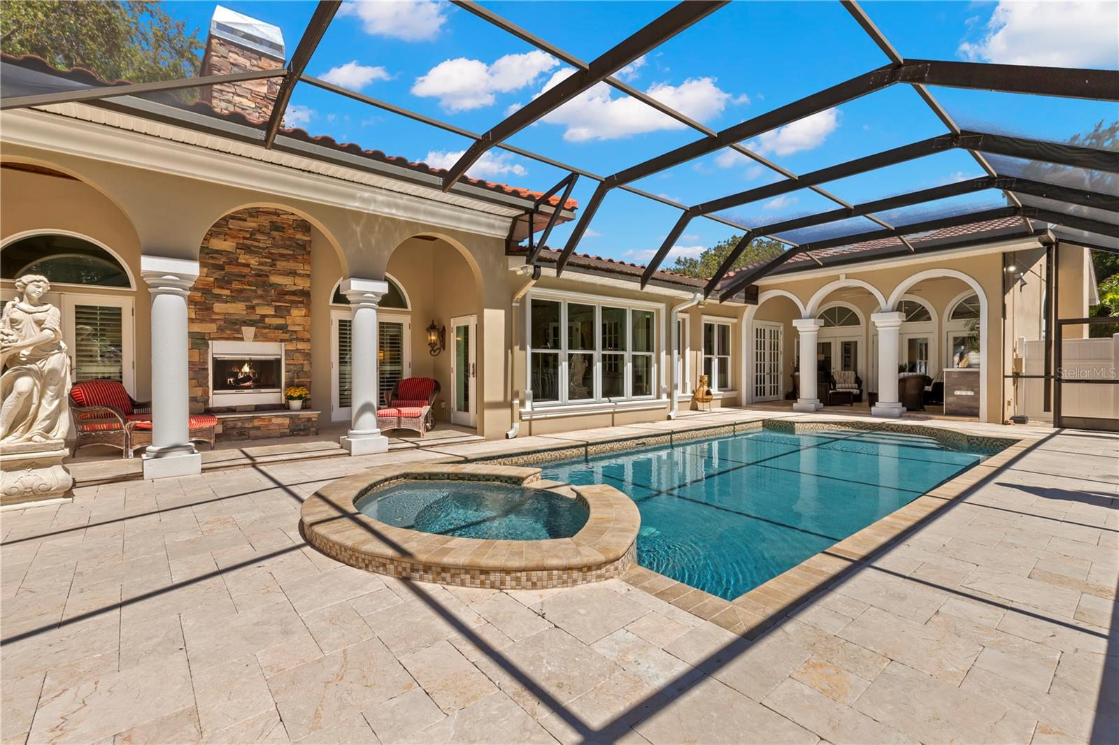The Epitome of Florida Elegance & Exclusivity Discover a rare sanctuary of luxury, privacy, and sophistication in the prestigious enclave of Belleair Florida. This extraordinary estate is more than a home—it’s a lifestyle, offering the perfect balance of tranquility, convenience, and indulgence. Unparalleled Location Nestled among mature trees and a serene tributary, this property offers an oasis of seclusion while remaining just minutes from: World-Class Beaches – Bask in the beauty Clearwater's renowned coastline. Golfer’s Paradise – Positioned at the edge of Belleair & Pelican Country Clubs. Business & Travel Convenience – A short drive to Tampa International Airport. Outdoor Enthusiast’s Dream – Access to the 75-mile Pinellas Trail for walking, running, and cycling. Fine Dining & Boutique Shopping – Savor the best of local restaurants and retail. A Masterpiece of Design & Craftsmanship This sprawling single-story estate radiates rustic elegance, with every detail curated for both comfort and grandeur. High ceilings, lavish travertine floors, and custom finishes create an ambiance of timeless sophistication. An Entertainer’s Paradise – Seamless indoor-outdoor living with gourmet "foodie" kitchens, top-of-the-line appliances, and exotic granite countertops. Three Stunning Fireplaces – Adding warmth and character throughout the home. Expansive Covered Porches – Designed for year-round relaxation and entertaining. Plantation Shutters & Architectural Charm – A refined touch of Southern grace. Beyond the Ordinary Dedicated Home Office – A private and spacious workspace. Separate Guest Cottage – A retreat for visitors, ensuring privacy and comfort. Unmatched Storage & Recreation – The enormous, detached garage is a haven for boating and angling enthusiasts, complete with an indoor gym and extensive storage. Private Putting Green – Perfect your short game from the comfort of your own backyard. This is more than just a home—it’s a statement. An extraordinary residence designed for those who appreciate luxury, exclusivity, and the very best of Florida living. Schedule your private tour today and experience the essence of Belleair’s most coveted retreat. Buyer to verify all measurements, No flood zone