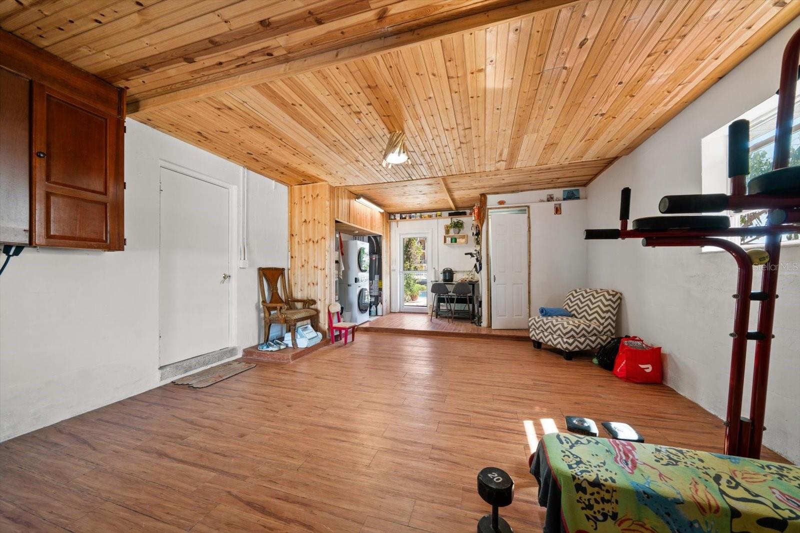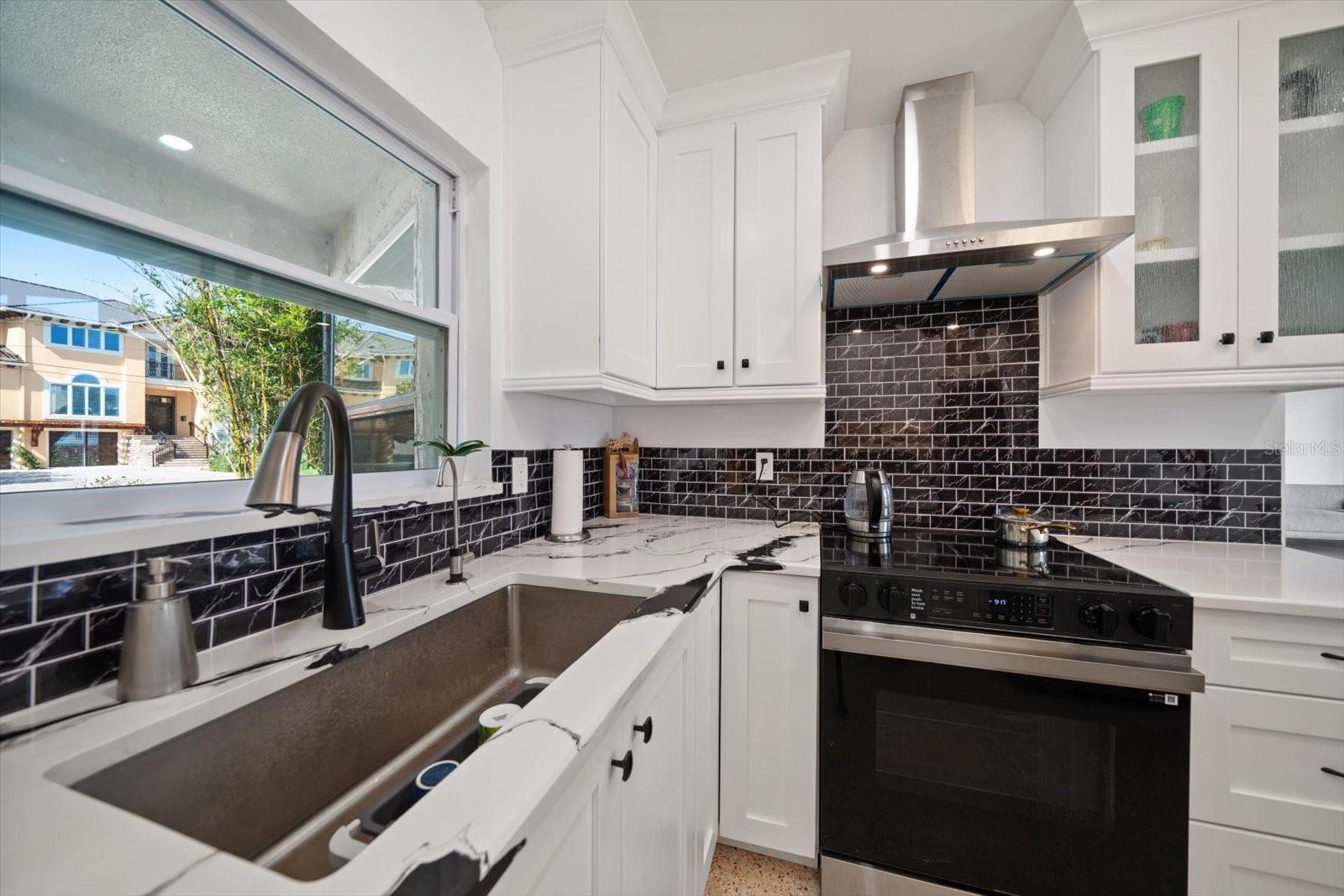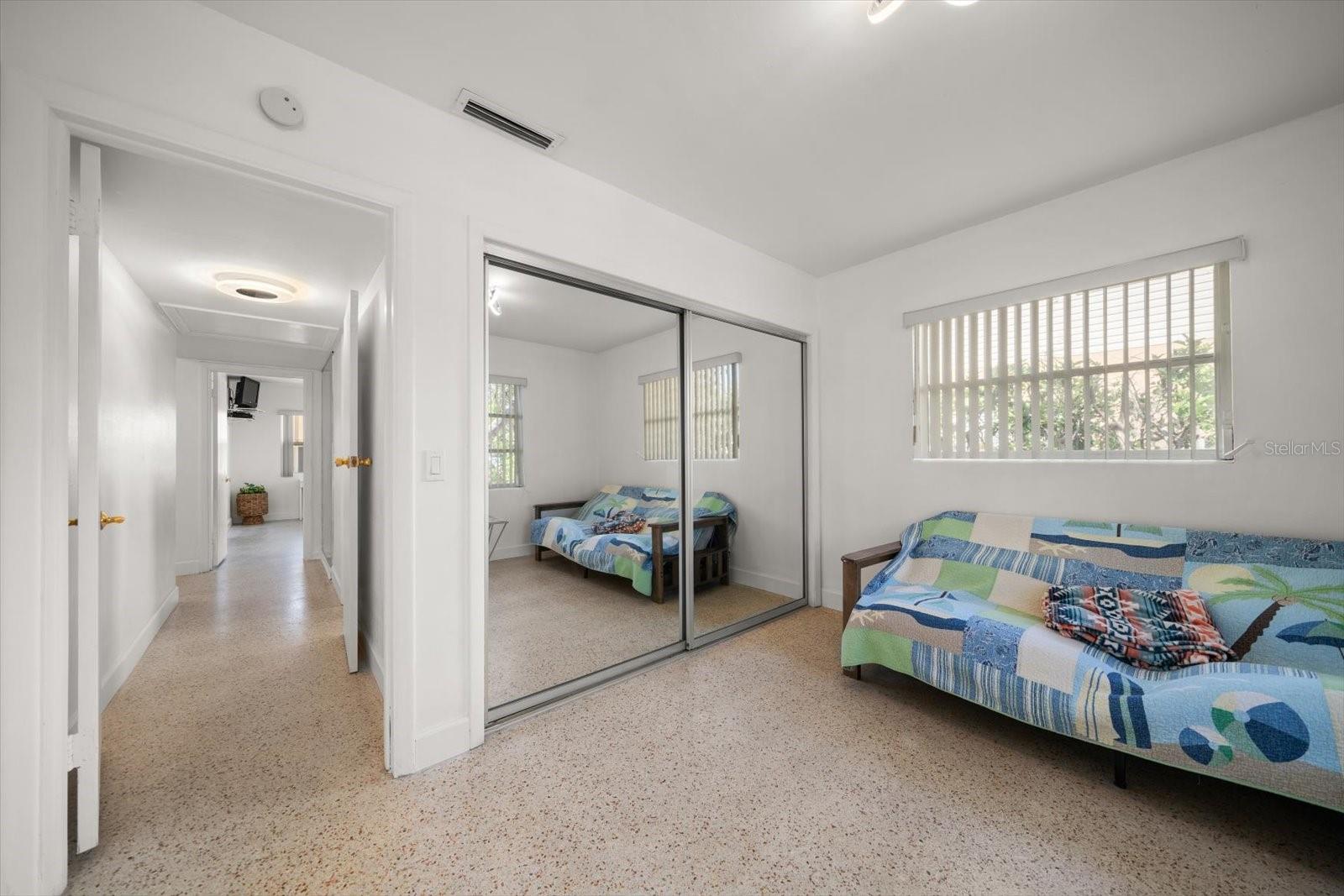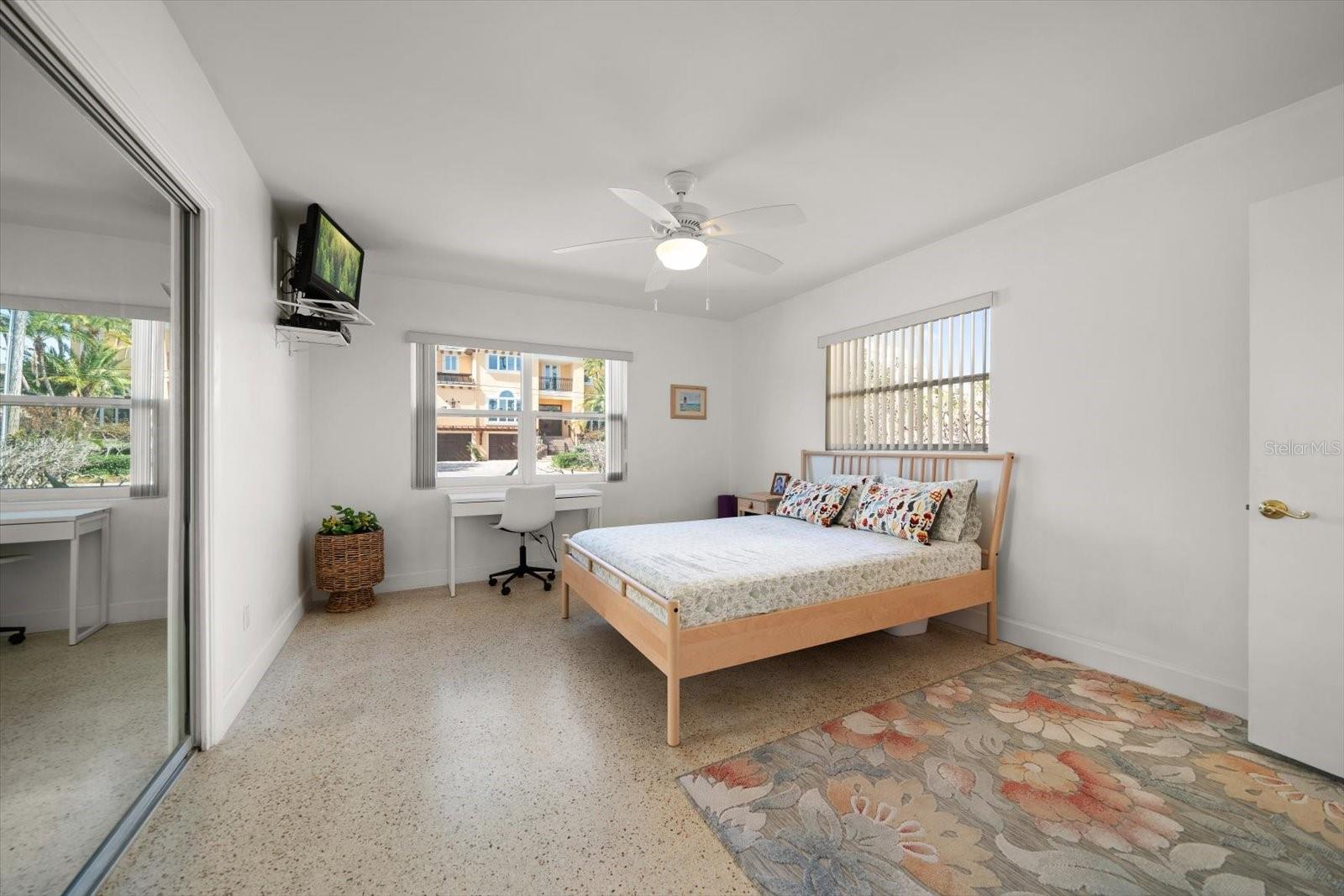 Welcome to this move-in ready Belleair waterfront home, where there is almost 3000 square feet of coastal contemporary style under roof. A brand-new pavered circular driveway sets the tone for the inviting curb appeal, while inside, the wide-open floor plan blends retro character with fresh, modern updates. Original terrazzo floors and wood-beamed vaulted ceilings create a warm, welcoming vibe, especially in the spacious family room where walls of floor-to-ceiling windows frame serene views of the sparkling pool and tranquil water beyond. The brand-new white kitchen is both stylish and functional, featuring quartz countertops, new appliances, a breakfast bar with chic pendant lighting, and seamless flow into the adjacent dining room with new sliders leading out to the pool and outdoor entertaining spaces. The primary bedroom is bathed in natural light and offers a functional, updated ensuite. Two additional bedrooms share a beautifully remodeled hall bath with a double sink vanity and tub/shower combo. A private flex room with beadboard ceilings and its own ensuite—tucked behind the garage—is ideal for a home office, guest suite, nanny quarters, or creative studio. For boating enthusiasts, this is a dream come true with easy access to the Intracoastal and Gulf. Enjoy the charm of Belleair’s small-town atmosphere, all while being just minutes from fine dining, boutique shopping, and the area’s renowned beaches.