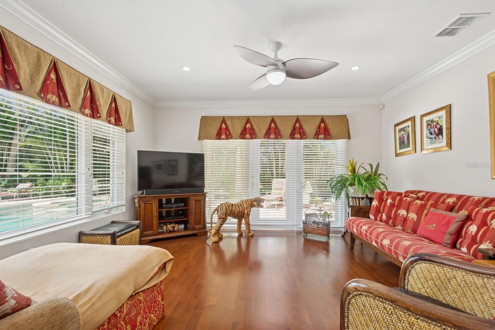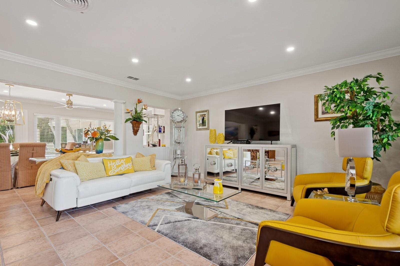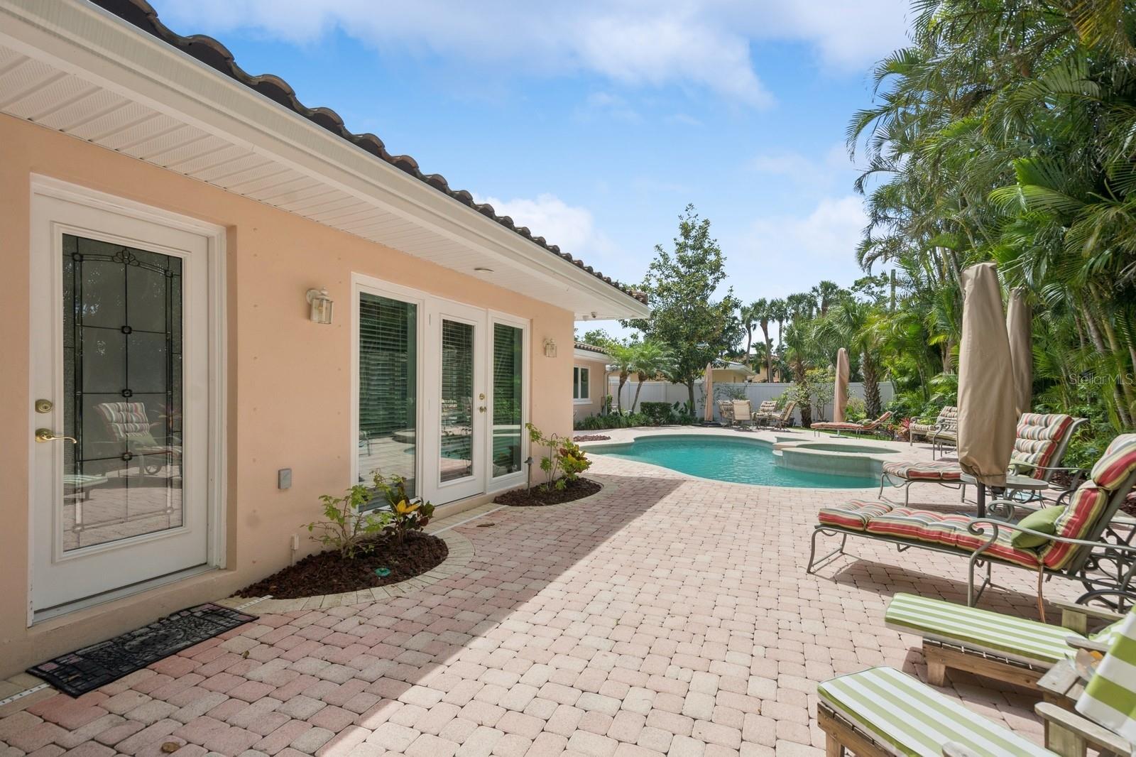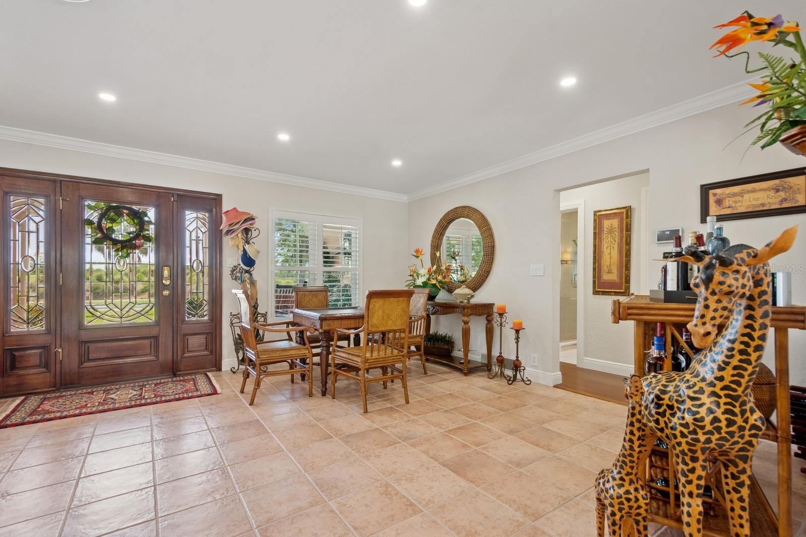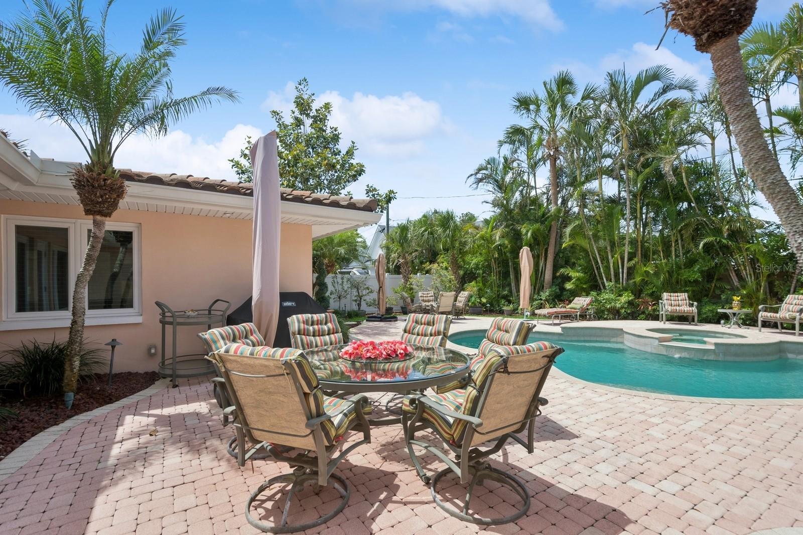 Stunning Golf Course Pool Home with Luxurious Upgrades Throughout! This beautifully updated home offers exceptional indoor-outdoor living and fronts the prestigious Belleair Country Club Golf Course. With nearly every inch remodeled, this residence blends timeless design with modern convenience. Featuring three spacious bedrooms plus a possible fourth bedroom or flexible bonus room, the layout is both functional and elegant. Step inside through magnificent leaded glass double doors with dual side panels, and you’ll immediately notice the attention to detail: tiled floors, plantation shutters, custom fans, and wide-open spaces filled with natural light. The gourmet kitchen was just remodeled and boasts brand new stainless steel appliances, quartz countertops, a built-in beverage refrigerator at the breakfast bar, solid-wood, soft-close shaker-style cabinetry, and a natural gas stove. The bathrooms were also completely renovated recently with modern, high-end finishes. A brand new washer and dryer set is also included in the sale. The home opens seamlessly to a tropical outdoor paradise: a heated Curtis pool with spillover spa, surrounded by paver decking and lush landscaping. Enjoy the expansive Mexican-tiled front covered porch with elegant columns, cathedral ceiling, and outdoor ceiling fan—perfect for relaxing or entertaining. This home is like a custom-designed showpiece, seamlessly blending luxury and functionality with features that ensure quality, efficiency, and peace of mind—from the hardwood flooring, the updated interior and exterior doors, to the hurricane-impact glass windows, and the long-lasting tile roof. A 25Kw whole-house generator provides reliable backup power, while a new HVAC system delivers year-round comfort. Energy efficiency was further enhanced with blown-in attic insulation and a reclaimed water irrigation system for the landscaped grounds. The home also features a complete natural gas installation from the street, replacing the previous propane setup. Additionally, a garage storage system has been added, perfect for storing tools, toys, and other belongings. As an added bonus, the home is being offered with optional furnishings—including all bedroom sets, the dining room and family room furniture, and the wicker pieces in the living room—making this an exceptional turnkey opportunity. Don’t miss this chance to own a move-in ready, meticulously maintained home in one of Belleair’s most desirable golf course locations!