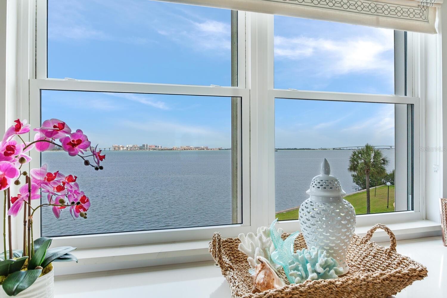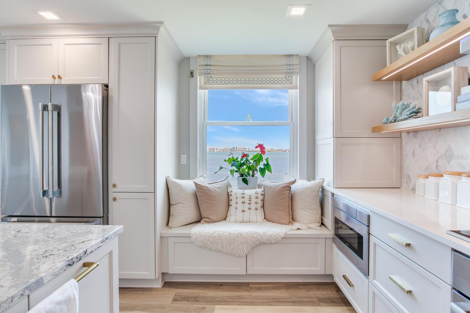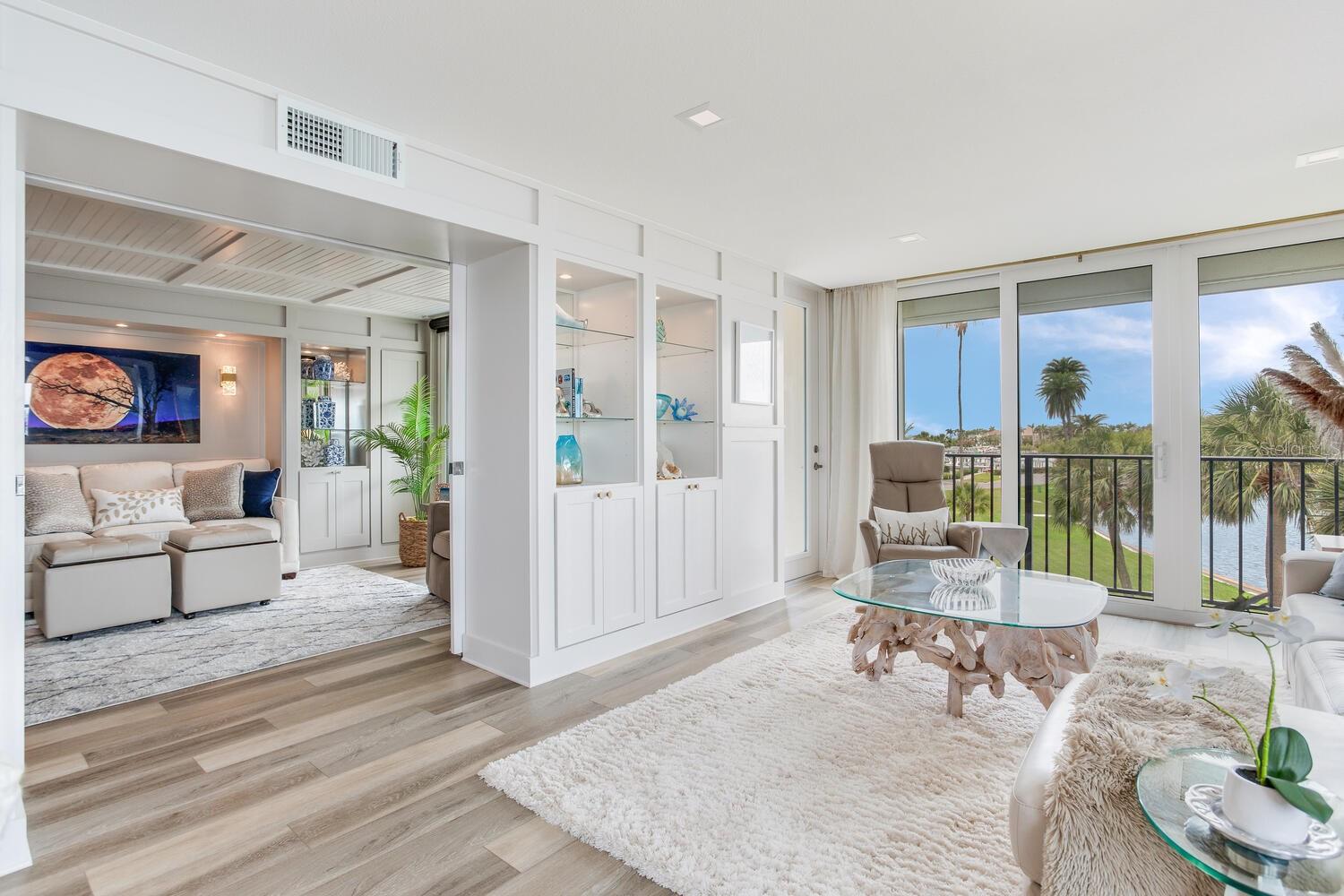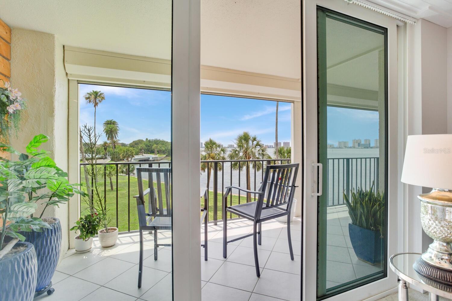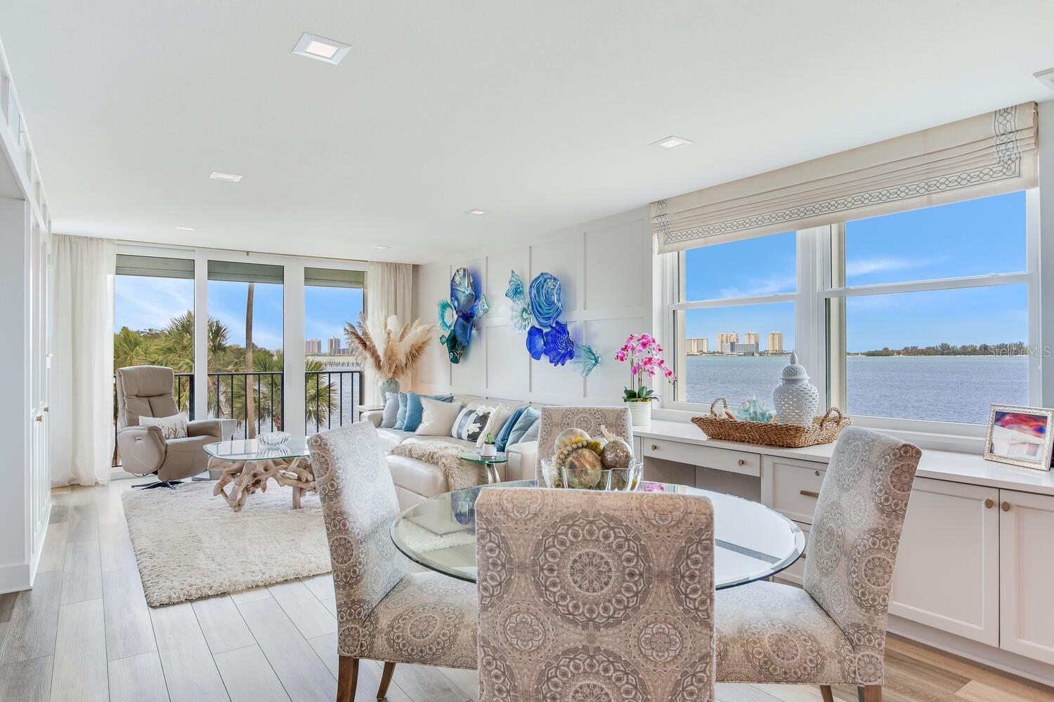 Live the coastal dream in this beautifully updated residence in the exclusive guard-gated Belleair Country Club community. Positioned to capture unbeatable sunsets, this southwest-facing corner condominium offers panoramic views of the Intracoastal Waterway, Sand Key Bridge and Memorial Causeway. Enter this fully remodeled two-bedroom, two-bath southwest corner unit, spanning 1,395 square feet, and experience the elegance of a thoughtfully upgraded interior. This light-filled home features smooth ceilings, new windows and doors (2020), and insulated exterior walls for enhanced comfort and efficiency. Custom finishes include wainscoting, cabinetry and storage throughout, window treatments, and interior glass-paneled doors that elevate the overall aesthetic. The chef’s kitchen is a standout with a quartz waterfall edge island and eat-in space, custom cabinetry with pullout drawers and extensive organization, and pullout pantry. Luxury appliances include a Bosch refrigerator, Wolf induction cooktop, Zephyr hood, Bosch oven and paneled dishwasher, under-counter microwave and a Pentair water filter. Take in the stunning direct west views from your built-in desk nook and living room adorned with wainscoting. The clever second bedroom, designed as a flexible living area with custom built-ins, is privately set behind pocket doors and can easily serve as a den, guest room or home office. A highlight of this unit is the oversized 26-foot waterfront balcony with southwest views of the Intracoastal. Hurricane shutters line the perimeter, providing peace of mind and allow you to safely leave your balcony furniture outdoors year-round. Showcasing floor-to-ceiling marble, the jewel box guest bath features a walk-in shower. The primary suite is a tranquil retreat, featuring a wainscot ceiling, custom closet cabinetry and floor-to-ceiling mirrored wardrobe doors. The en-suite bath boasts custom cabinetry, walk-in shower with built-in bench and a quartz double vanity. Discreet and conveniently located laundry closet off the hall has a stackable washer and dryer. Additional updates and features include air conditioner (2020), water heater (2025), water softener and new electrical panel. Private personal storage closet on the same floor and one premium assigned covered carport parking. This unit combines sophisticated style with unmatched views and updates, all in a secure, amenity-rich community. Building and grounds are meticulous and offer secure access to the recently updated lobby equipped with video monitoring. Newly renovated clubhouse and heated pool are directly on the Intracoastal Waterway with a sunset every night! In the guard gated community of Belleair Country Club and historic Belleview Inn. New owner qualifies for immediate golf membership, skipping the six-year waiting list, and a discount on initiation fee at the Belleair Country Club. Private marina with boat slips for rent or purchase are subject to availability. In the Town of Belleair with its own police department, town hall and recreation center with activities for all. Minutes to famous Gulf beaches, shopping, dining and excellent medical facilities. Close to downtown Clearwater, Dunedin and St. Pete. TPA airport is 30 minutes away and PIE is just 20 minutes. Floorplan Slide #41 VIMEO: https://vimeo.com/1085071812
