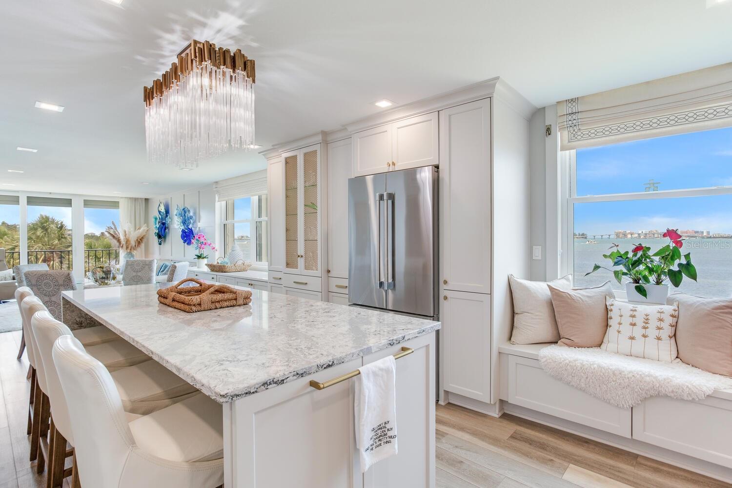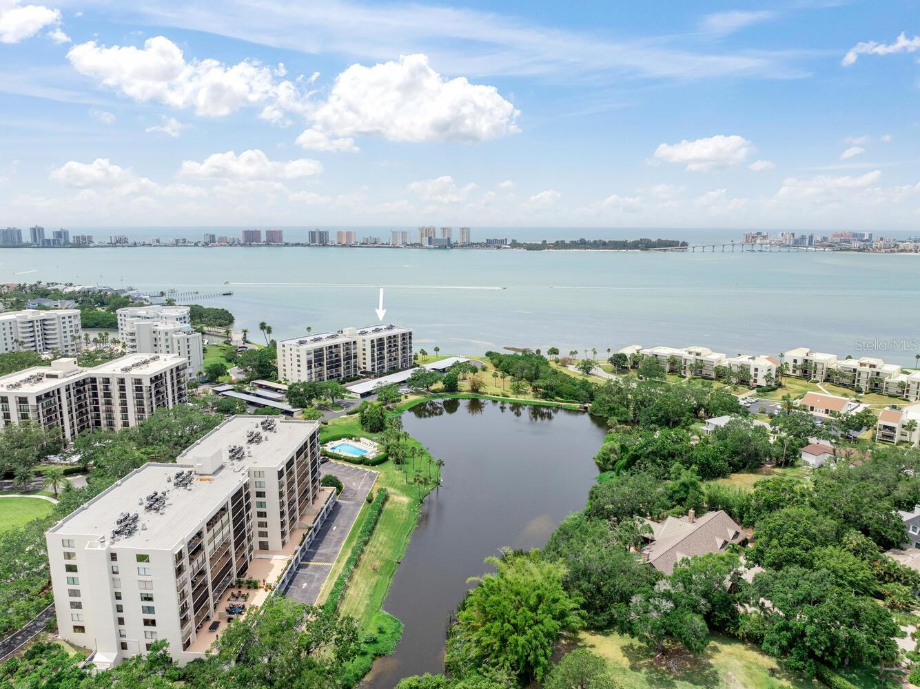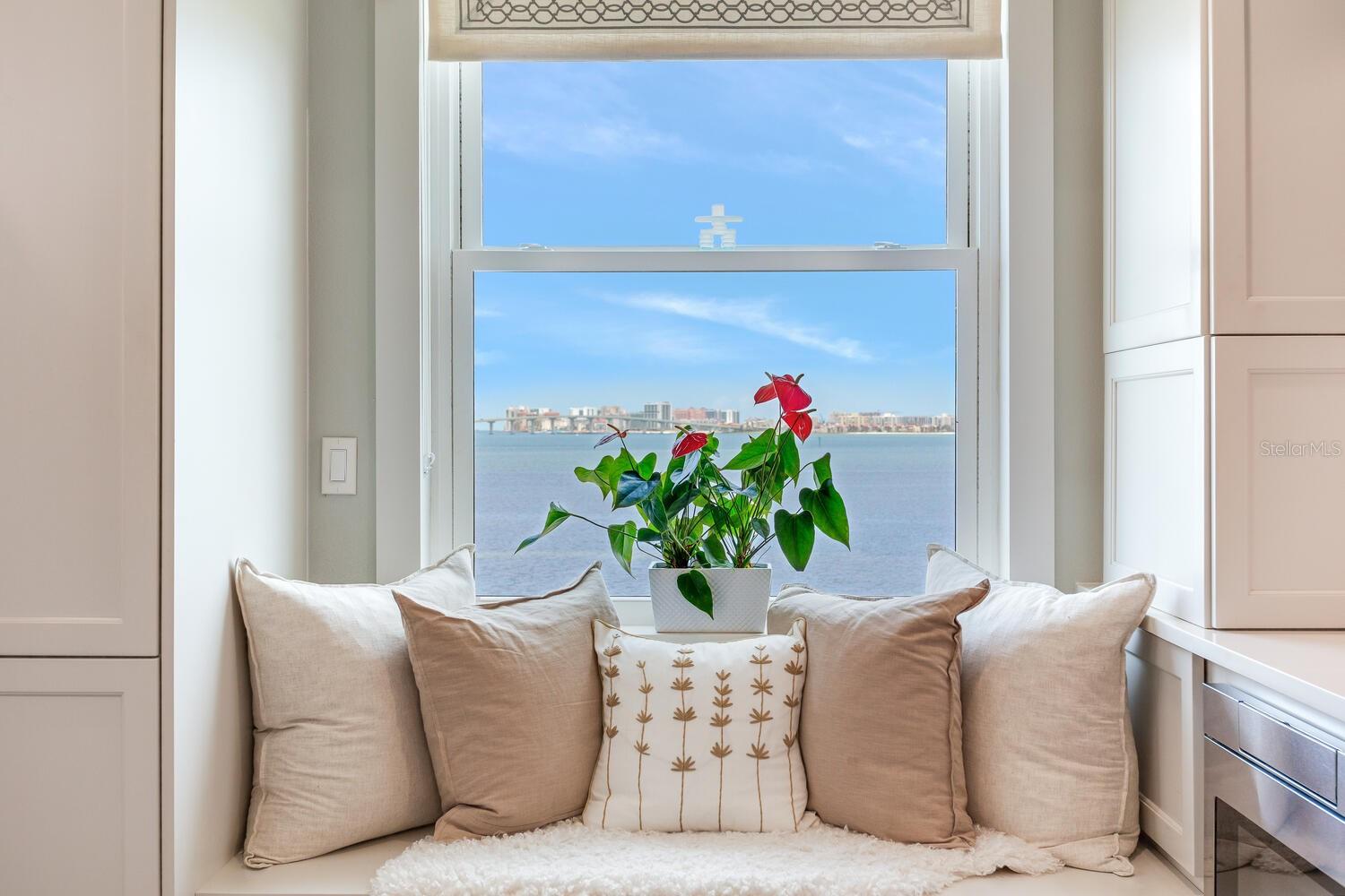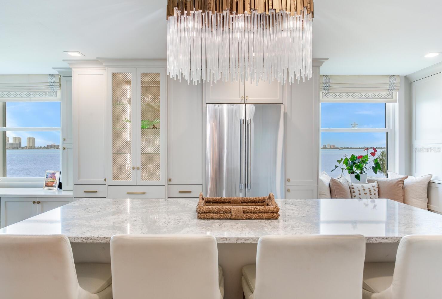 Live the coastal dream in this beautifully updated residence in the exclusive guard-gated Belleair Country Club community. Positioned to capture unbeatable sunsets, this southwest-facing corner condominium offers panoramic views of the Intracoastal Waterway, Sand Key Bridge and Memorial Causeway. Enter this fully remodeled two-bedroom, two-bath southwest corner unit, spanning 1,395 square feet, and experience the elegance of a thoughtfully upgraded interior. This light-filled home features smooth ceilings, new windows and doors (2020), and insulated exterior walls for enhanced comfort and efficiency. Custom finishes include wainscoting, cabinetry and storage throughout, window treatments, and interior glass-paneled doors that elevate the overall aesthetic. The chef’s kitchen is a standout with a quartz waterfall edge island and eat-in space, custom cabinetry with pullout drawers and extensive organization, and pullout pantry. Luxury appliances include a Bosch refrigerator, Wolf induction cooktop, Zephyr hood, Bosch oven and paneled dishwasher, under-counter microwave and a Pentair water filter. Take in the stunning direct west views from your built-in desk nook and living room adorned with wainscoting. The clever second bedroom, designed as a flexible living area with custom built-ins, is privately set behind pocket doors and can easily serve as a den, guest room or home office. A highlight of this unit is the oversized 26-foot waterfront balcony with southwest views of the Intracoastal. Hurricane shutters line the perimeter, providing peace of mind and allow you to safely leave your balcony furniture outdoors year-round. Showcasing floor-to-ceiling marble, the jewel box guest bath features a walk-in shower. The primary suite is a tranquil retreat, featuring a wainscot ceiling, custom closet cabinetry and floor-to-ceiling mirrored wardrobe doors. The en-suite bath boasts custom cabinetry, walk-in shower with built-in bench and a quartz double vanity. Discreet and conveniently located laundry closet off the hall has a stackable washer and dryer. Additional updates and features include air conditioner (2020), water heater (2025), water softener and new electrical panel. Private personal storage closet on the same floor and one premium assigned covered carport parking. This unit combines sophisticated style with unmatched views and updates, all in a secure, amenity-rich community. Building and grounds are meticulous and offer secure access to the recently updated lobby equipped with video monitoring. Newly renovated clubhouse and heated pool are directly on the Intracoastal Waterway with a sunset every night! In the guard gated community of Belleair Country Club and historic Belleview Inn. New owner qualifies for immediate golf membership, skipping the six-year waiting list, and a discount on initiation fee at the Belleair Country Club. Private marina with boat slips for rent or purchase are subject to availability. In the Town of Belleair with its own police department, town hall and recreation center with activities for all. Minutes to famous Gulf beaches, shopping, dining and excellent medical facilities. Close to downtown Clearwater, Dunedin and St. Pete. TPA airport is 30 minutes away and PIE is just 20 minutes. Floorplan Slide #41 VIMEO: https://vimeo.com/1085071812