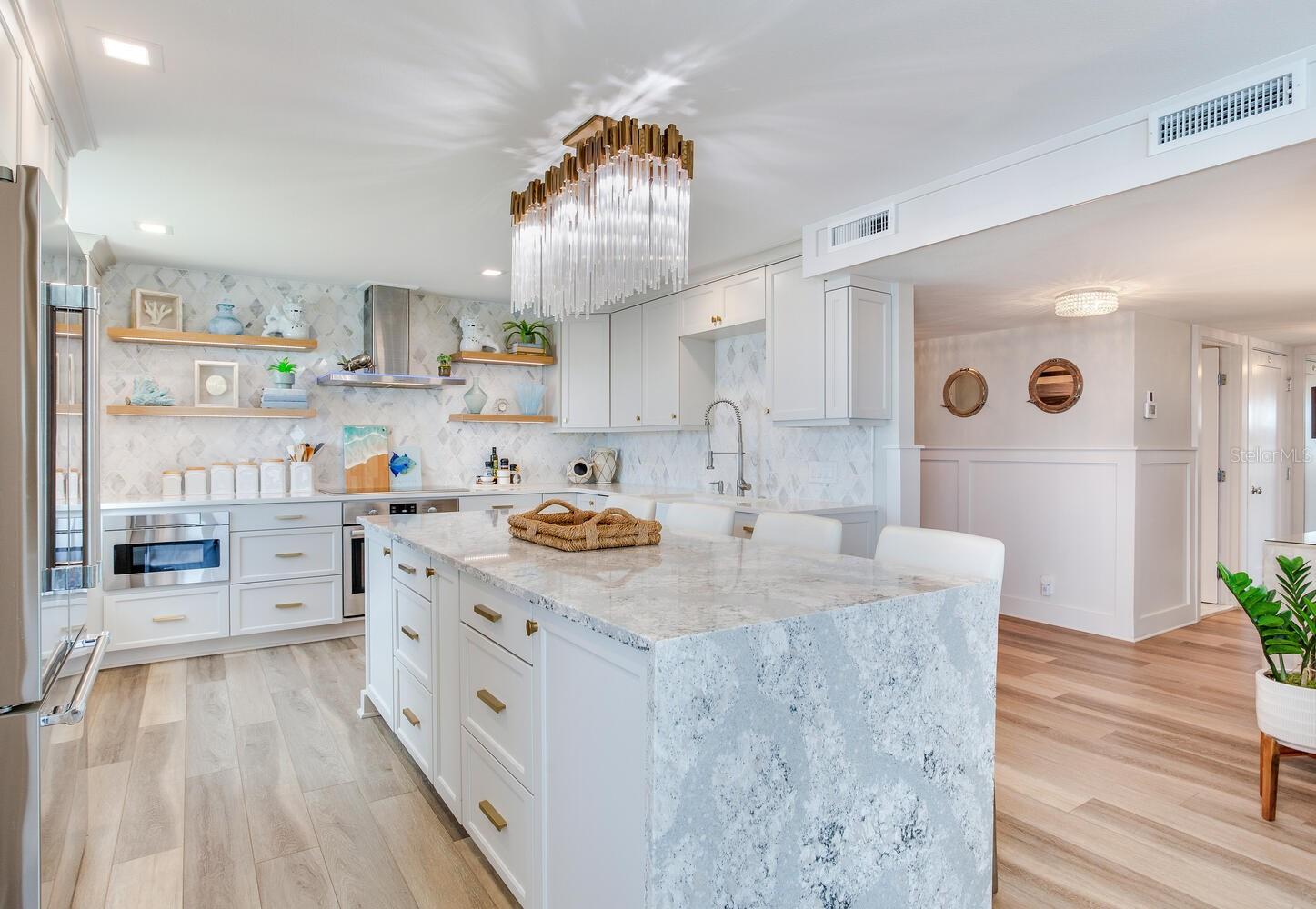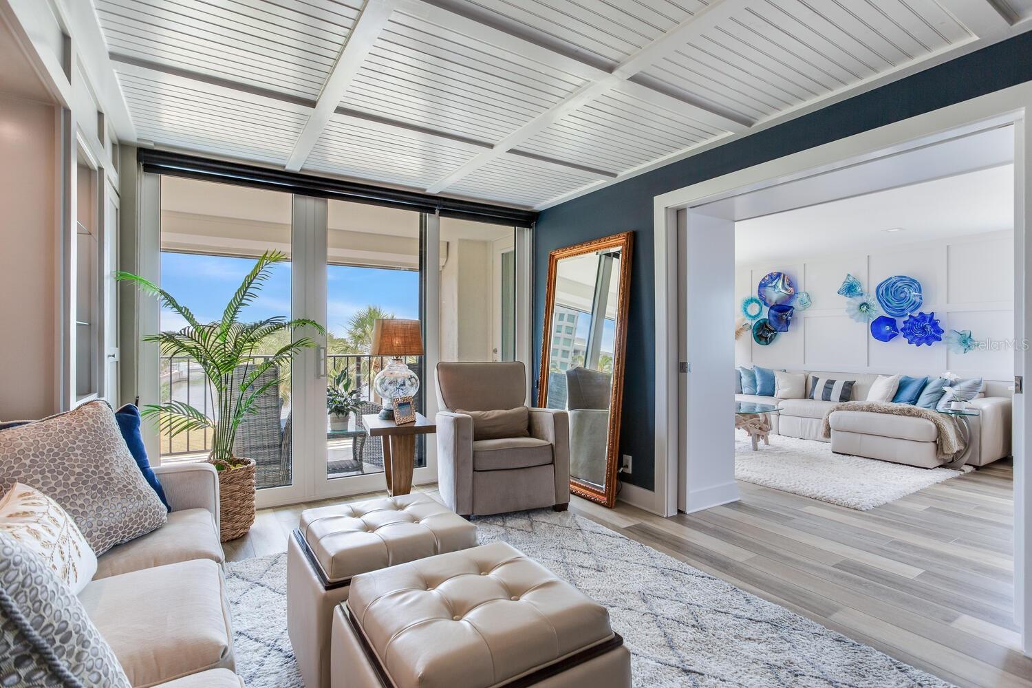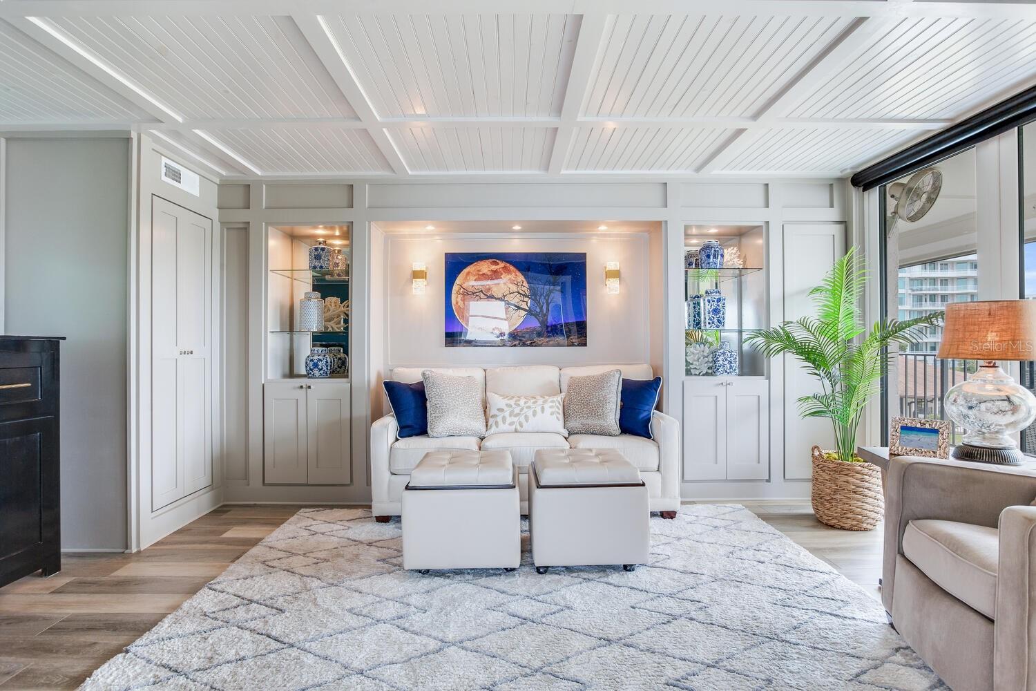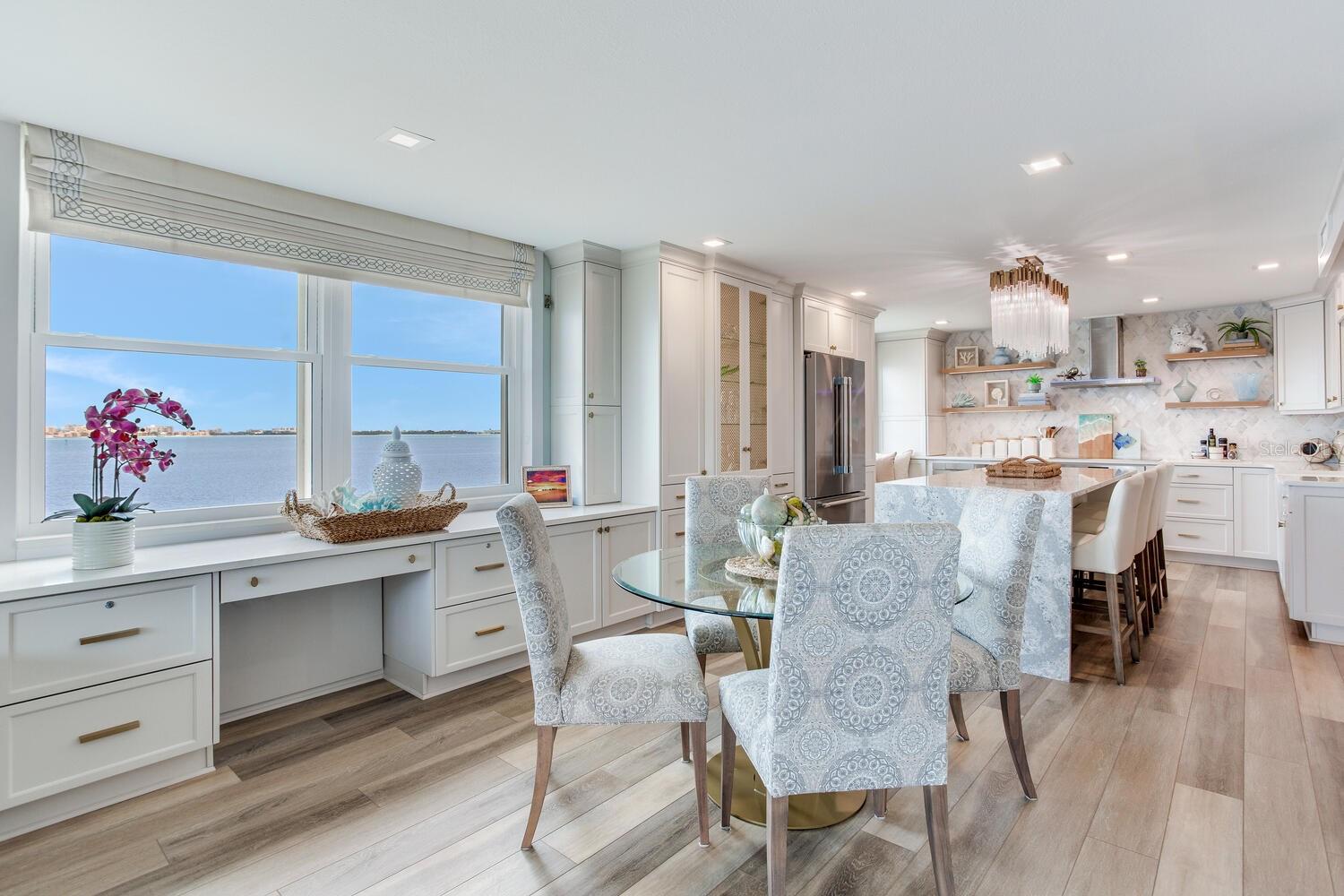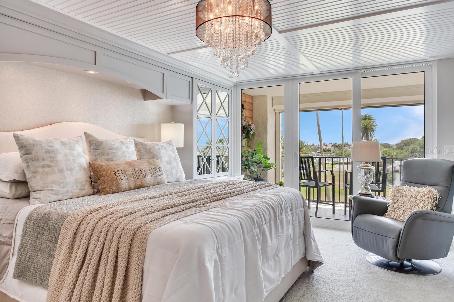 Live the coastal dream in this beautifully updated residence in the exclusive guard-gated Belleair Country Club community. Positioned to capture unbeatable sunsets, this southwest-facing corner condominium offers panoramic views of the Intracoastal Waterway, Sand Key Bridge and Memorial Causeway. Enter this fully remodeled two-bedroom, two-bath southwest corner unit, spanning 1,395 square feet, and experience the elegance of a thoughtfully upgraded interior. This light-filled home features smooth ceilings, new windows and doors (2020), and insulated exterior walls for enhanced comfort and efficiency. Custom finishes include wainscoting, cabinetry and storage throughout, window treatments, and interior glass-paneled doors that elevate the overall aesthetic. The chef’s kitchen is a standout with a quartz waterfall edge island and eat-in space, custom cabinetry with pullout drawers and extensive organization, and pullout pantry. Luxury appliances include a Bosch refrigerator, Wolf induction cooktop, Zephyr hood, Bosch oven and paneled dishwasher, under-counter microwave and a Pentair water filter. Take in the stunning direct west views from your built-in desk nook and living room adorned with wainscoting. The clever second bedroom, designed as a flexible living area with custom built-ins, is privately set behind pocket doors and can easily serve as a den, guest room or home office. A highlight of this unit is the oversized 26-foot waterfront balcony with southwest views of the Intracoastal. Hurricane shutters line the perimeter, providing peace of mind and allow you to safely leave your balcony furniture outdoors year-round. Showcasing floor-to-ceiling marble, the jewel box guest bath features a walk-in shower. The primary suite is a tranquil retreat, featuring a wainscot ceiling, custom closet cabinetry and floor-to-ceiling mirrored wardrobe doors. The en-suite bath boasts custom cabinetry, walk-in shower with built-in bench and a quartz double vanity. Discreet and conveniently located laundry closet off the hall has a stackable washer and dryer. Additional updates and features include air conditioner (2020), water heater (2025), water softener and new electrical panel. Private personal storage closet on the same floor and one premium assigned covered carport parking. This unit combines sophisticated style with unmatched views and updates, all in a secure, amenity-rich community. Building and grounds are meticulous and offer secure access to the recently updated lobby equipped with video monitoring. Newly renovated clubhouse and heated pool are directly on the Intracoastal Waterway with a sunset every night! In the guard gated community of Belleair Country Club and historic Belleview Inn. New owner qualifies for immediate golf membership, skipping the six-year waiting list, and a discount on initiation fee at the Belleair Country Club. Private marina with boat slips for rent or purchase are subject to availability. In the Town of Belleair with its own police department, town hall and recreation center with activities for all. Minutes to famous Gulf beaches, shopping, dining and excellent medical facilities. Close to downtown Clearwater, Dunedin and St. Pete. TPA airport is 30 minutes away and PIE is just 20 minutes. Floorplan Slide #41 VIMEO: https://vimeo.com/1085071812