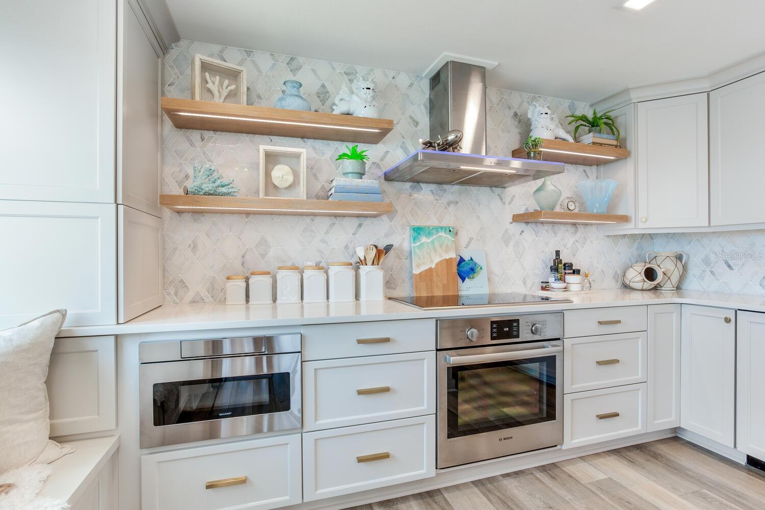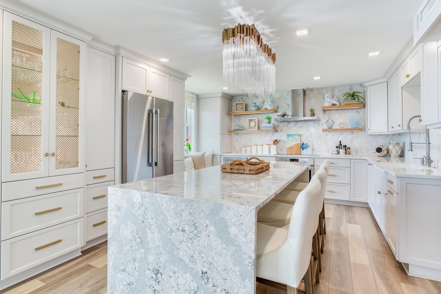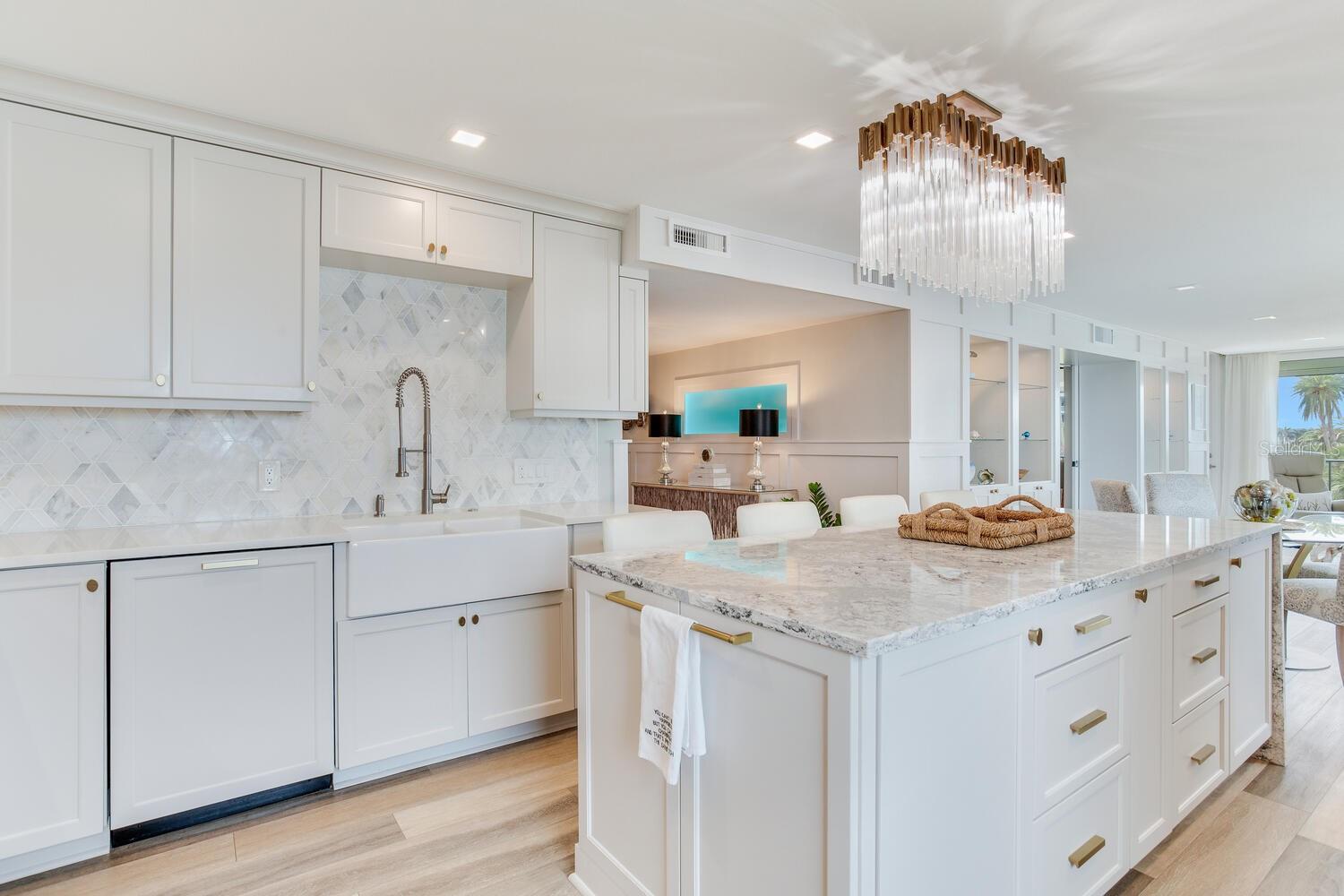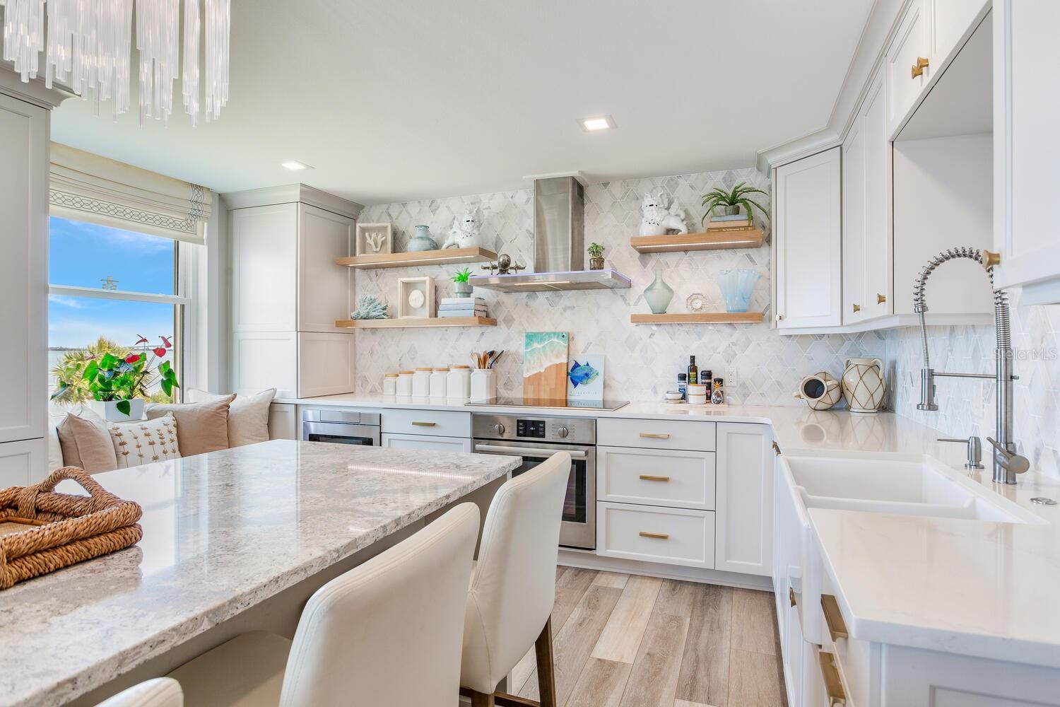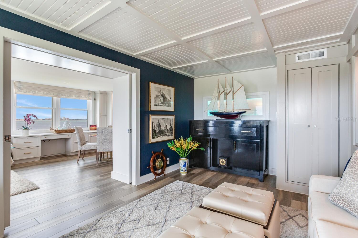 Live the coastal dream in this beautifully updated residence in the exclusive guard-gated Belleair Country Club community. Positioned to capture unbeatable sunsets, this southwest-facing corner condominium offers panoramic views of the Intracoastal Waterway, Sand Key Bridge and Memorial Causeway. Enter this fully remodeled two-bedroom, two-bath southwest corner unit, spanning 1,395 square feet, and experience the elegance of a thoughtfully upgraded interior. This light-filled home features smooth ceilings, new windows and doors (2020), and insulated exterior walls for enhanced comfort and efficiency. Custom finishes include wainscoting, cabinetry and storage throughout, window treatments, and interior glass-paneled doors that elevate the overall aesthetic. The chef’s kitchen is a standout with a quartz waterfall edge island and eat-in space, custom cabinetry with pullout drawers and extensive organization, and pullout pantry. Luxury appliances include a Bosch refrigerator, Wolf induction cooktop, Zephyr hood, Bosch oven and paneled dishwasher, under-counter microwave and a Pentair water filter. Take in the stunning direct west views from your built-in desk nook and living room adorned with wainscoting. The clever second bedroom, designed as a flexible living area with custom built-ins, is privately set behind pocket doors and can easily serve as a den, guest room or home office. A highlight of this unit is the oversized 26-foot waterfront balcony with southwest views of the Intracoastal. Hurricane shutters line the perimeter, providing peace of mind and allow you to safely leave your balcony furniture outdoors year-round. Showcasing floor-to-ceiling marble, the jewel box guest bath features a walk-in shower. The primary suite is a tranquil retreat, featuring a wainscot ceiling, custom closet cabinetry and floor-to-ceiling mirrored wardrobe doors. The en-suite bath boasts custom cabinetry, walk-in shower with built-in bench and a quartz double vanity. Discreet and conveniently located laundry closet off the hall has a stackable washer and dryer. Additional updates and features include air conditioner (2020), water heater (2025), water softener and new electrical panel. Private personal storage closet on the same floor and one premium assigned covered carport parking. This unit combines sophisticated style with unmatched views and updates, all in a secure, amenity-rich community. Building and grounds are meticulous and offer secure access to the recently updated lobby equipped with video monitoring. Newly renovated clubhouse and heated pool are directly on the Intracoastal Waterway with a sunset every night! In the guard gated community of Belleair Country Club and historic Belleview Inn. New owner qualifies for immediate golf membership, skipping the six-year waiting list, and a discount on initiation fee at the Belleair Country Club. Private marina with boat slips for rent or purchase are subject to availability. In the Town of Belleair with its own police department, town hall and recreation center with activities for all. Minutes to famous Gulf beaches, shopping, dining and excellent medical facilities. Close to downtown Clearwater, Dunedin and St. Pete. TPA airport is 30 minutes away and PIE is just 20 minutes. Floorplan Slide #41 VIMEO: https://vimeo.com/1085071812