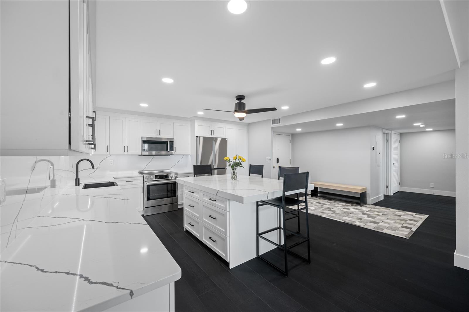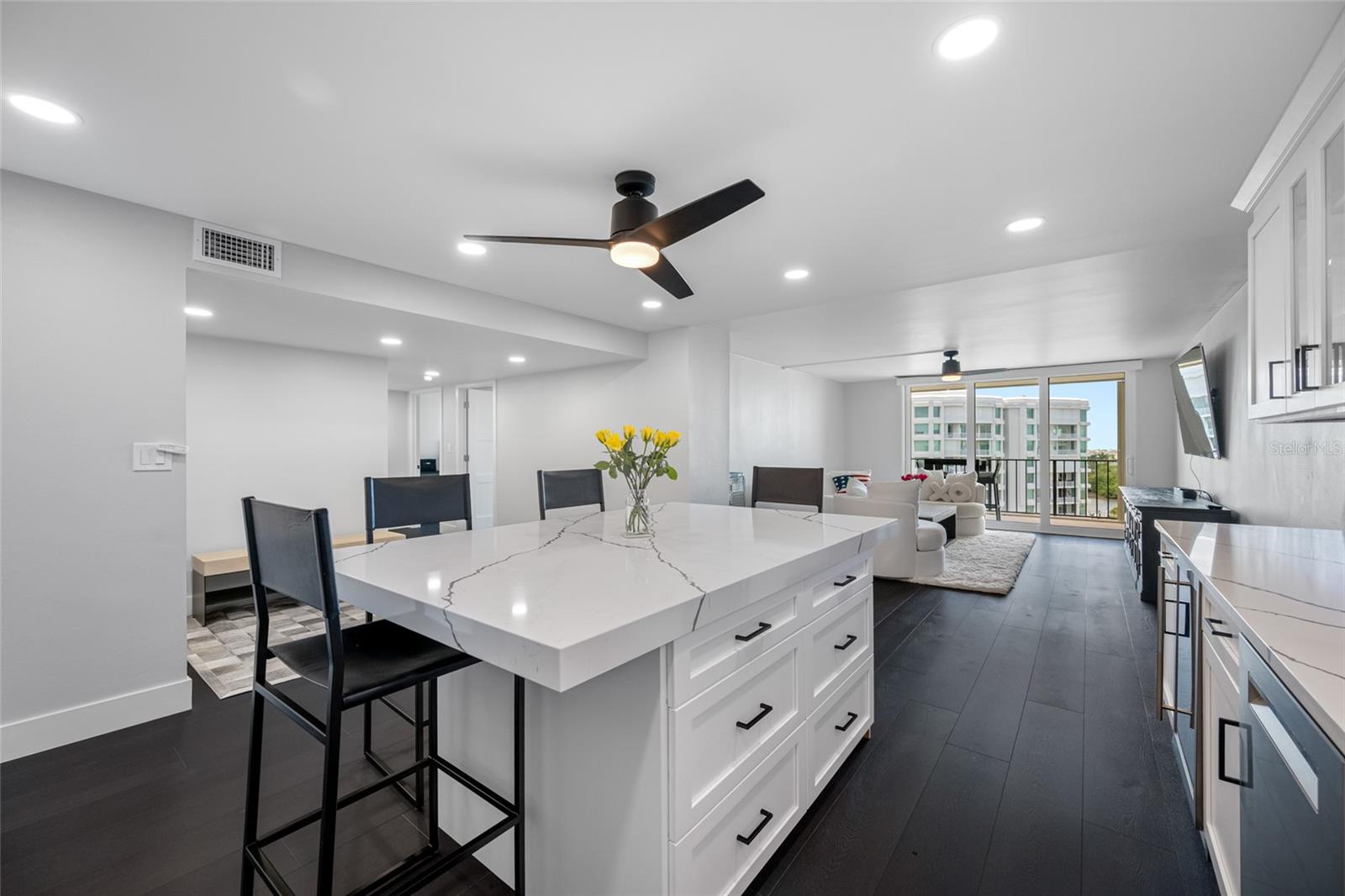 PRICE REDUCTION!!SPECTACULAR SOUTHWEST VIEWS day and night from this 8th floor penthouse condo that has been COMPLETELY remodeled. Bright and airy floor plan in highly coveted, gated Belleair Country Club community offers 2 bedrooms, 2 baths, 1325 sf, a reserved covered carport space and storage locker on the 8th floor. Attention to detail throughout - You are greeted with an open and welcoming foyer and great room, instantly drawn to the sparkling open water views of the intracoastal. and then to the gourmet kitchen, which is a dream. The kitchen is complete with a large, free-standing island, custom cabinetry, and high-end quartz countertops. The expansive 30 ft balcony is perfect for watching the boats, dolphins and the 4th of July fireworks! The primary suite has patio access, private en-suite bath and high end fixtures with custom built-in organizers. The sizeable guest suite also has patio access and a New custom closet with a New custom built-in wall unit. All new interior finishes including new electric panel and wiring, new electric water heater, new Bosch appliances, new wine fridge, new washer/dryer, new Lutron remote operated blinds, mew Luton controlled lighting throughout, New LVP flooring throughout, new electrical outlets and switches throughout, new hunter ceiling fans throughout, new kitchen cabinets with undermount lighting, and new quartz countertops throughout, new AC unit, Nest thermostat, impact sliding doors and storm shutters were upgraded in 2023. The Belleview Biltmore Villas community offers a private clubhouse, heated waterfront pool, large sundeck and ability to reserve space for private events. Most importantly, the community has passed its milestone inspection with no structural integrity issues! With its proximity to the Belleair Country Club, social and golf memberships are available to condo owners. Owners of this building qualify for immediate golf membership and bypass the usual 5 year wait. This location is only minutes to the beaches, grocery stores, restaurants and shopping. Tampa International Airport is less than 30 minutes away! NEW furniture, carpets and TVs are not included but are negotiable.