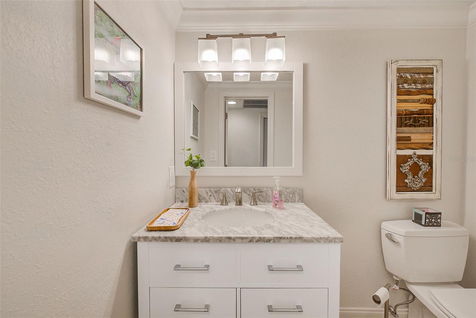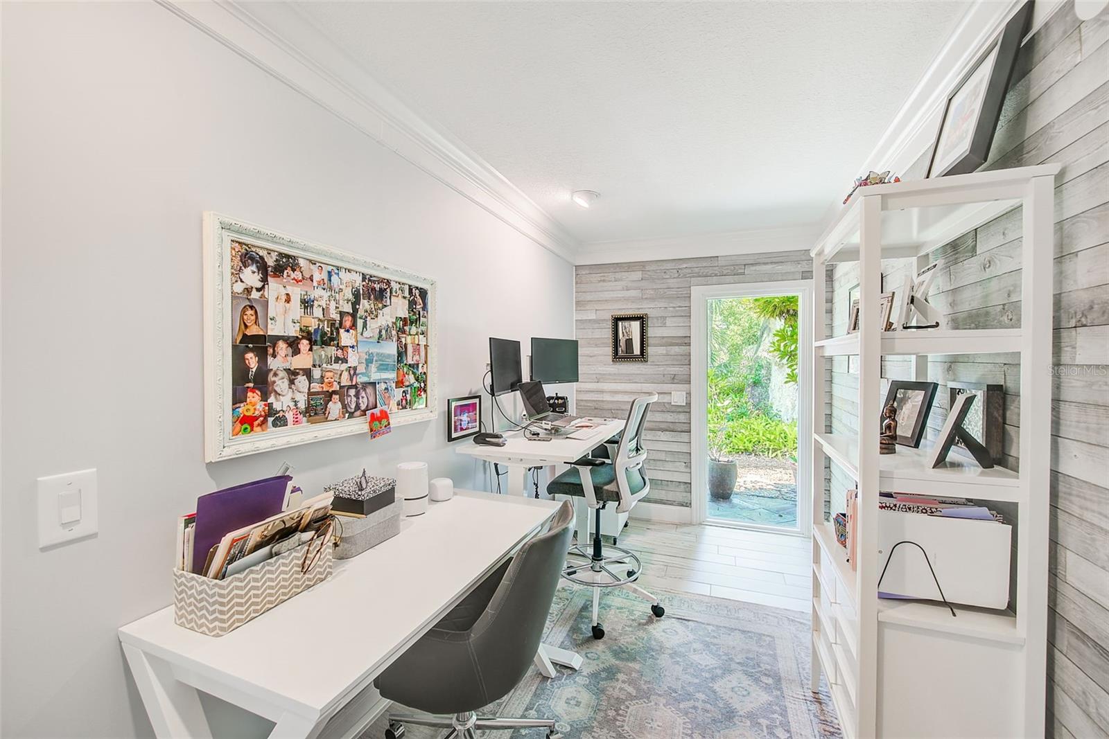 Welcome to your dream home in an unbeatable prime Belleair location, just steps from the exclusive Belleair Country Club, the historic Belleview Inn, and Clearwater Bay. Nestled on an oversized lot across from hole #17 on the private Belleair Golf Course, this 3 bedroom, 2.5-bathroom residence offers luxury, privacy and resort-style living in one of Florida’s most coveted neighborhoods. Step inside this charming cottage ranch-style home, where modern updates blend seamlessly with timeless character. The open layout welcomes you with warmth and elegance, featuring a combined living room, dining room and great room-perfect for entertaining. The gourmet galley kitchen with vintage meets modern flair is a chef’s delight, boasting quartz countertops, stainless steel appliances and a stylish modern backsplash. A built-in breakfast nook adds a cozy touch, while shiplap and brick accents throughout the home create a one-of-a-kind aesthetic. The spacious primary suite is a true sanctuary, complete with a massive walk-in closet and a serene spa-like bathroom. An attached office features a custom picture window overlooking a lush garden-ideal for a peaceful workspace. Step outside to your private tropical paradise, complete with newly paved patio and pergola that invites relaxation. The Chicago brick driveway and a covered front porch add to the home’s irresistible curb appeal. Additional highlights include a brand-new high efficiency A/C (installed 7/2025) and a private rear entrance framed by a block wall, offering both convenience and enhanced privacy. This home is high and dry-not located in a flood zone or evacuation area! Built for peace of mind, it’s hardwired for a generator and has a proven track record of maintaining power even during storm season!