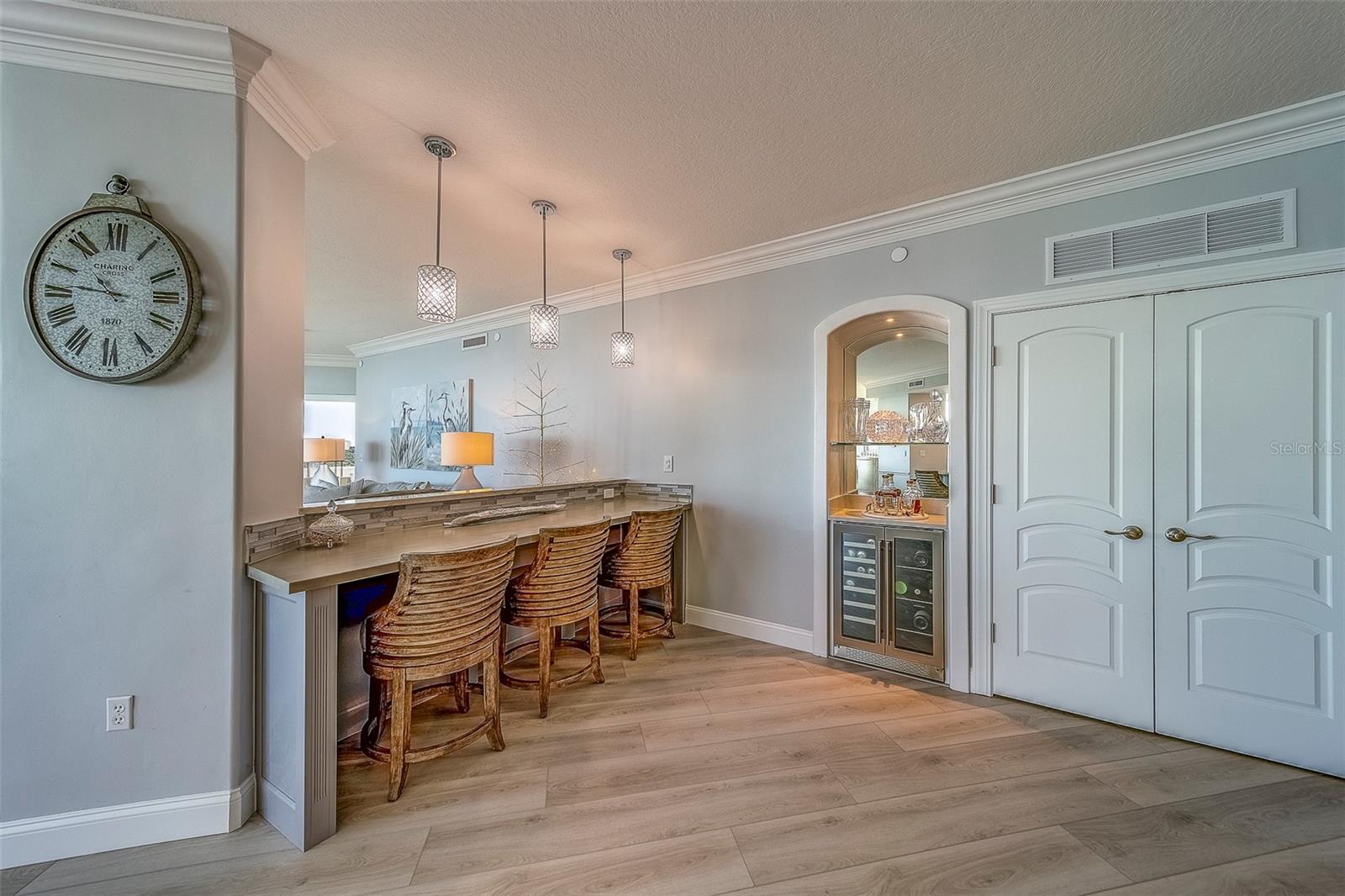 “WELCOME HOME TO A PLACE SO GRAND, WHERE THE SEA MEETS THE GOLDEN SAND” Seaside II, Unit 801 at Belleair is a rare waterfront Penthouse with amazing views located in the enclave of the members-only Belleair Country Club. This Hooker Furniture brand furnished, private corner unit welcomes you through a keyless double door entry and foyer. Open concept living areas with premium luxury flooring and crown molding along with a spacious kitchen, custom cabinetry, high level granite counters and appliances including a wine bar. A new water filtration system and tankless water heater are included with a fully equipped separate laundry room and sink. A romantic primary retreat with en-suite master bath offering double sink vanities, natural light make-up area, soaking tub, spacious shower and double walk-in closets. Your special guests will love their private suite with a full bath and walk-in closet. A third bedroom offers a full closet with Murphy Bed and en-suite bath along with room for home office amenities. This Penthouse suite at Seaside II offers new storm shutters and under building parking for two vehicles along with a large storage area, plus on-site building maintenance with private gated entry. Beautifully landscaped common areas border the heated pool and hot tub. Join the Belleair Country Club and enjoy the fine dining or the relaxed atmosphere at the bar listening to live music. Play a round of golf while family members take advantage of the state-of-the-art fitness center for swimming, tennis or pickleball. The Belleair Country Club Marina has boat lifts and slips available for lease. Welcome Home!!
