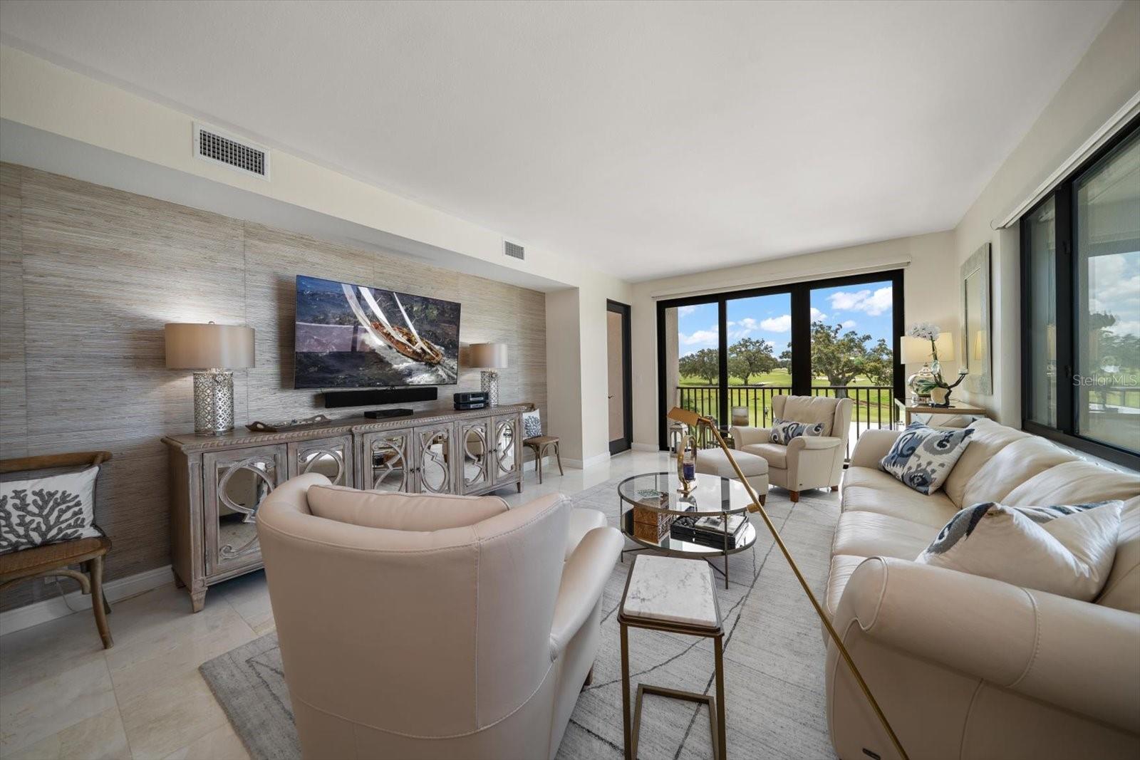 Tucked behind the private, guarded gates of the prestigious Belleair Country Club, this beautifully renovated third-floor corner unit in the sought-after South Garden building offers the perfect blend of luxury, comfort, and coastal elegance. This move-in ready 2-bedroom, 2-bathroom condo is bathed in natural light and showcases designer finishes throughout, including marble floors, neutral tones, and remote-control window shades. A welcoming foyer introduces the spacious open layout, where the stunning kitchen features white shaker cabinetry, gleaming marble countertops, a farmhouse sink, induction cooktop, stainless steel appliances, wine fridge, and breakfast bar—all flowing seamlessly into the dining and family rooms. A wall of sliders opens to a private balcony with lush golf course and shimmering Intracoastal views, the perfect backdrop for morning coffee or evening sunsets. The luxurious primary suite offers two custom closets, sliders to the balcony, and a spa-inspired ensuite with a marble vanity and beautifully tiled walk-in shower. The additional bedroom is equally inviting, with ample closet space and access to a renovated hall bath complete with shaker vanity, marble counters, LED mirror, and walk-in shower. Hurricane-code windows and sliders offer peace of mind, and the secure building includes access to a community pool. Ideally located near two private golf courses, fine dining, boutique shops, and the world-famous white sand beaches, this is Florida living at its finest. Ownership in this building places owner at the top of the list for the Belleair Country Club, a great benefit.
