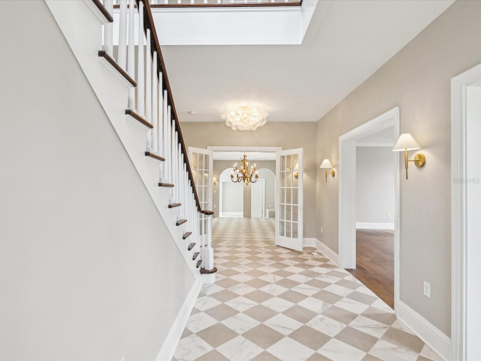 Welcome to this quintessential Belleair estate, a masterful blend of timeless elegance and modern refinement. Thoughtfully restored with exquisite attention to detail, this historic residence sits on a picturesque, palm tree-lined street. Take advantage of the Belleair lifestyle in your personal golf cart and explore all that the community has to offer including world class golf at Belleair Country Club and The Pelican Golf Club, fine dining, shopping and some of America’s most beautiful beaches. Located in a non-flood, no evacuation zone, the estate offers sweeping golf course views, a resort-sized pool, and a spacious driveway with ample room for vehicles. Inside, you are welcomed by custom marble flooring that flows into a grand formal dining room, ideal for family gatherings. An aesthetically pleasing, professionally designed chef’s kitchen awaits just beyond, complete with a butler’s pantry and adjacent powder room. The first-floor primary suite is a true retreat, featuring refinished 20th-century hardwood floors, a pass-through fireplace, a luxurious en-suite with soaking tub, and a walk-in closet with handcrafted wood shelving. Throughout the home, restored original windows provide an abundance of natural light and frame views of century-old palms and manicured fairways. Two versatile flex spaces—one on each floor—offer options for a home office, nursery, or playroom. Upstairs, four spacious bedrooms each have dedicated bathroom access for convenience. Down a private hallway, a game/media room with half bath provides the perfect secluded entertainment space. Additional highlights include a 400 sq ft living room with wood-burning fireplace and a bright sunroom overlooking the expansive pool and sun deck—an entertainer’s dream. This exceptional property combines history, luxury, and location, offering the rare opportunity to call one of Belleair’s true legacy's home.