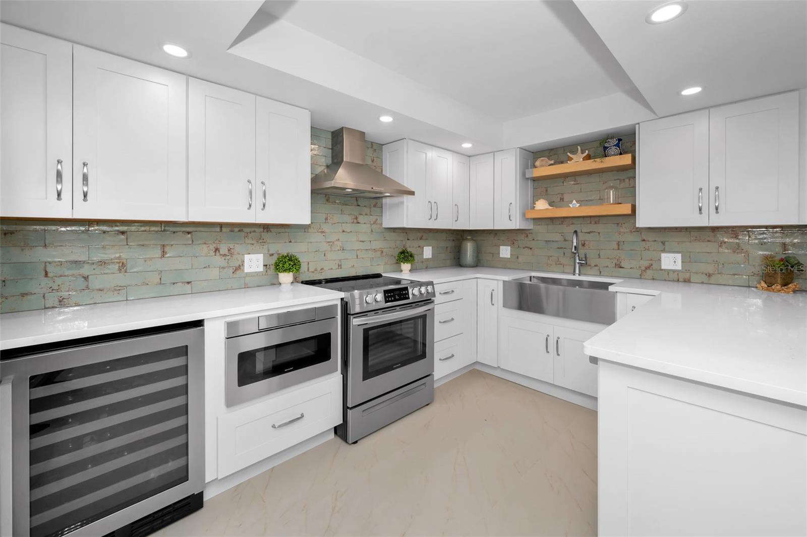 Belleair living at its finest in this new remodeled residence in the exclusive guard-gated Belleair Country Club community. Double door entry into this two-bedroom, two-bath with 1,395 square feet, offering fabulous upgrades. Enjoy views of Harold’s Lake and the Intracoastal from your new impact glass telescoping sliding doors. Light filled living room with an extra east-facing new impact glass window. Convenient and luxurious Hunter Douglas electronic blinds elevate the space and are on all windows and doors. The kitchen is a chef’s delight featuring all new cabinetry, quartz and integrated LED lighting. Upscale built-in appliances include stainless steel wine refrigerator, built-in microwave, range hood, range, dishwasher and refrigerator. Tiled back splash and stainless farm sink with decorative shelving offer a welcoming space for the cook and guests to enjoy. Open concept living room, dining room and kitchen are an ideal flow to entertain your new porcelain floors. Primary king-size bedroom en suite with balcony access and new impact glass doors. Mirrored dual closets lead to en-suite bath features updated cabinets, granite, tub/shower combo and linen closet. Second bedroom is centrally located with wall closet and balcony access with new impact glass doors. Second bath is central off main hall and offers updated cabinetry, granite and walk-in shower. Laundry closet with new washer and dryer. Additional updates and features include smooth ceilings, new ductwork, new air conditioner with self-cleaning system, CAT 5 hardwired, new breaker/electrical box, and NEST thermostat. Private personal storage closet on same floor and one assigned covered carport parking. New clubhouse for your enjoyment with pool and intracoastal views on the glorious green grounds of Bayshore 1 building offering sunsets every night! Building and grounds are meticulous and offer secure lobby access with video monitoring. In the 24/7 guard-gated community of Belleair Country Club and historic Belleview Inn. New owner qualifies for immediate golf membership, skipping the six-year waiting list, and also a discount on initiation fees at BCC. Private marina with boat slips for rent or purchase are subject to availability. In the quaint Town of Belleair with its own police department, town hall and recreation center with activities for all. Minutes to famous Gulf beaches, shopping, dining and excellent medical facilities. Close to downtown Clearwater, Dunedin and St. Pete. TPA airport is 30-minute drive and PIE is just 20 minutes. Floor plan photo slide #48.
