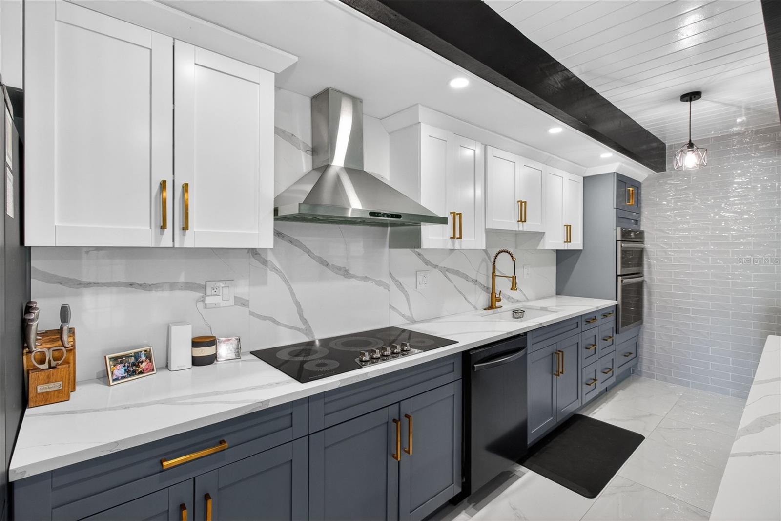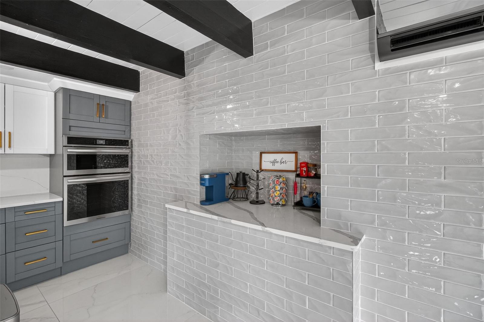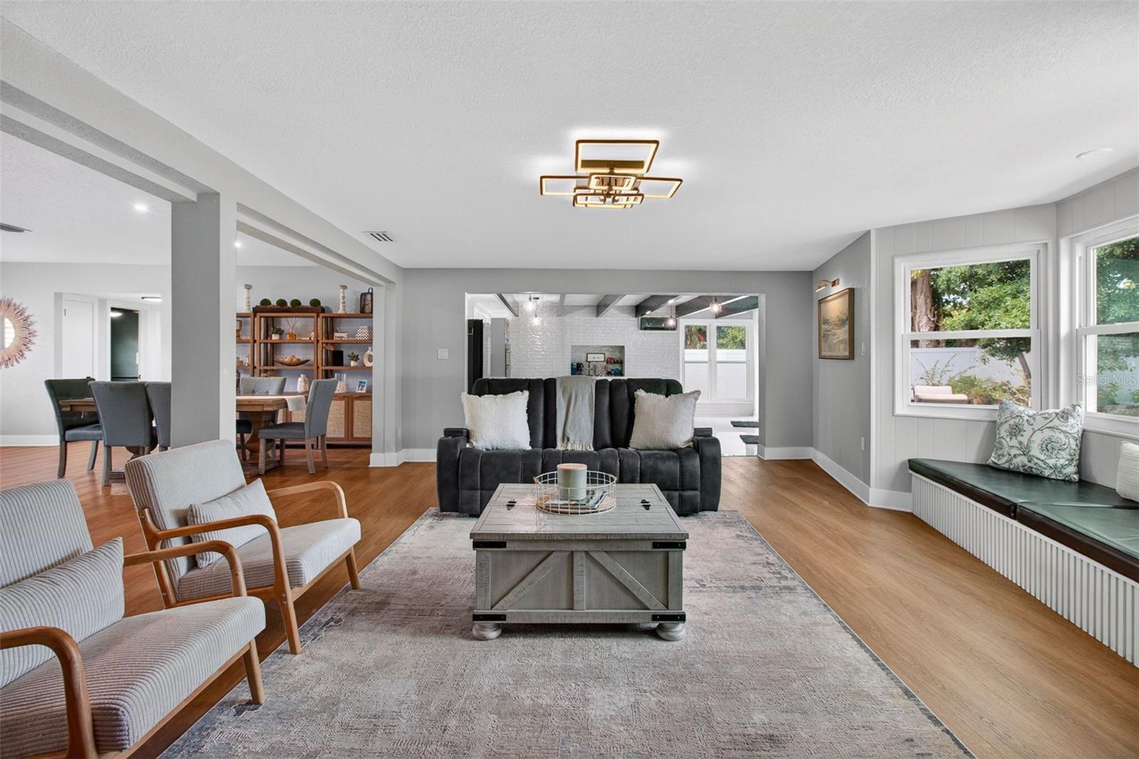 One or more photo(s) has been virtually staged. WELCOME HOME!! Discover this refined, 3 bedroom 2 full bathroom move-in-ready home in the heart of Belleair. Set on a generous .28-acre lot a stone’s throw from Pelican Golf Course and minutes from the renowned Belleair Country Club, this beautifully updated modern residence blends thoughtful design with high-end systems and finishes. Enter into bright, open living spaces graced by light oak luxury vinyl floors and a striking wood-panel centerpiece. The kitchen is a chef’s delight — exposed beams, a striking veneer accent wall, large center island, quartz countertops, built-in oven/microwave and brand-new stainless-steel appliances — flowing directly to an ample back patio for effortless indoor/outdoor living and entertaining. A dedicated wet bar enhances hosting possibilities. The primary suite is a restful retreat with a sizeable walk-in closet and a spa-like en suite featuring dual vanities and a spacious glass-enclosed walk-in shower. A practical split-plan places two guest bedrooms on the opposite side of the home with a beautifully renovated full bath. Practicality meets peace of mind with the property located NOT IN A FLOOD ZONE and extensive recent infrastructure upgrades: new metal roof with 2025 upgrades, solar panels, new electrical mast and grounding, upgraded electrical throughout, new HVAC (2025/26), new water heater, new hurricane-proof front and garage entry doors, ductless mini-split in the kitchen, updated ductwork, new tile and appliances in the kitchen, new closet systems, full turf and landscaping, exterior pressure wash and paint (2026), and more. Beyond the home, enjoy immediate access to Belleair’s best — beaches, Belleair Market and Publix, fine dining, parks, boat ramp, dog beach, and Morton Plant Hospital. Whether you’re seeking an elegant primary residence or a luxurious second home, this property offers exceptional value in one of Belleair’s most desirable locations. Don’t miss this opportunity — schedule your private showing today.