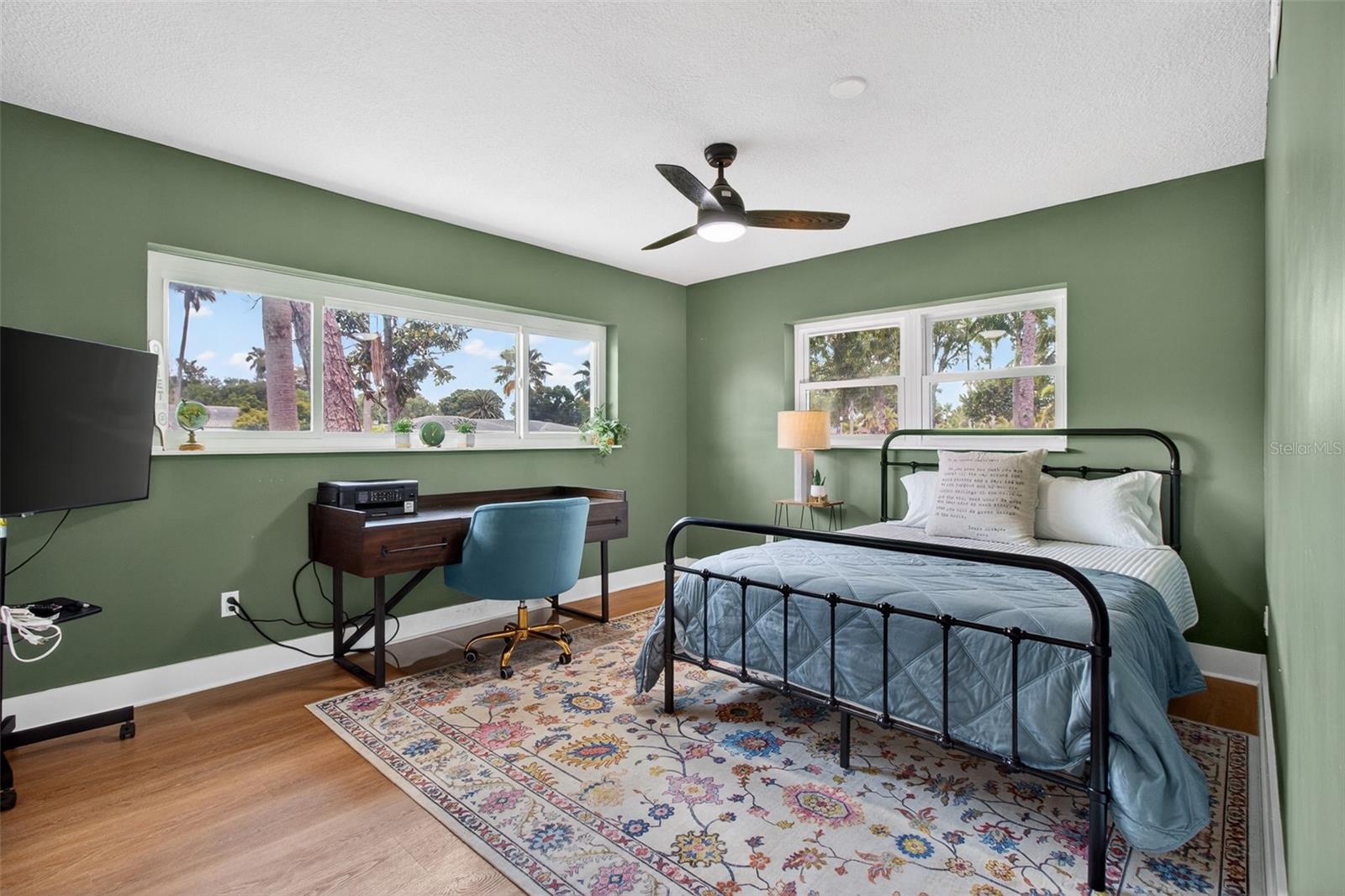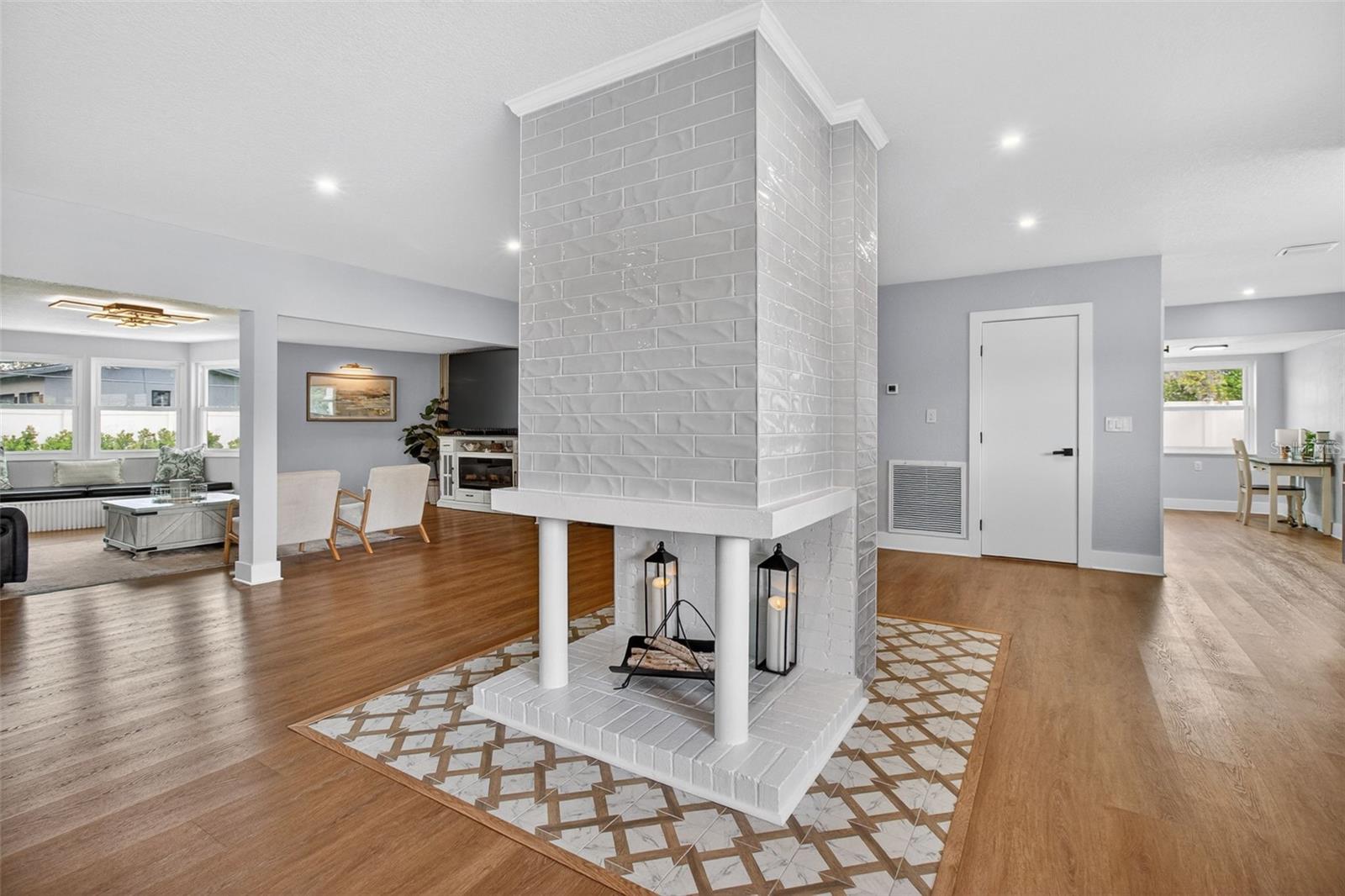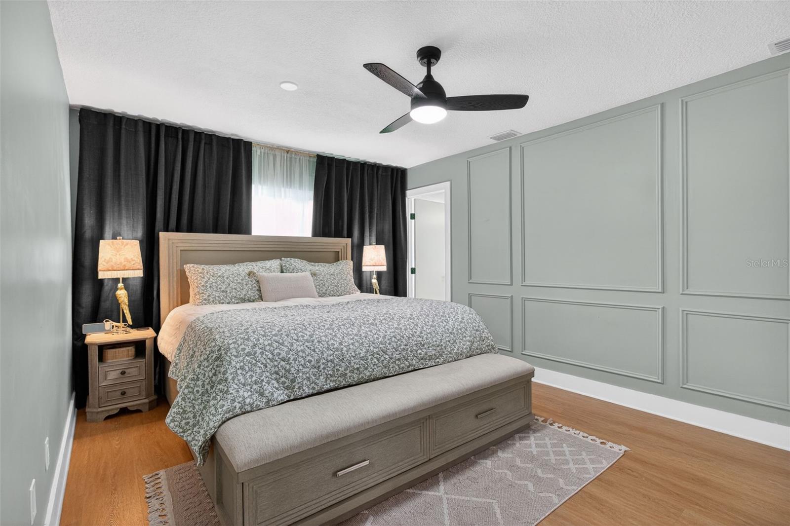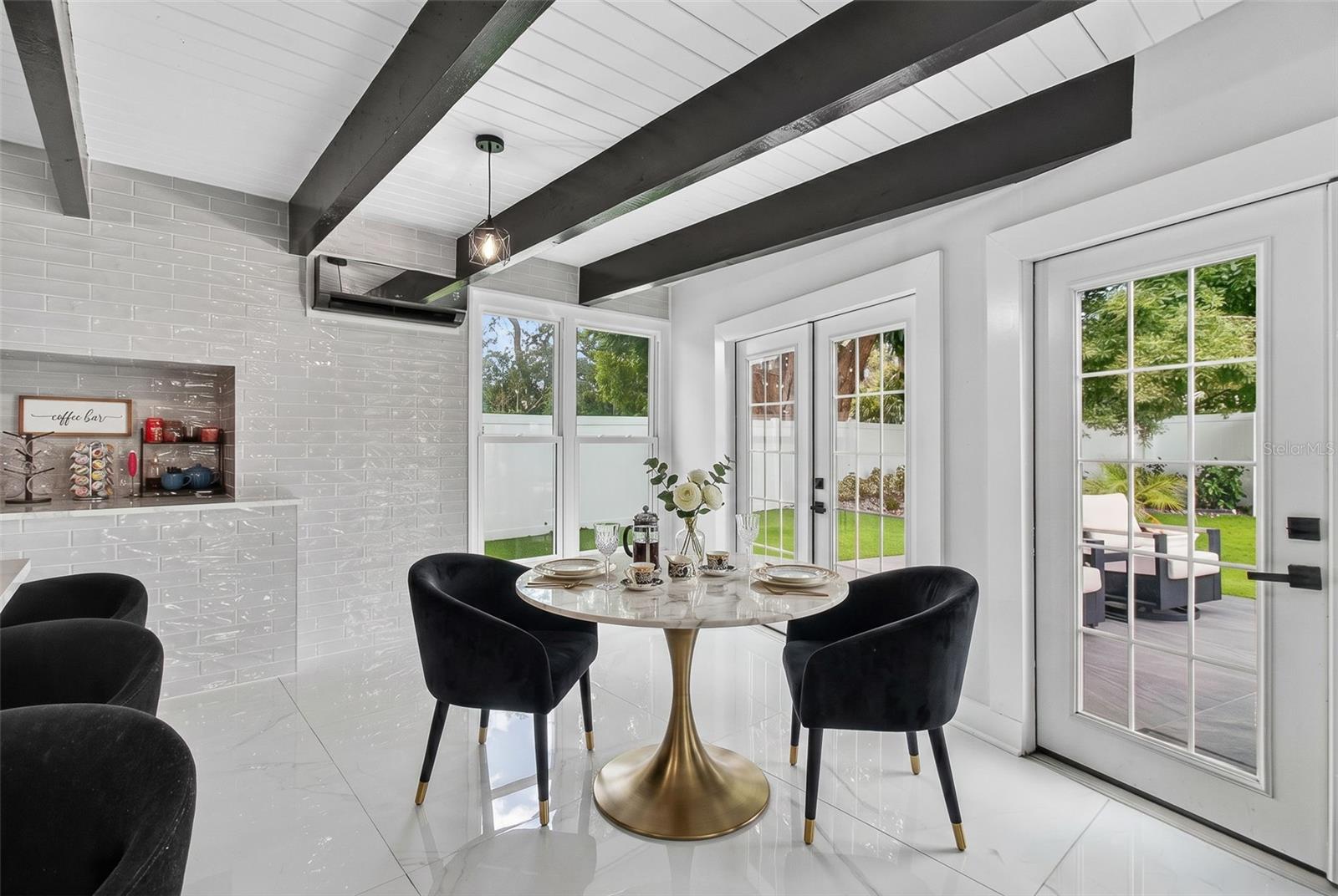 One or more photo(s) has been virtually staged. WELCOME HOME!! Discover this refined, 3 bedroom 2 full bathroom move-in-ready home in the heart of Belleair. Set on a generous .28-acre lot a stone’s throw from Pelican Golf Course and minutes from the renowned Belleair Country Club, this beautifully updated modern residence blends thoughtful design with high-end systems and finishes. Enter into bright, open living spaces graced by light oak luxury vinyl floors and a striking wood-panel centerpiece. The kitchen is a chef’s delight — exposed beams, a striking veneer accent wall, large center island, quartz countertops, built-in oven/microwave and brand-new stainless-steel appliances — flowing directly to an ample back patio for effortless indoor/outdoor living and entertaining. A dedicated wet bar enhances hosting possibilities. The primary suite is a restful retreat with a sizeable walk-in closet and a spa-like en suite featuring dual vanities and a spacious glass-enclosed walk-in shower. A practical split-plan places two guest bedrooms on the opposite side of the home with a beautifully renovated full bath. Practicality meets peace of mind with the property located NOT IN A FLOOD ZONE and extensive recent infrastructure upgrades: new metal roof with 2025 upgrades, solar panels, new electrical mast and grounding, upgraded electrical throughout, new HVAC (2025/26), new water heater, new hurricane-proof front and garage entry doors, ductless mini-split in the kitchen, updated ductwork, new tile and appliances in the kitchen, new closet systems, full turf and landscaping, exterior pressure wash and paint (2026), and more. Beyond the home, enjoy immediate access to Belleair’s best — beaches, Belleair Market and Publix, fine dining, parks, boat ramp, dog beach, and Morton Plant Hospital. Whether you’re seeking an elegant primary residence or a luxurious second home, this property offers exceptional value in one of Belleair’s most desirable locations. Don’t miss this opportunity — schedule your private showing today.