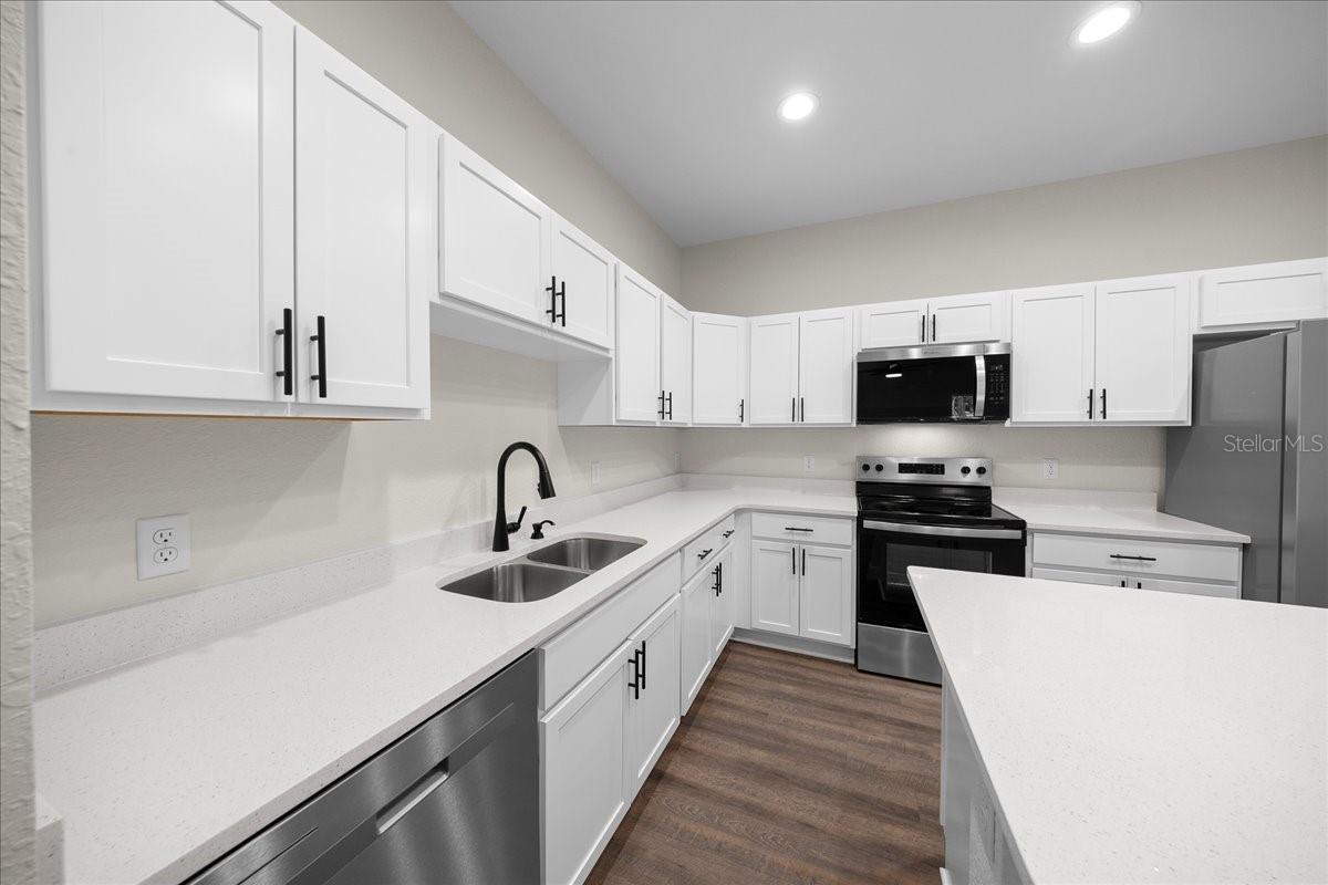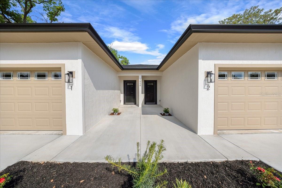 Incredible opportunity to own a brand new duplex right in the heart of the City of Belleview! This 2026 Duplex offers both privacy and convenience. Located just 0.3 mile from Lake Lillian and Lake Lillian Park, less than 2 miles from Publix, countless restaurants, gyms and amenities, it truly is one of a kind. As you approach the oversized driveway and parking area you will notice the beautifully landscaped front yard, modern lighting and design. Each unit has a private entryway and spacious 2 car garage to accompany the sprawling 1,290 sq ft that each unit offers. Opening the front door you are immediately struck by the large foyer, wide hall way, high ceilings and abundant natural light that welcome you. The kitchen displays a timeless white shaker cabinetry and elegant quartz countertops with immense workspace and storage. Luxury vinyl plank flooring flows throughout the living area and the bathrooms are finished with a stunning tile delivering both functionality and exceptional design. The private covered lanai allows for a peaceful end to each day. With the view of lush greenery and low occupancy surrounding, this backyard is sure to be an oasis in a busy world. This thoughtfully designed duplex offers something that most do not, convenient location, turnkey, low-maintenance new construction, luxury design and finishes that inspire the potential to occupy one unit yourself while accruing income from the other.