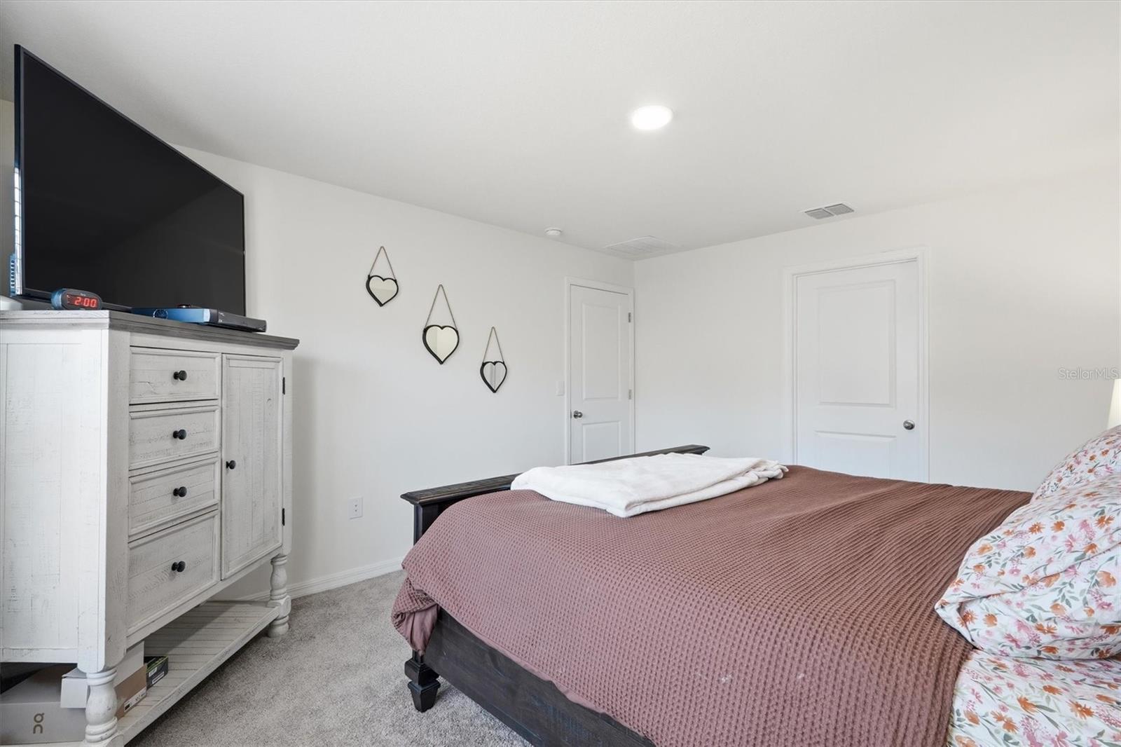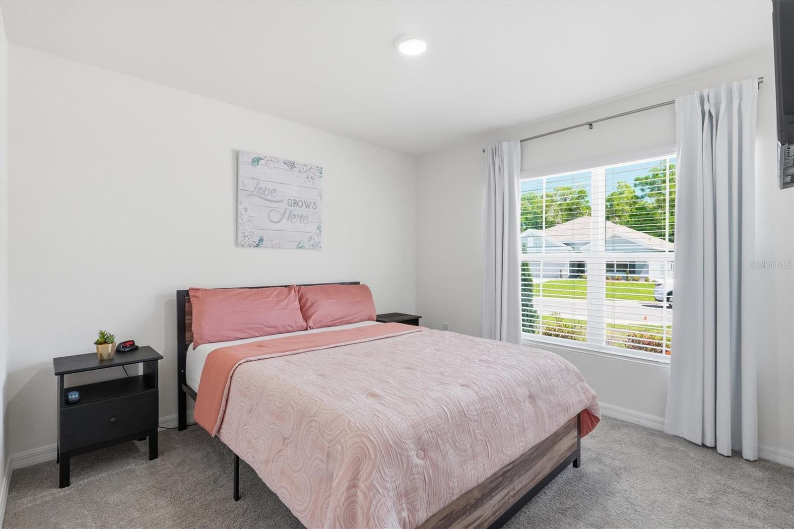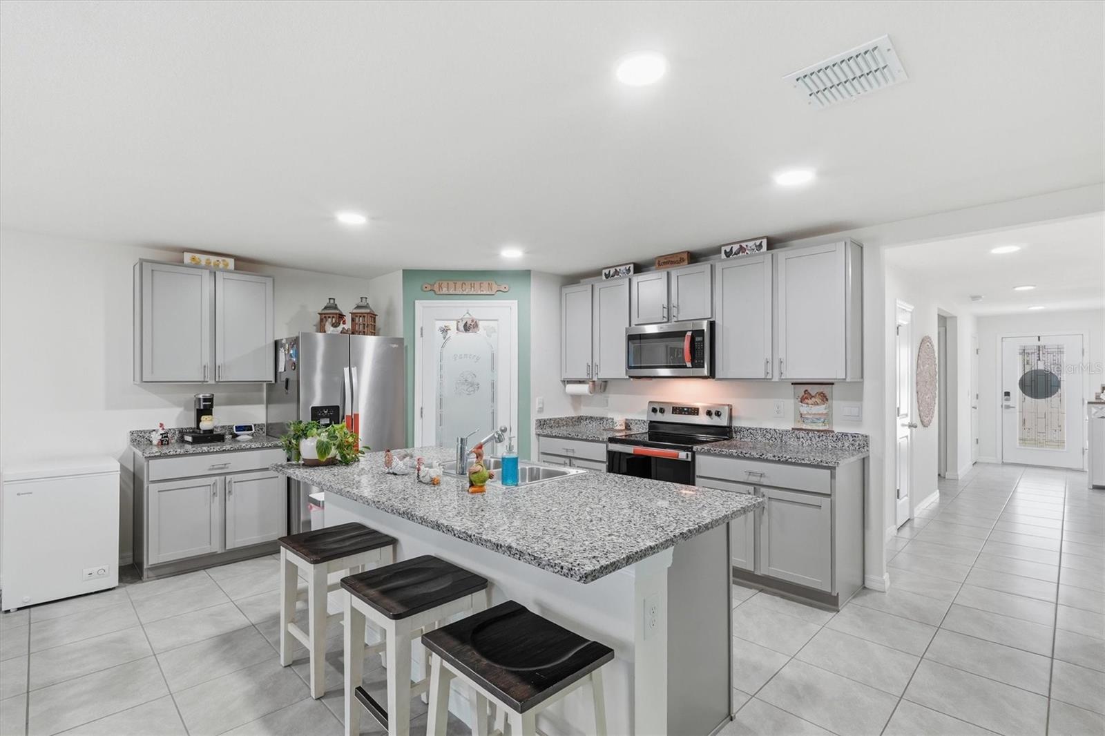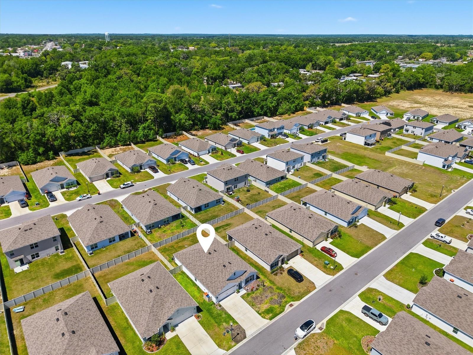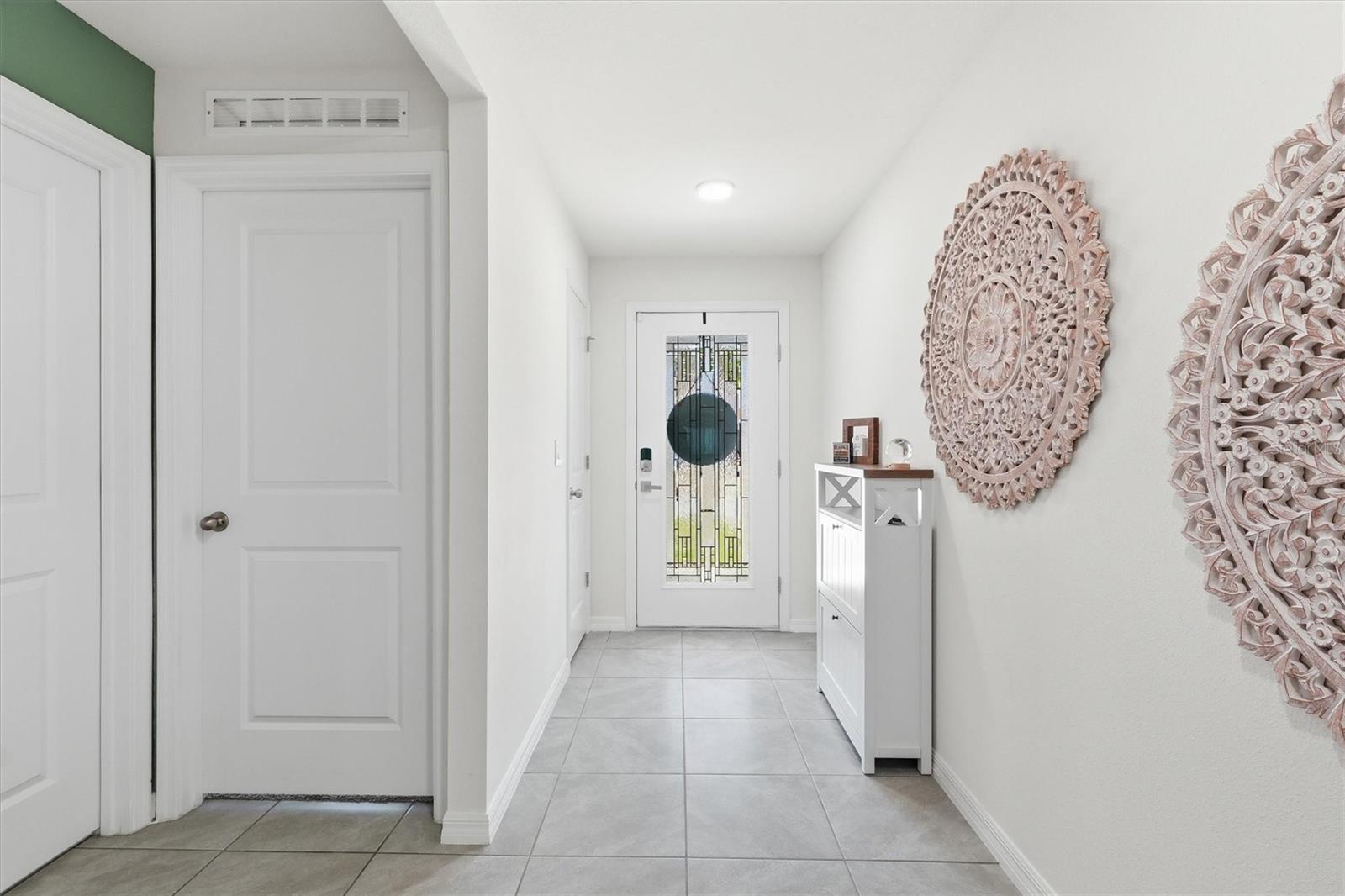 Step into comfort and modern convenience into this 4/2 Cali model home in the Autumn Glen Community of Belleview. Featuring a covered front porch and a striking modern stained glass front door that sets the tone from the moment you arrive. Inside, an inviting entry foyer welcomes you into an open and split floor plan that offers both spaciousness and privacy. Ceramic tile flooring flows throughout the main living areas, while plush carpeting adds warmth to the bedrooms. The thoughtfully designed kitchen is the heart of the home, complete with a large island, quartz counter tops, breakfast bar, stainless steel appliances, and a walk-in pantry—perfect for both everyday living and entertaining. The master suite is a relaxing retreat, featuring a generously sized walk-in closet and an ensuite bath with dual vanities and a walk-in shower (no tub). 3 Additional bedrooms are equally comfortable, with a well-appointed guest bath offering a shower/tub combination. Enjoy seamless indoor-outdoor living with sliding doors leading to a screened-in lanai—ideal for morning coffee or evening relaxation. The private backyard is fully enclosed with a vinyl fence, offering both privacy and space for outdoor play and enjoyment. Additional highlights include a 2-car garage, an interior laundry room for added convenience, and a state-of-the-art smart home system that enhances security, efficiency, and ease of living. Located next to Paradise Springs, Santos Trailhead, and Lake Weir, Autumn Glen is a nature lover’s paradise. Visit the Spanish Springs Town Square in The Villages and enjoy live music. Residents can also enjoy the dog park with their four-legged friends and tot lot for the little ones to play. Autumn Glen is a beautiful community perfect for first-time homeowners and families. Don’t miss the opportunity to call Autumn Glen home in Belleview, Florida. Schedule a tour today.