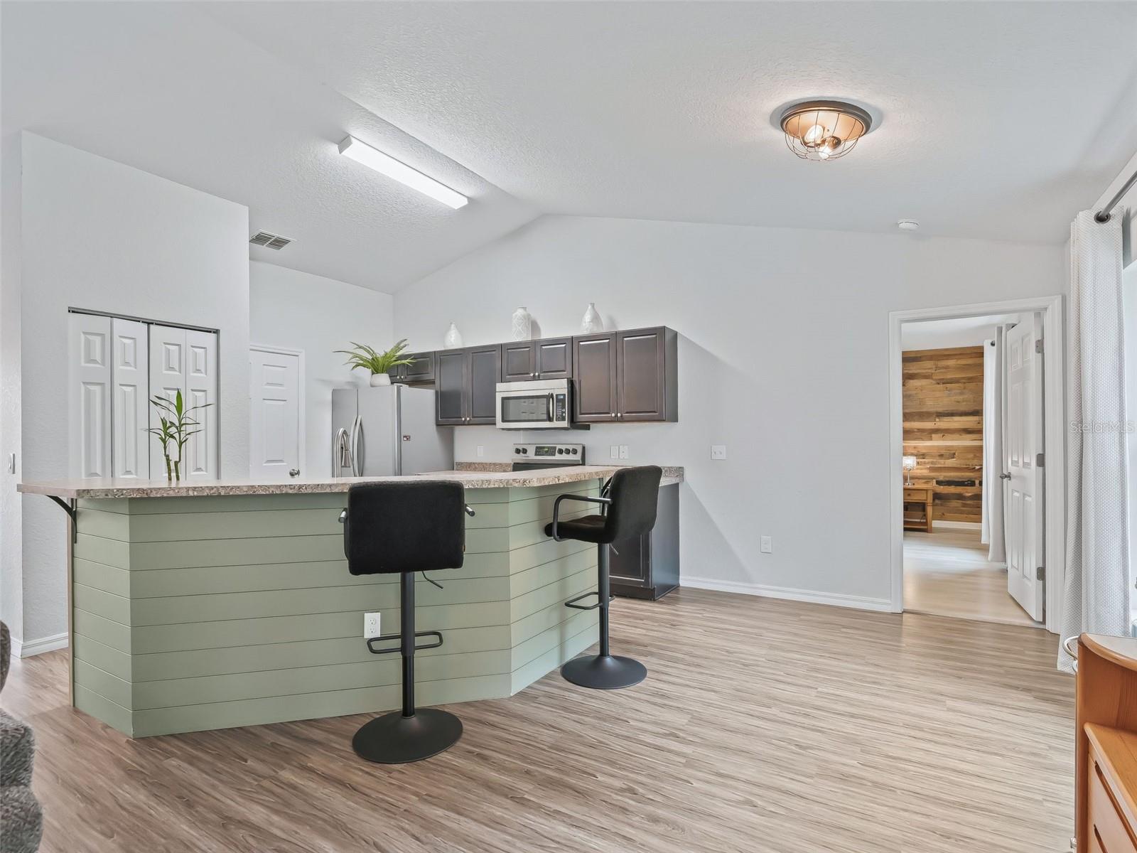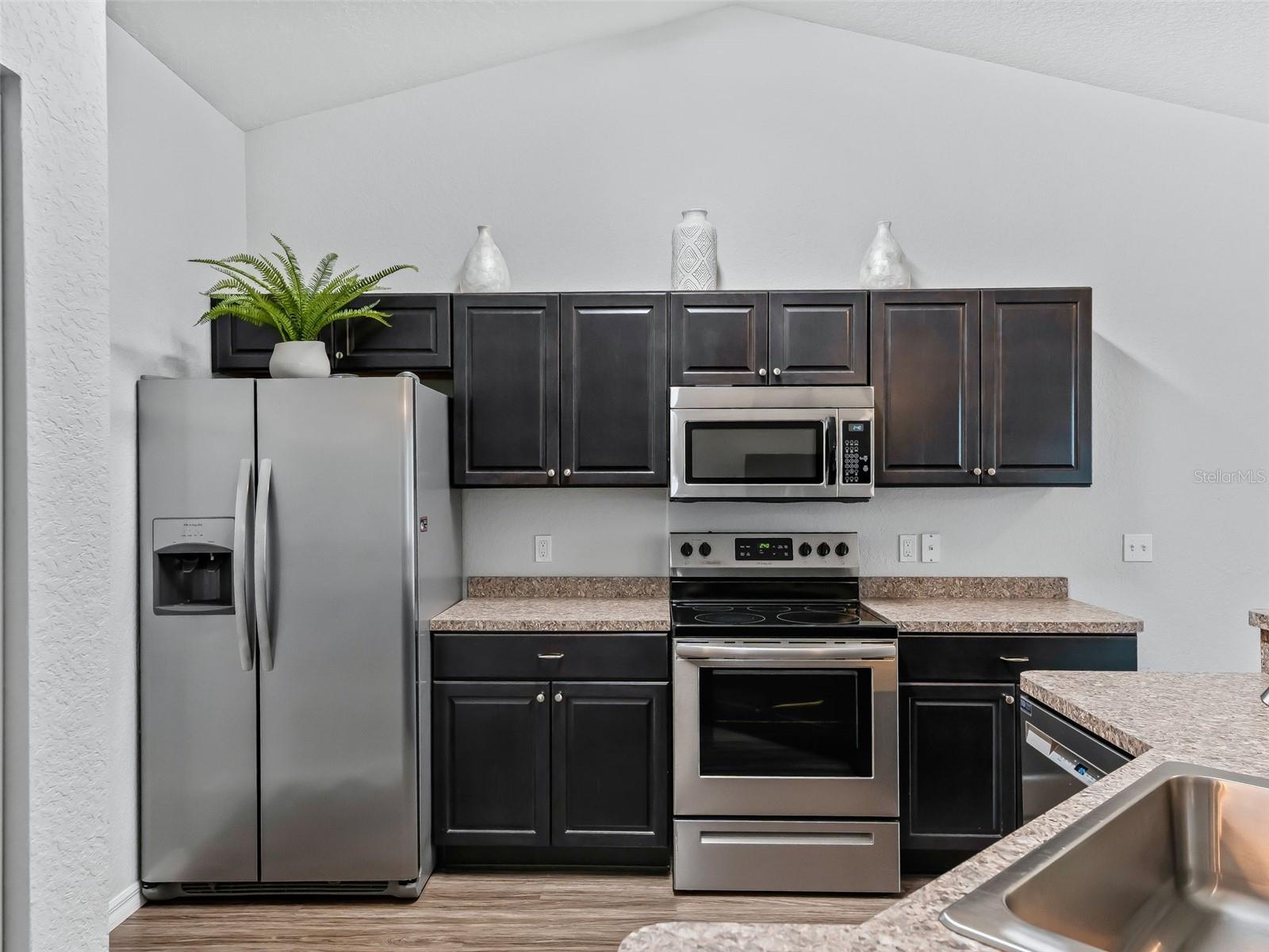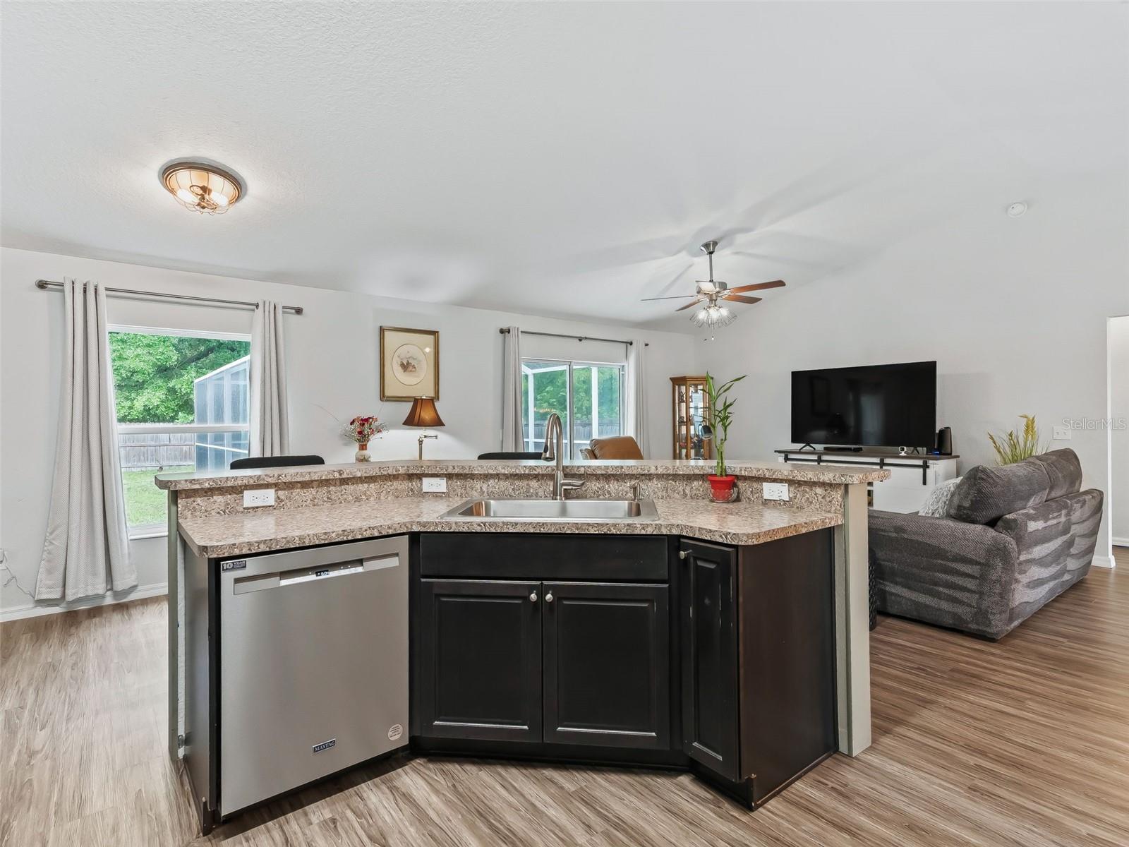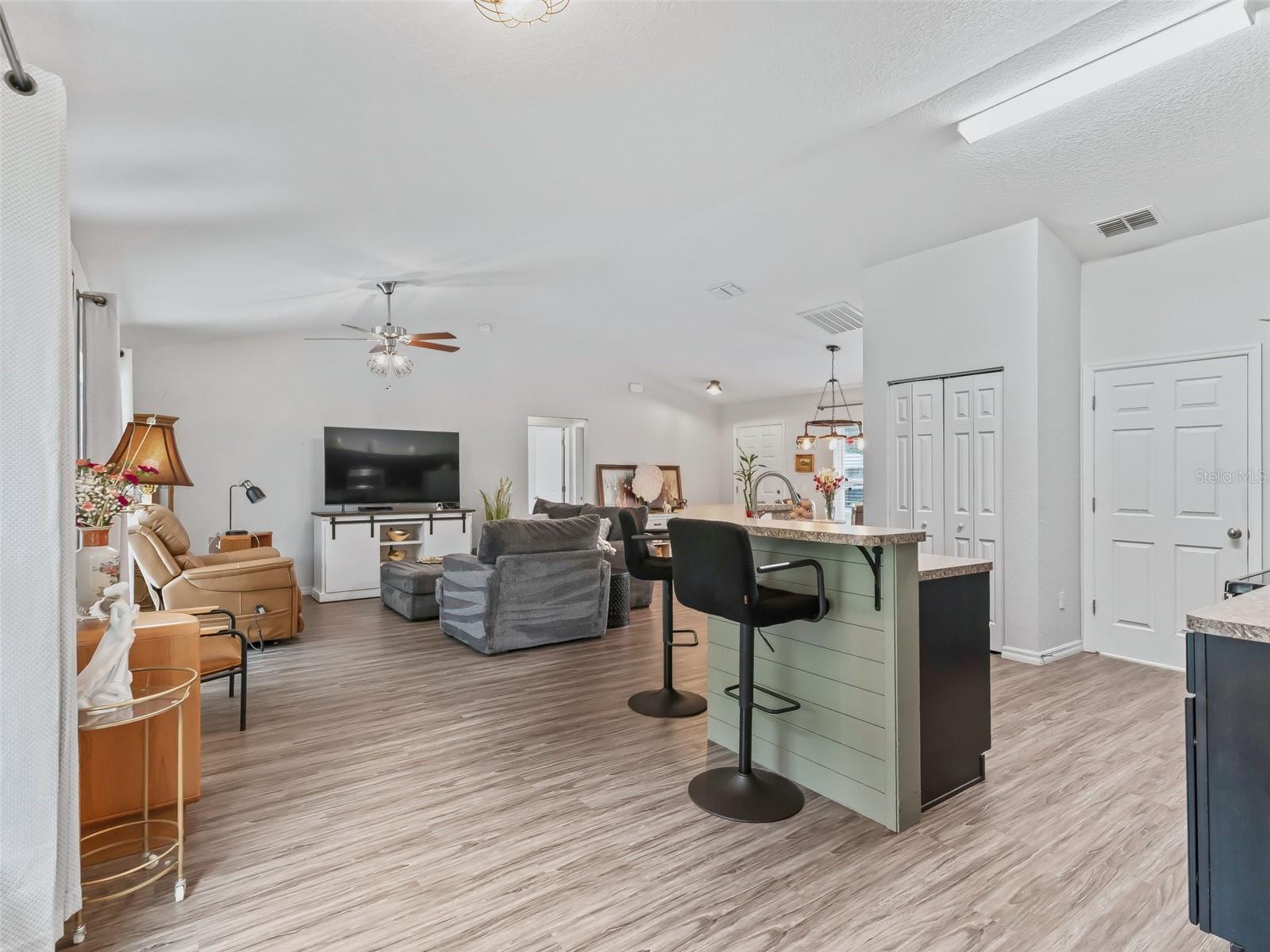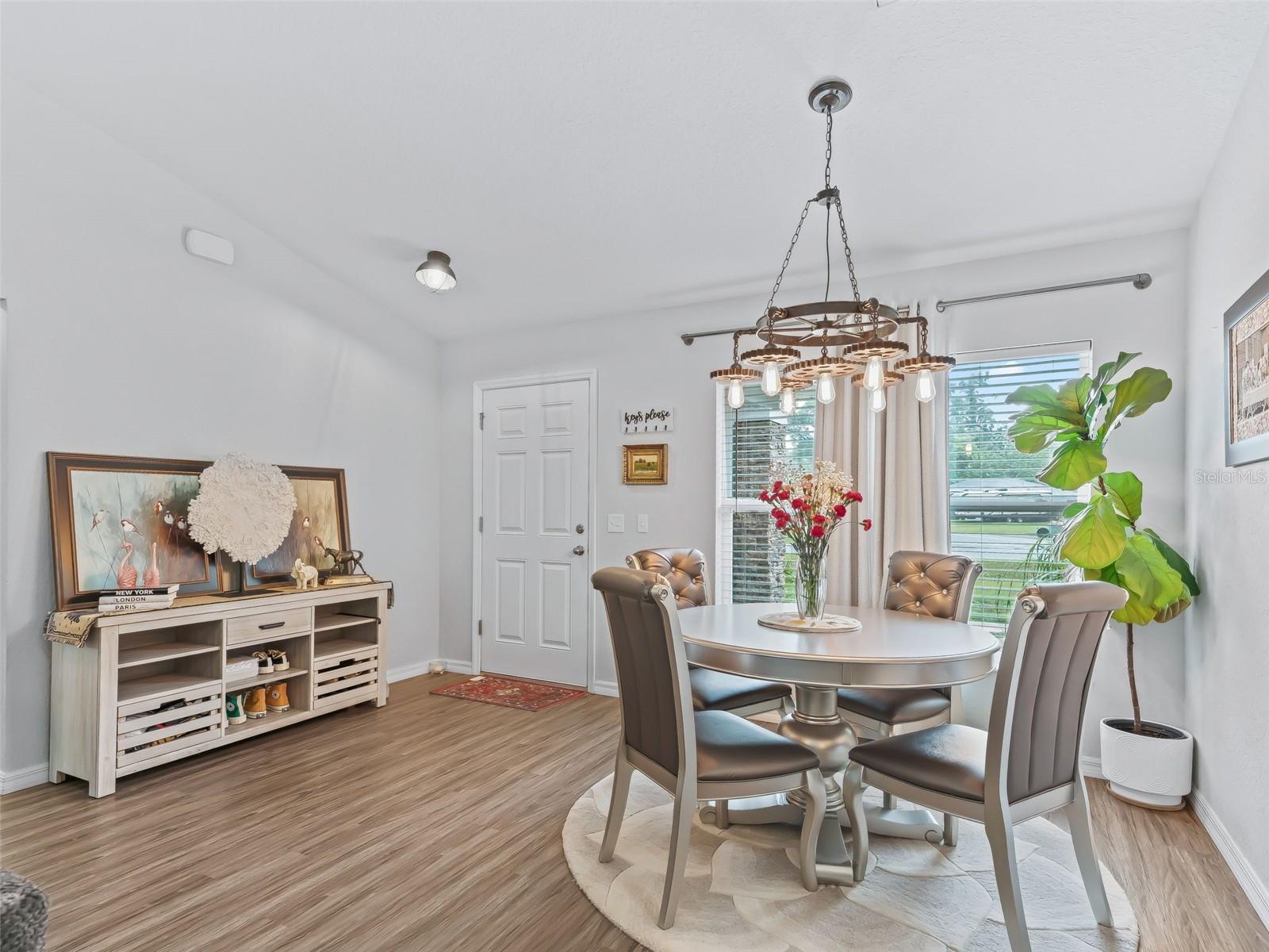 Under contract-accepting backup offers. Nestled in Belleview’s sunny skies subdivision, 6775 SE 122nd Lane is a beautifully crafted pool home built in 2019, offering comfort, style, and a prime central location between Ocala and The Villages. This thoughtfully designed Carnation model features durable block and stucco construction and has been enhanced with a stunning in-ground Saltwater pool added in 2022, equipped with the heating and cooling control, creating the perfect Florida retreat. The home offers three bedrooms and two full bathrooms within 1,416 square feet of air-conditioned living space, and 1,870 total square feet under roof. A desirable split-bedroom layout provides added privacy, while vaulted ceilings and an open-concept living and dining area create a bright, spacious feel throughout. The living room is especially inviting, with sliding glass doors that open directly to the sparkling pool and private, fully fenced backyard—ideal for relaxing or entertaining. The kitchen is both functional and charming, featuring warm wood cabinetry, high-definition laminate countertops, stainless steel appliances, and a stylish shiplap accent wall at the sink. Just off the kitchen, you’ll find a convenient indoor laundry room complete with washer, dryer, and upper cabinetry, as well as access to the attached two-car garage. Luxury vinyl flooring flows seamlessly through the main living areas, while the bedrooms offer cozy carpeting. The primary suite is a peaceful retreat with a walk-in closet and an updated en-suite bathroom showcasing a beautifully remodeled shower. Guest bedrooms and the guest bath are thoughtfully situated on the opposite side of the home for maximum privacy. Step outside to enjoy the expansive 18’ x 35’ pool area, surrounded by a wood-fenced backyard that offers both privacy and tranquility. Conveniently located near shopping, dining, medical facilities, and just minutes from the VA Medical Center in Summerfield, this home combines modern living with everyday convenience. This lovely property is move-in ready and waiting for you—schedule your private showing today.