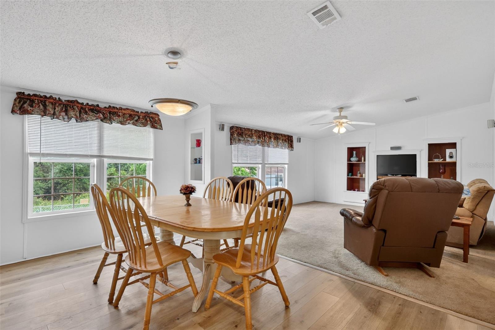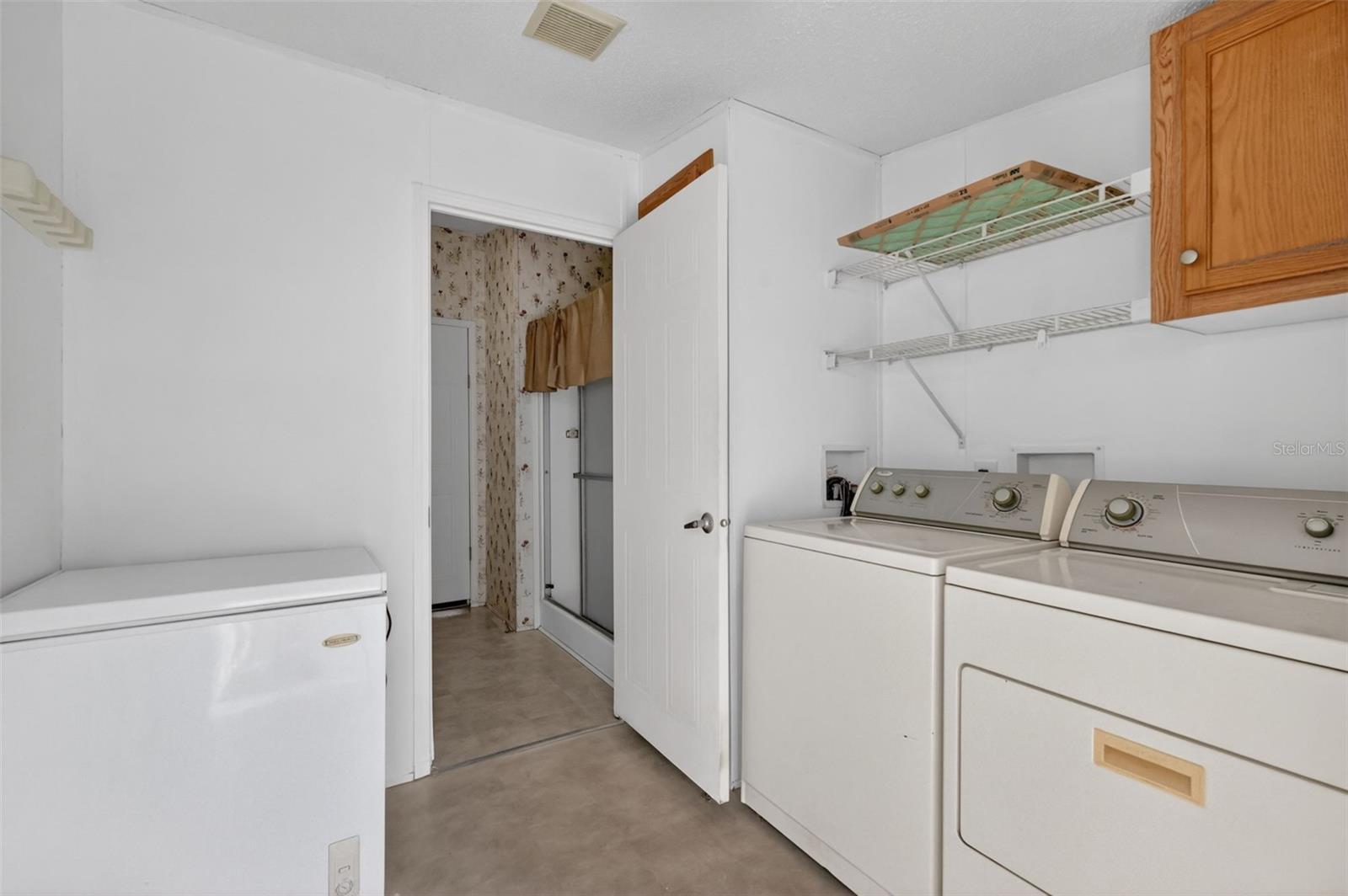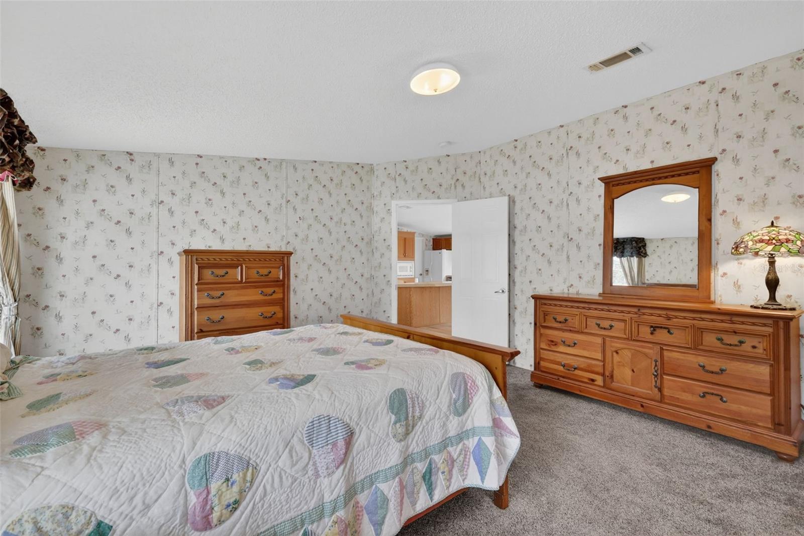 Looking for an affordable place to call Home with NO HOA , Lot Rent, or Water & Sewer Bill? Then this 3/2, almost, 1800 Sq Ft Modular home on your private lot with Well and Septic is a must see option. This immaculate Home offers a large 11X16 Front Covered Porch with soft approach incline ramp allowing for easy wheelchair accessibility. Open the front door and enter a large Open Concept floor plan featuring Vaulted ceilings throughout. The first room can be utilized as a Formal Living Room, Work Space, or Game room, large enough for that Pool Table! This area features Laminate flooring that also leads in to your spacious Dining Area, Family Room with built In TV and Book Shelves as well as a generous sized Kitchen with plenty of Cabinets with that must have double kitchen sink. Here you'll find Oak Cabinets and white Appliances plus plenty of natural light. Needing more light to cook, flip a switch for your overhead ceiling spot lights! Continue through the Kitchen into your separate Laundry Room with Washer and Dryer. This area also offers a rear back door Exit opening onto your 10X16 Deck overlooking the Fenced Back Yard. Perfect for Pets! The other side of the Laundry room opens into a full Guest Bath Room with large Vanity, as well as a walk in Shower. Convenient to both access from the rear deck and Hall Entry from your two Guest Bedrooms. The Primary Bed Room En-Suite has those Vaulted Ceilings, Large Walk In Closet, plus, a Spa Inspired Bath complete with a Corner Garden Soaking Tub, Double Sink Vanity, Stand alone Shower and a matching Linen Cabinet. No Space wasted in this Home. At the end of the Bedroom Hall you'll find a Built in Desk Area offering wall Cabinets, as well as, multiple desk drawers and side desk cabinet. Just enough space tucked away for your Home Office. Did I mention, all three Bedrooms have walk in closets, so much storage space! The Bonuses continue outside where you'll have covered parking for two cars under your large Carport with Cement Foundation. The drive way also has room for additional parking as well. Beyond the Carport is a large CLEAN Workshop complete with workbench and, an additional Storage building that houses the Well Pump keeping it out of direct sunlight. This building is perfect for lawn equipment, bikes, or just additional storage items. Both these buildings open to the rear yard as well. This well kept Home offers an appealing peaked Metal Roof, giving you years of peace of mind. Come take a look at all this property has to offer. The possibilities are endless.