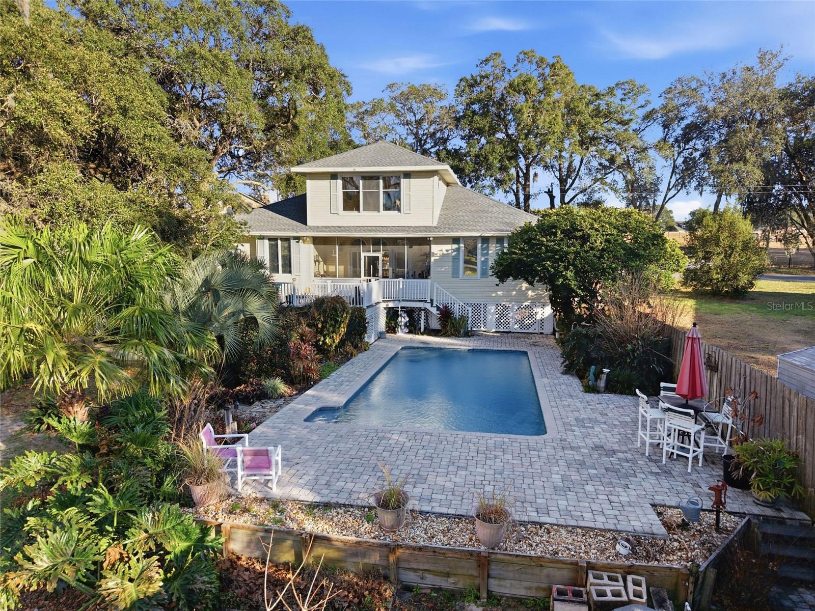 One or more photo(s) has been virtually staged. Welcome to this charming two-story lakefront home. Offering privacy, character, and resort-style outdoor living on beautiful Smith Lake. From the moment you arrive, the inviting front porch sets the tone for a warm and welcoming property. Inside, you will find bright living spaces with large windows that bring in natural light and showcase peaceful views of the backyard and water. The home offers a functional layout with spacious rooms and timeless architectural details throughout. The saltwater pool was converted approximately eight years ago and is surrounded by an expansive patio, perfect for entertaining or relaxing. The property also features two koi ponds and a cozy fire pit area that creates an ideal setting for evenings under the stars. The property has a seawall and dock on the private Smith Lake. Additional highlights include a roof replaced in 2023, lush landscaping, and multiple outdoor gathering spaces that make this home feel like a personal getaway while still being conveniently located near town amenities.