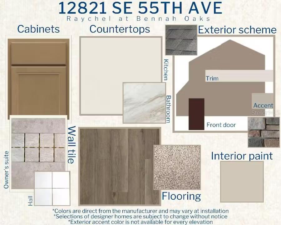 New construction home with 1819 square feet on one-story including 4 bedrooms, 2 baths, and an open living area. Enjoy an open kitchen with Quartz countertops, Samsung stainless steel appliances, a walk-in pantry, and a spacious counter height island, fully open to the dining café and gathering room. The living area, laundry room, and baths include luxury wood vinyl plank flooring, with stain-resistant carpet in the bedrooms. Your owner's suite is complete with a walk-in wardrobe and a private en-suite bath with dual vanities, a tiled shower, and a closeted toilet. Plus, enjoy a covered lanai, 2-car garage, custom-fit window blinds, architectural shingles, energy-efficient insulation and windows, and a full builder warranty. "Please note, virtual tour/photos showcases the home layout; colors and design options in actual home for sale may differ. Furnishings and decor do not convey