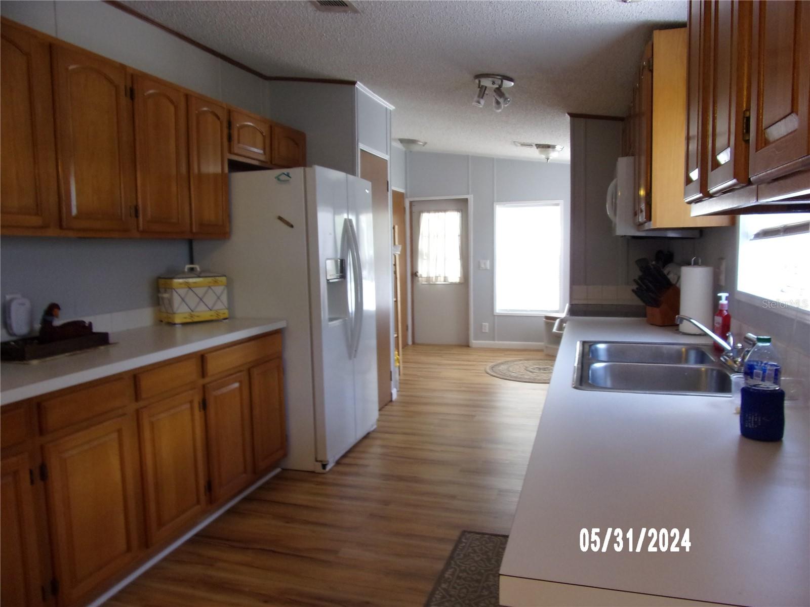 updated well maintained 3/2 Split Floor Plan - freshly painted interior and brand New lux Vinyl flooring - Plenty of Cabinet and Counter Space in The light & bright eat in kitchen. Inside Laundry- Open Floor plan-Vaulted ceilings - Big Living room with Electric Fireplace - Glass Sliding Door to the Deck leading to the Fenced in back yard. Main Bedroom has Updated on suite with Skylight - In the Front of the home is a 19 x 11 Screened in Porch - Huge 27 x 21 Carport W/ 10 feet of clearance - Cement Stucco Skirting all around the home. This home is neat and clean and ready for a new Owner. Fenced in Backyard. Tiedowns retrofitted 5\25. Engineering report in hand. Home repiped and added a w/new water heater 7/25. Roof 2024 , Ac 2008 (serviced twice yearly (last 6/2025 ), Termite bond (transferable, last insp 6/25 ), pest service quarterly (last 4/25) comes with Broward gold wty (Exp 9/25)