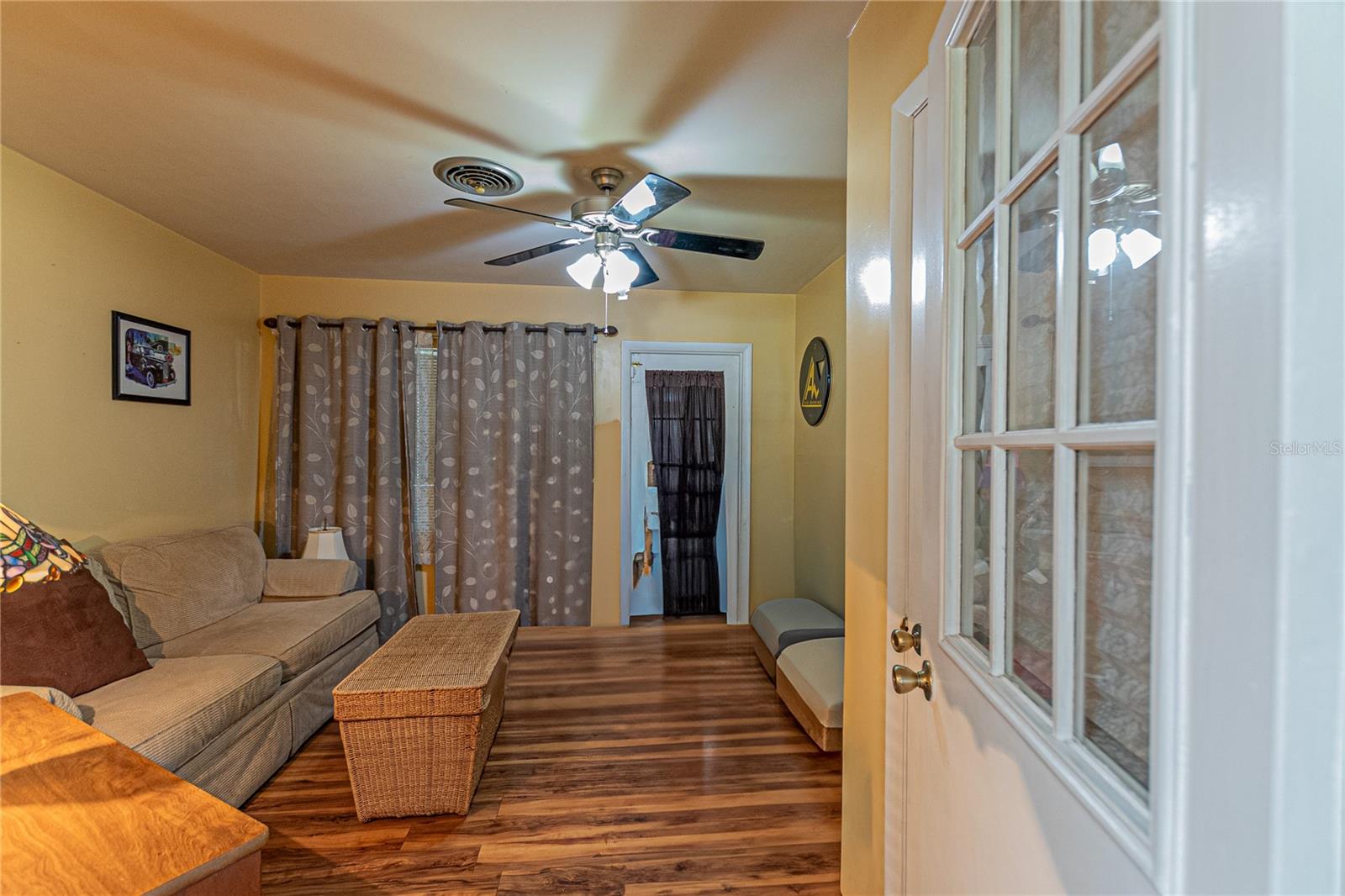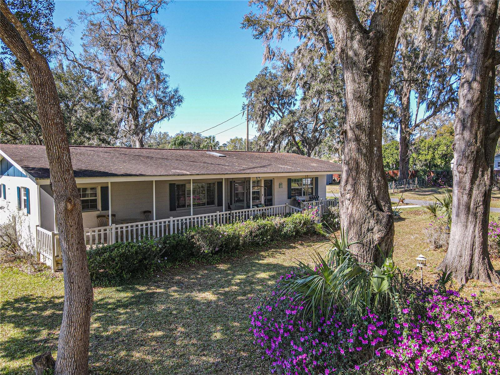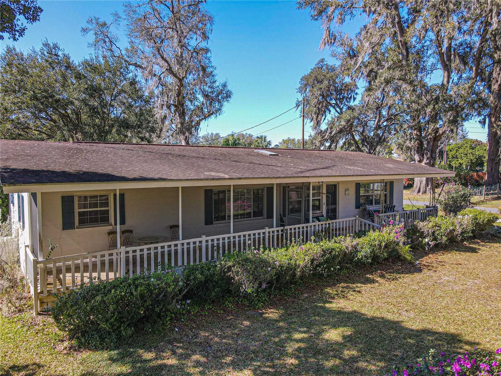 One or more photo(s) has been virtually staged. Beautiful, pristine and quiet GEM rarely available, one acre setting with a lovely 3/2 home on A-1 zoning. Eggs too high! This home has a chicken coop that is fenced and ready to place your chickens in for your own fresh ready eggs. This retreat is situated close to 441 and shopping but set in a private cul-de-sac area of 15 homes. A large front porch welcomes your guests and is partially screened to enjoy the beautiful summer days. Mature landscaping is beautiful and creates a beautiful setting. The home also includes 2 storage sheds and a 3 bay carport. The driveway is paved. Enter the large living room, formal dining area, 3 bedrooms and one of the bedrooms has a private entry. The primary bedroom has an en-suite and a room off of the primary for a den, or maybe a nursery! Galley style kitchen with plenty of storage, a wall oven and cooktop are a chef's delight. There is an inside laundry room located off of the spacious windowed lanai in the rear of the home overlooking the beautiful fenced backyard.New water heater 6/2025 and New Roof scheduled to be replaced .Seller has a transferrable home warranty.