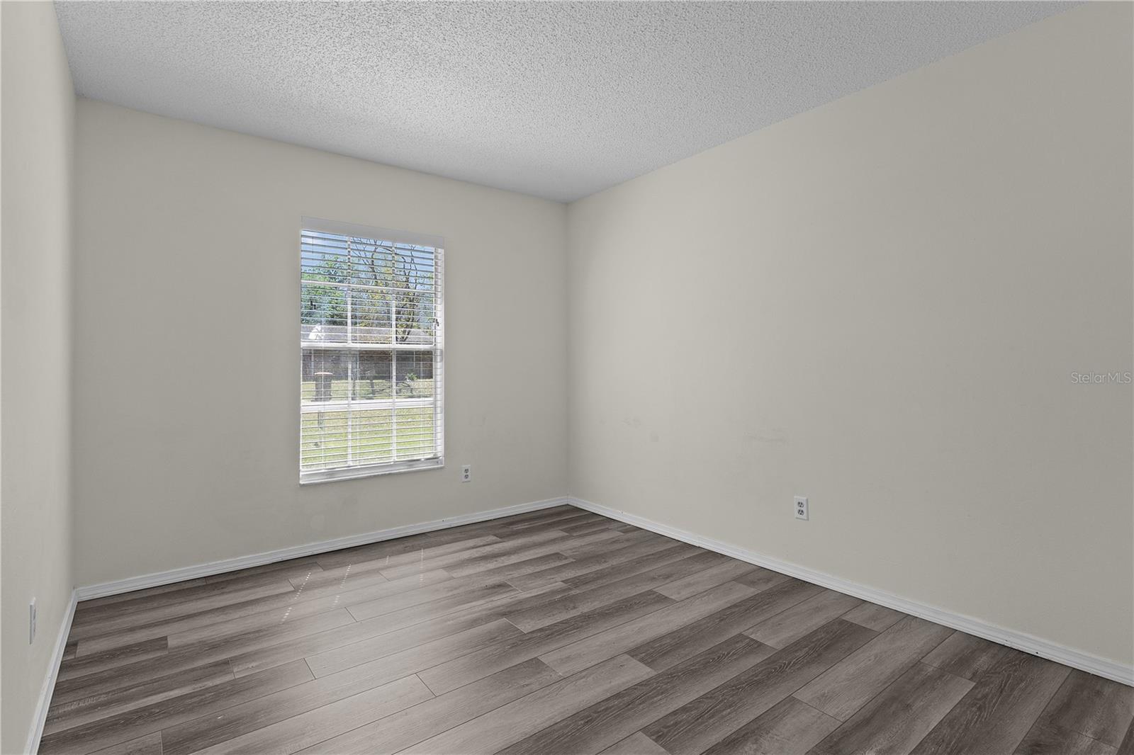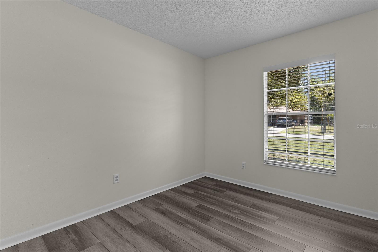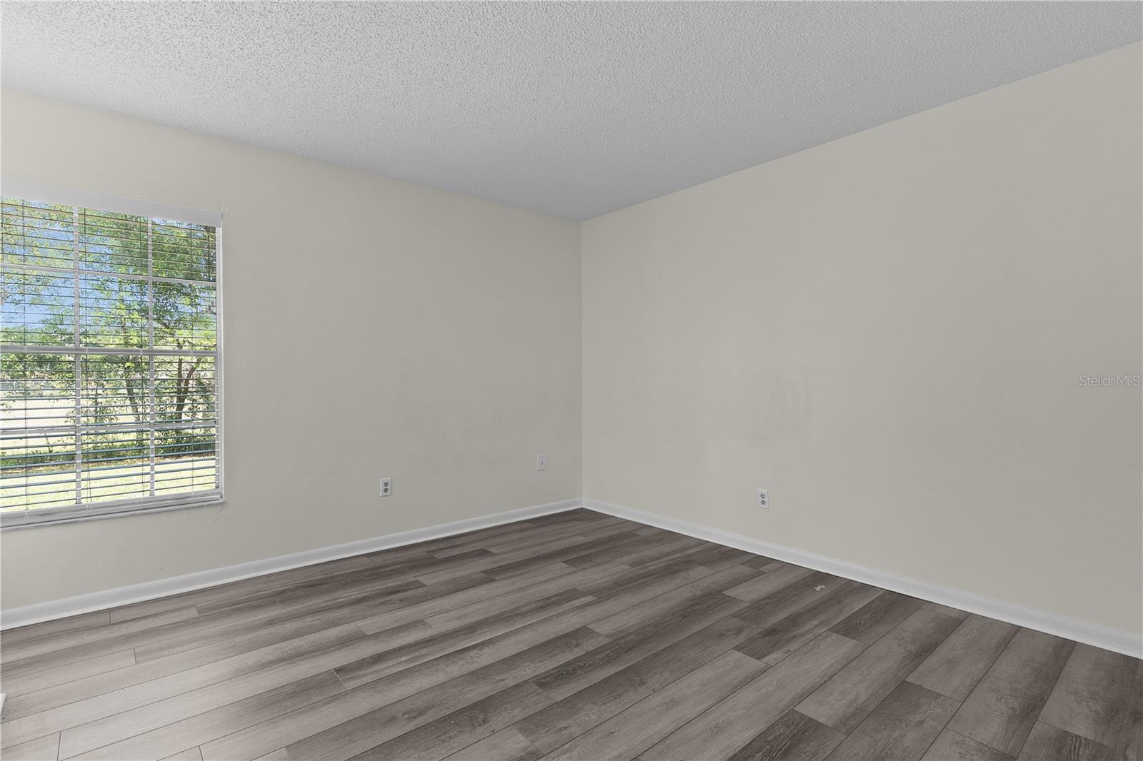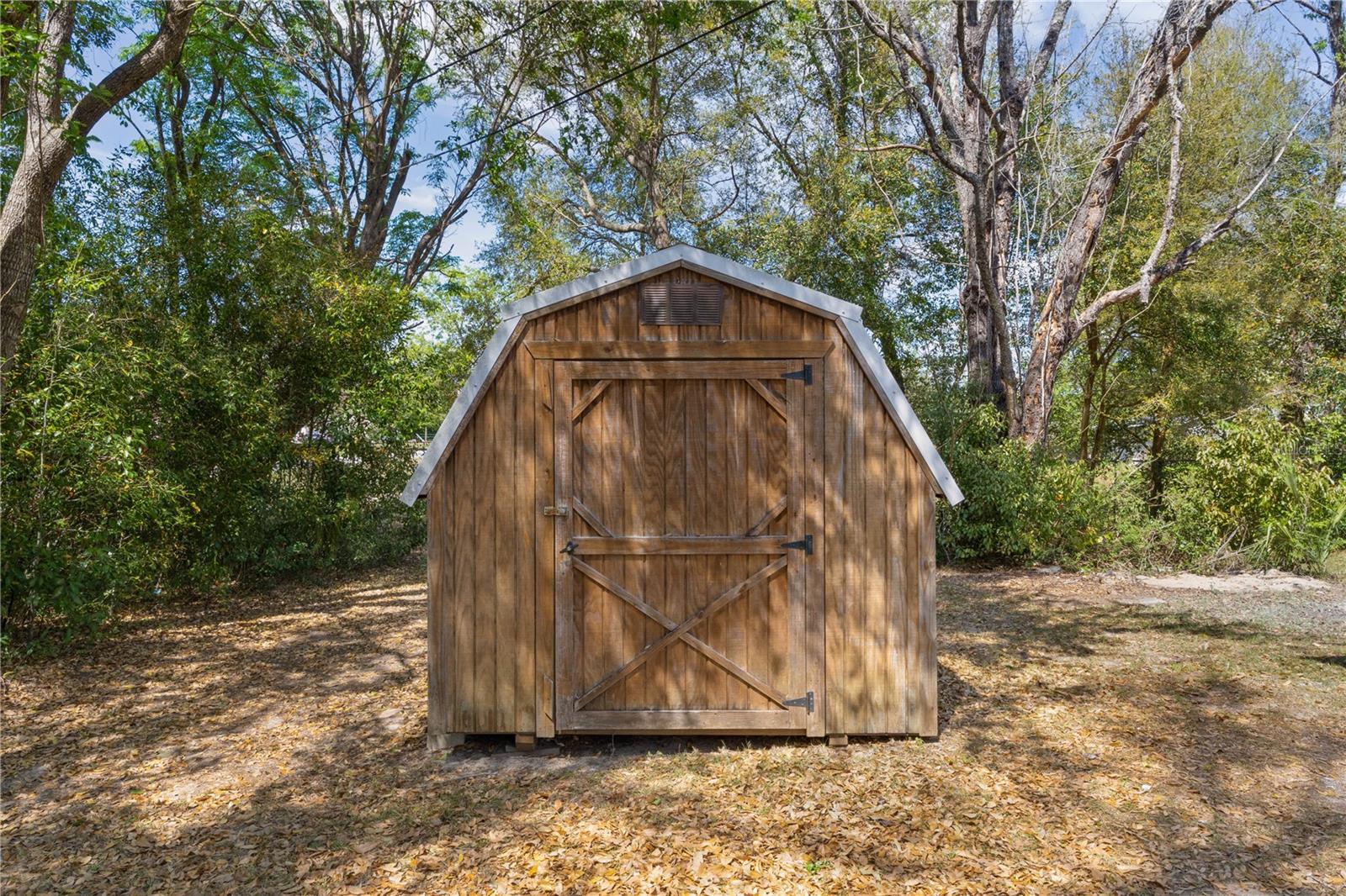 Fabulous 3 bedroom, 1 ½ bathroom block home nestled on a large corner homesite. Featuring a one car garage, private backyard with large shed. BRAND NEW ROOF 2/2025 and freshly painted exterior. Great primary home or investment property. This .30 acre (13,000 sq ft) sit in a nice neighborhood with NO HOA and no neighbors in the back (retention pond in back). Spacious living room just off the dining room that has easy access to the back yard through the French doors. The kitchen was updated a few years ago with wood-look tile floors, bead board cabinets, counter tops and matching back splash. Appliances included. Tile in the kitchen and vinyl floor throughout the rest of the house. The master bedroom has a half bath. Large laundry room with a BONUS office space with entrance or can be used for storage. All the windows have exterior mounts for the aluminum hurricane shutters. Partially fenced backyard. It is located near Lake Weir for fishing, boating, swimming and wildlife viewing.