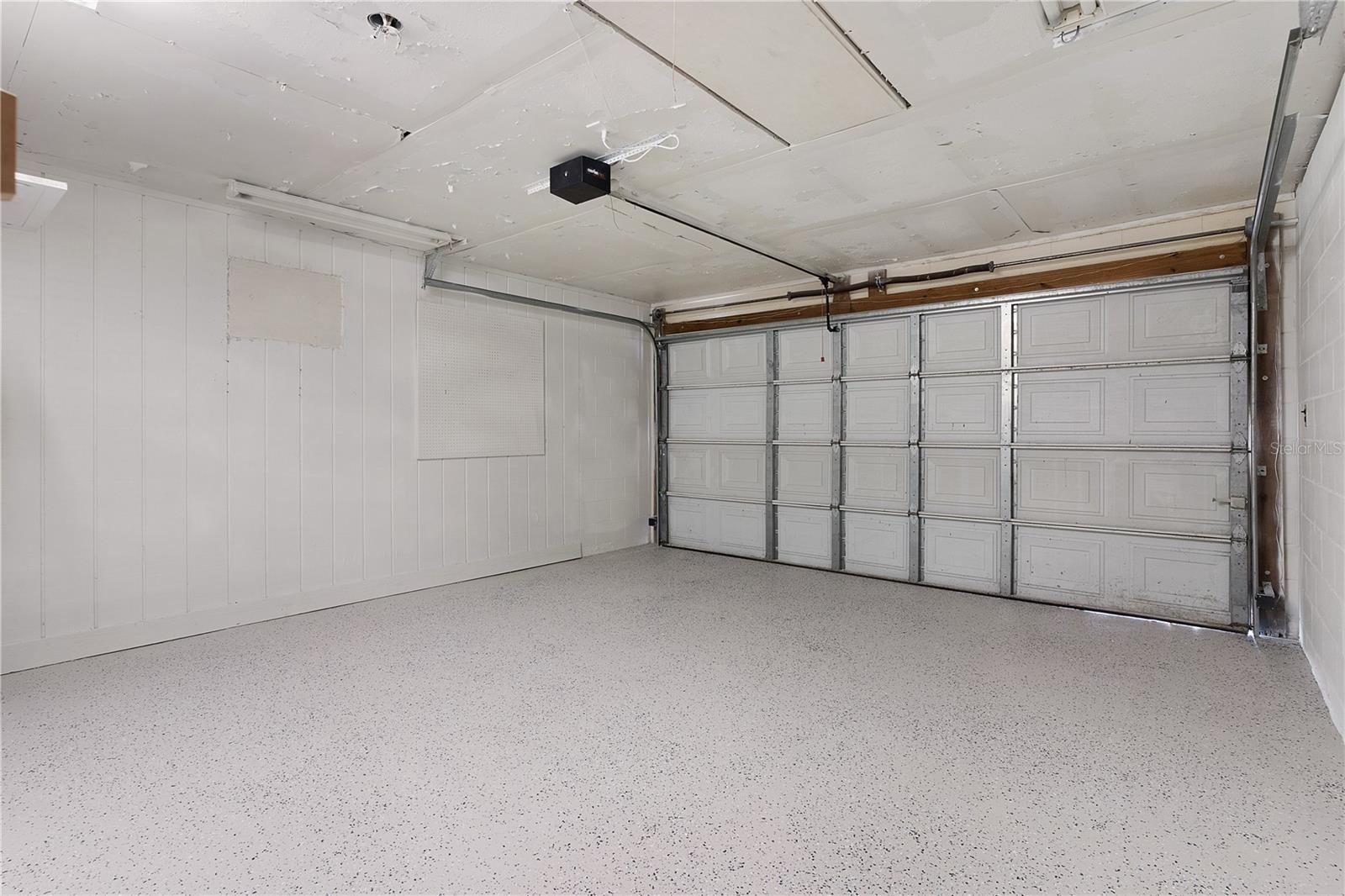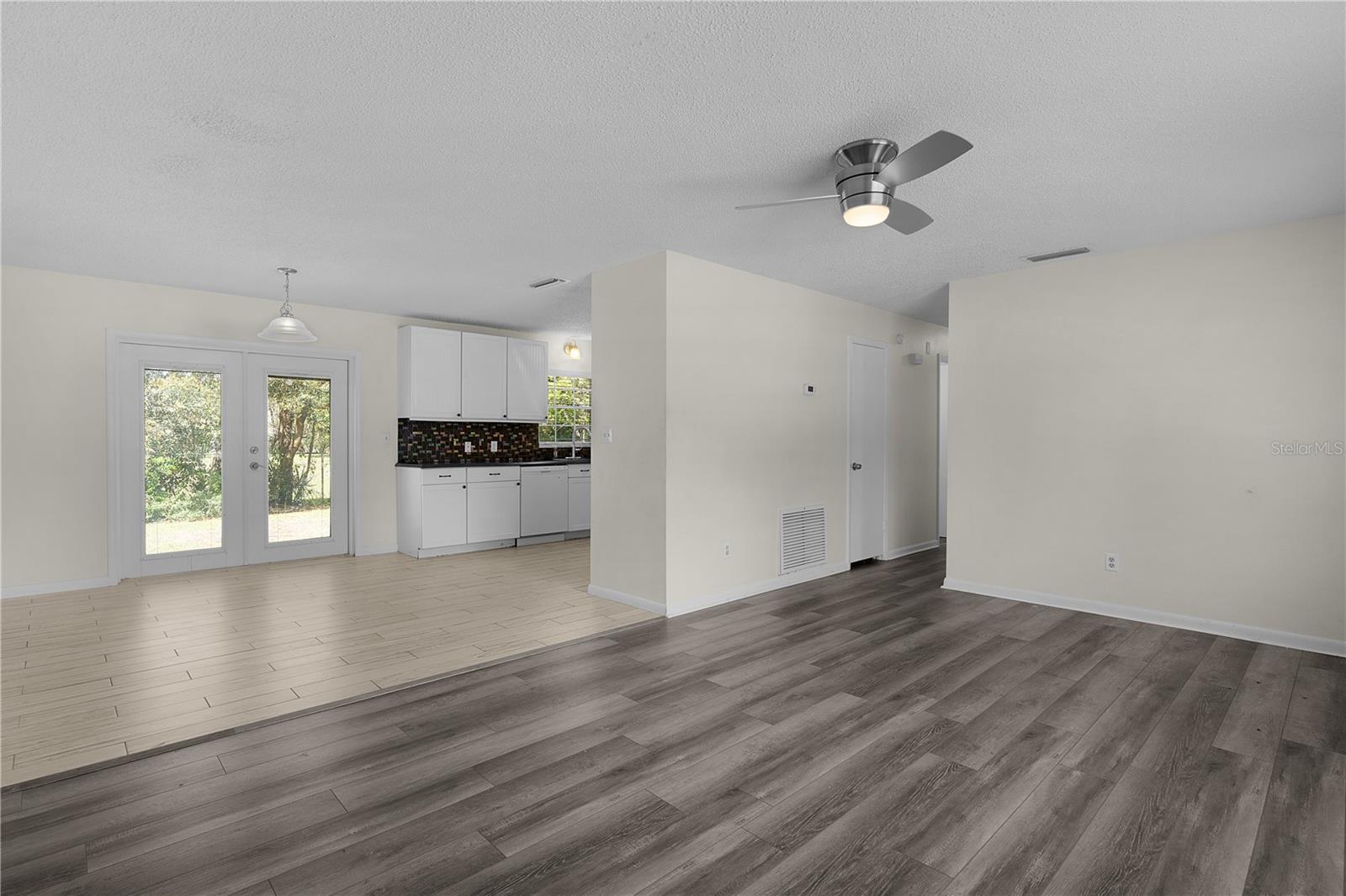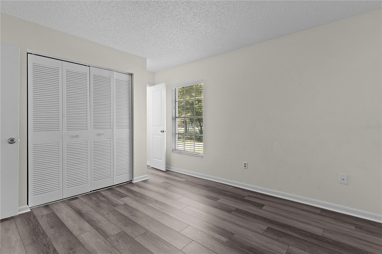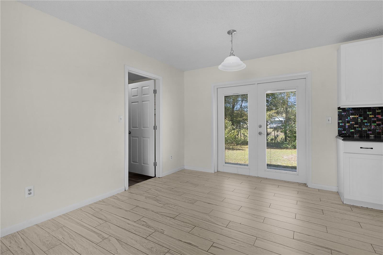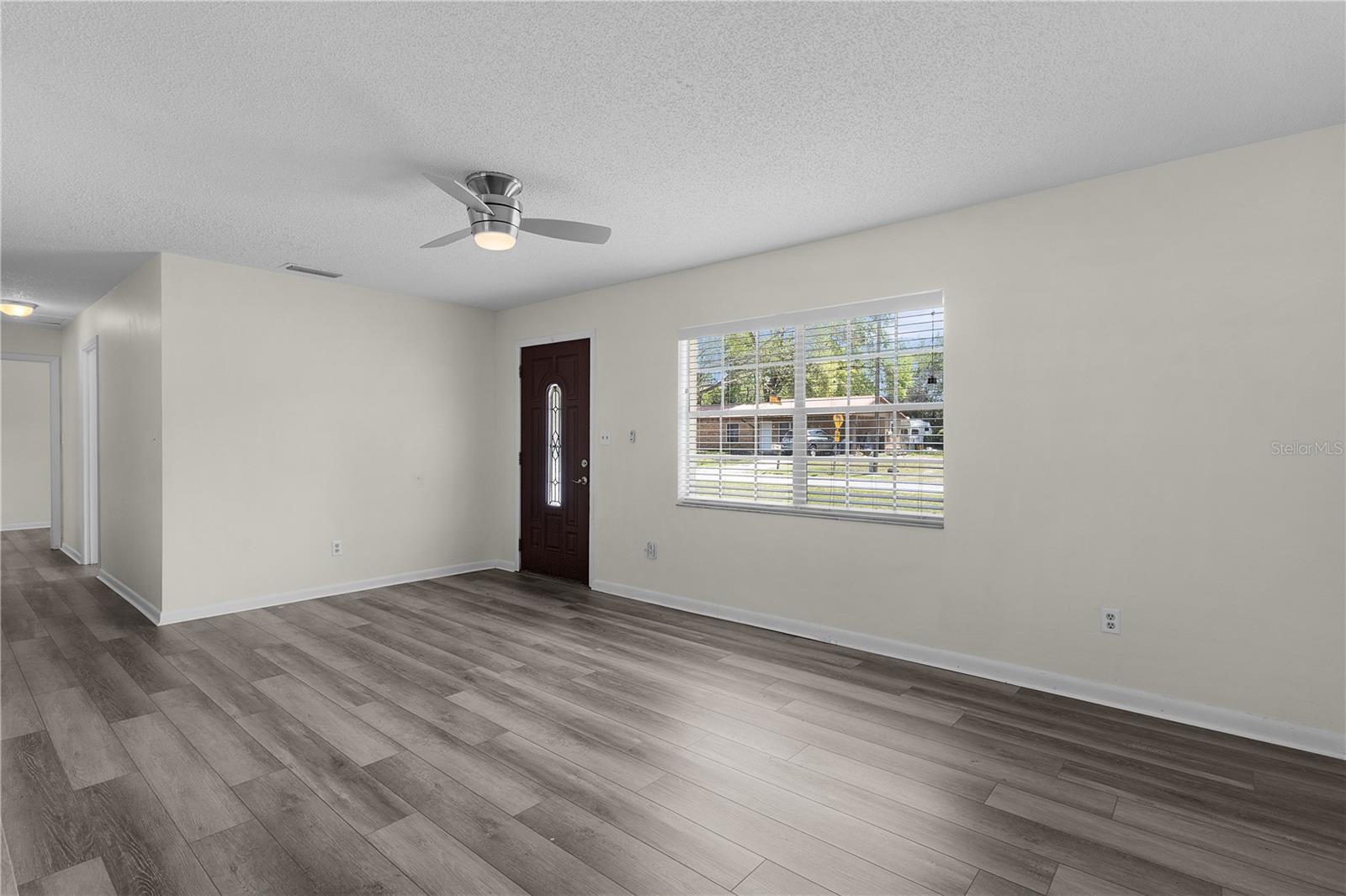 Fabulous 3 bedroom, 1 ½ bathroom block home nestled on a large corner homesite. Featuring a one car garage, private backyard with large shed. BRAND NEW ROOF 2/2025 and freshly painted exterior. Great primary home or investment property. This .30 acre (13,000 sq ft) sit in a nice neighborhood with NO HOA and no neighbors in the back (retention pond in back). Spacious living room just off the dining room that has easy access to the back yard through the French doors. The kitchen was updated a few years ago with wood-look tile floors, bead board cabinets, counter tops and matching back splash. Appliances included. Tile in the kitchen and vinyl floor throughout the rest of the house. The master bedroom has a half bath. Large laundry room with a BONUS office space with entrance or can be used for storage. All the windows have exterior mounts for the aluminum hurricane shutters. Partially fenced backyard. It is located near Lake Weir for fishing, boating, swimming and wildlife viewing.