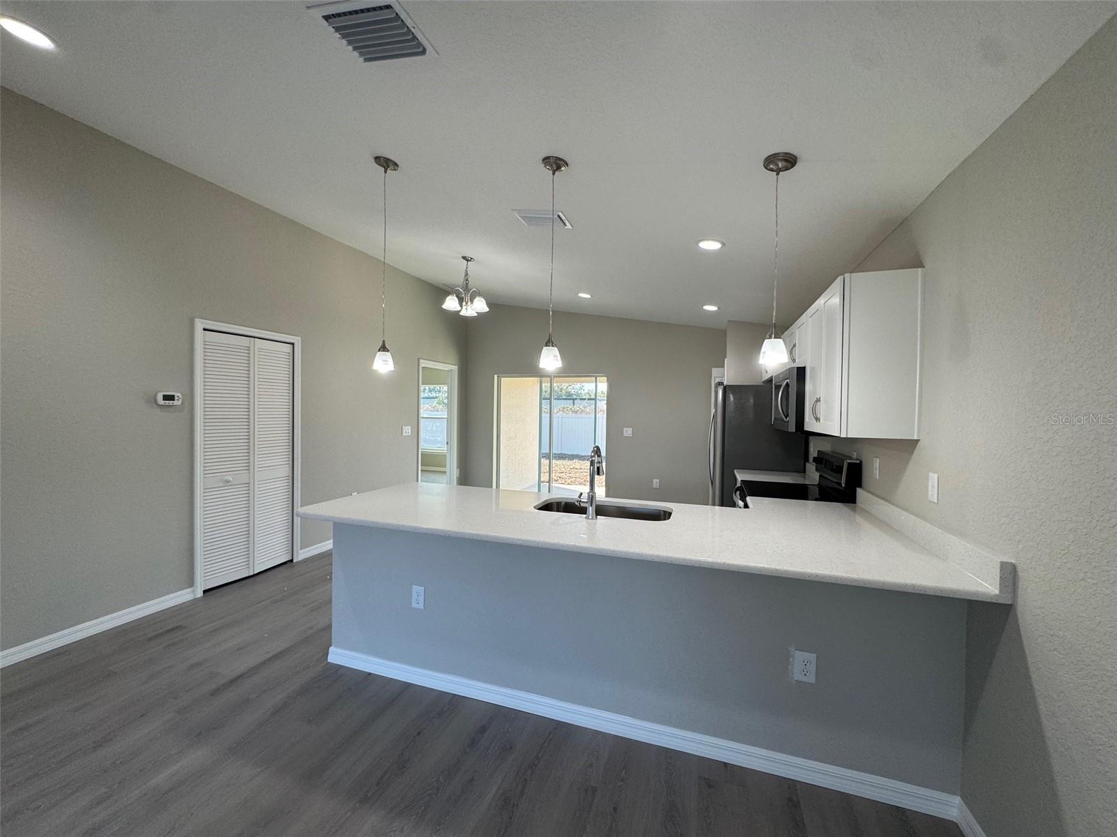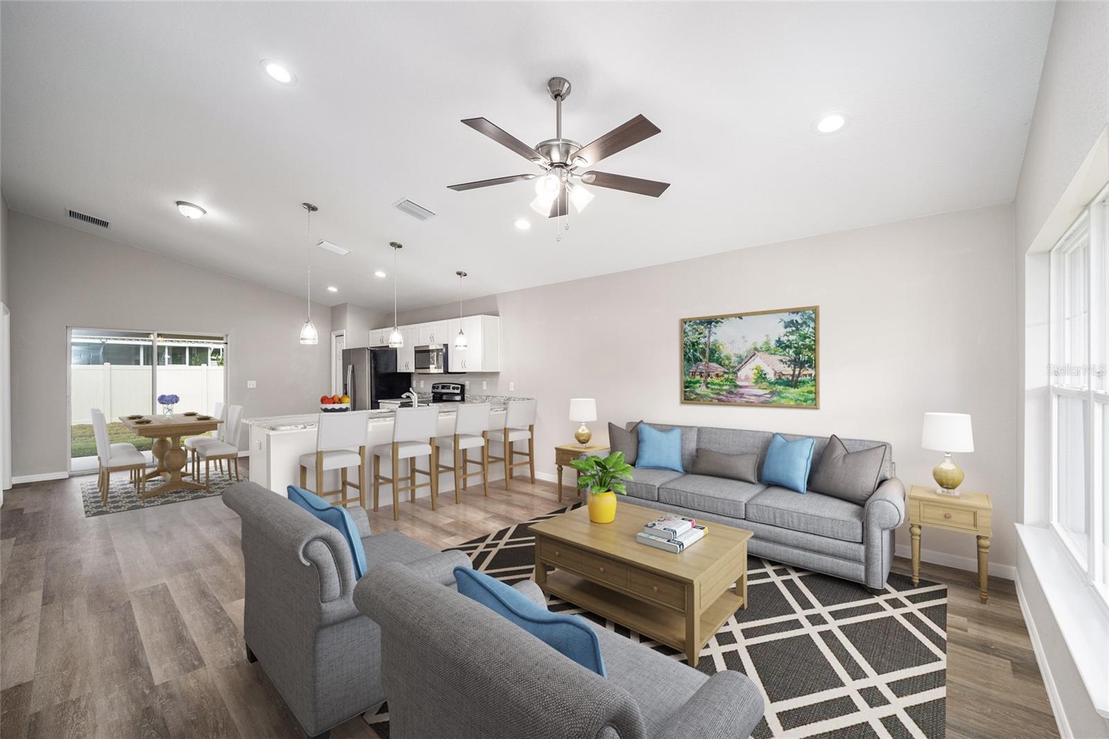 One or more photo(s) has been virtually staged. Beautiful new construction home in our brand new “Front Porch Community” located in Belleview, Florida! These Bungalow style homes are on city water and sewer lines. Luxury Plank Vinyl flooring throughout all living and common areas, tile in bathrooms, and carpet in the bedrooms. Open floor plan with dining area and eat-in kitchen, all done in neutral, pleasing colors. Patio laundry closet with W & D hook-ups. Walk-in closet in Master bedroom and vanity in master bath. Stainless steel appliance package in the kitchen. Cabinets are white shaker-style and light luxury granite countertops. Developers have installed a privacy fence along the exterior property lines of the neighborhood, giving the community a feeling of privacy and safety. This Kreb’s Corner Subdivision is located just minutes north of The Villages and in the heart of Belleview with new Publix shopping center, new Emergency Room Hospital, restaurants, parks, and riding trails. Construction is complete and home is move-in ready. Please see attached documents from Builder (Builders Contract Addendum & Warranty) Actual photos attached plus virtually staged model home photos for reference. ***Inquire about our preferred lender deals! Builder offering to contribute to buyer’s closing costs or help with rate buy downs! We can be flexible to help our buyers get into a beautiful home! ***