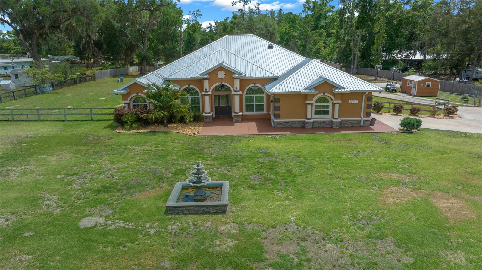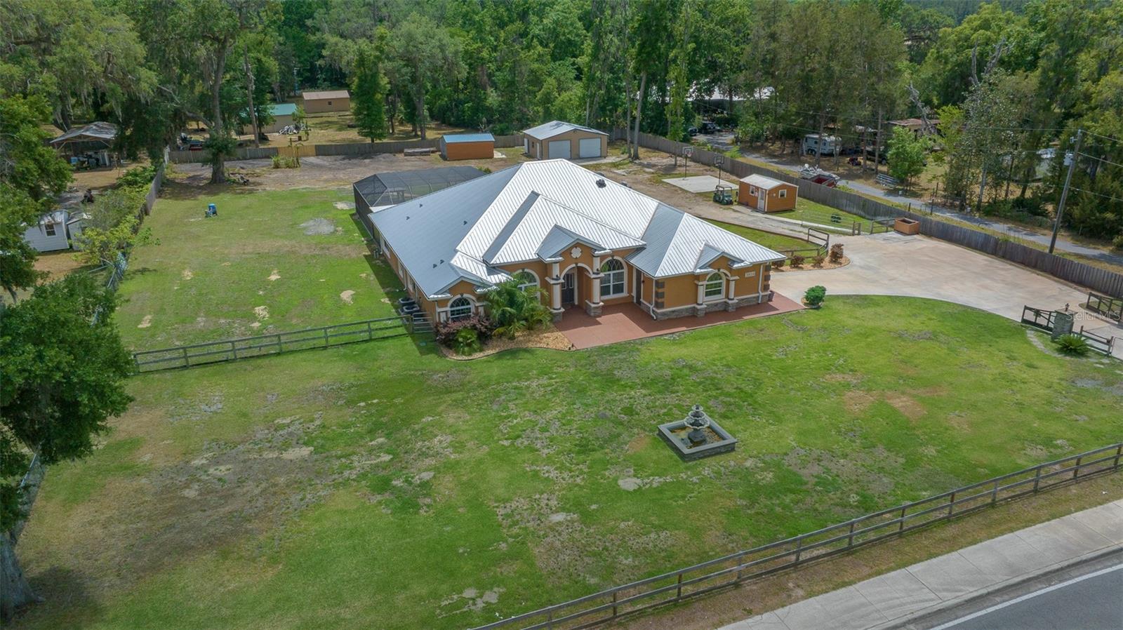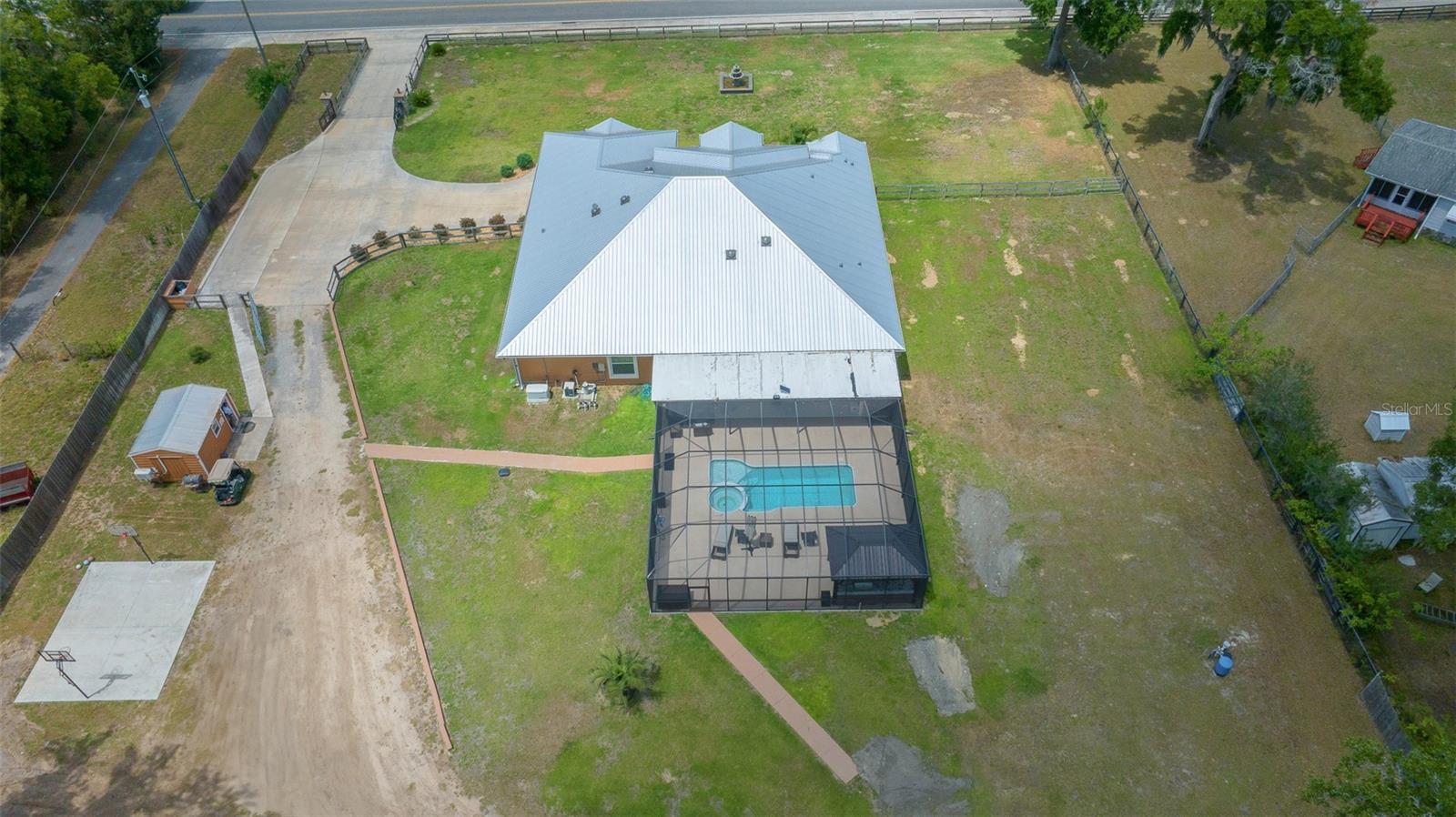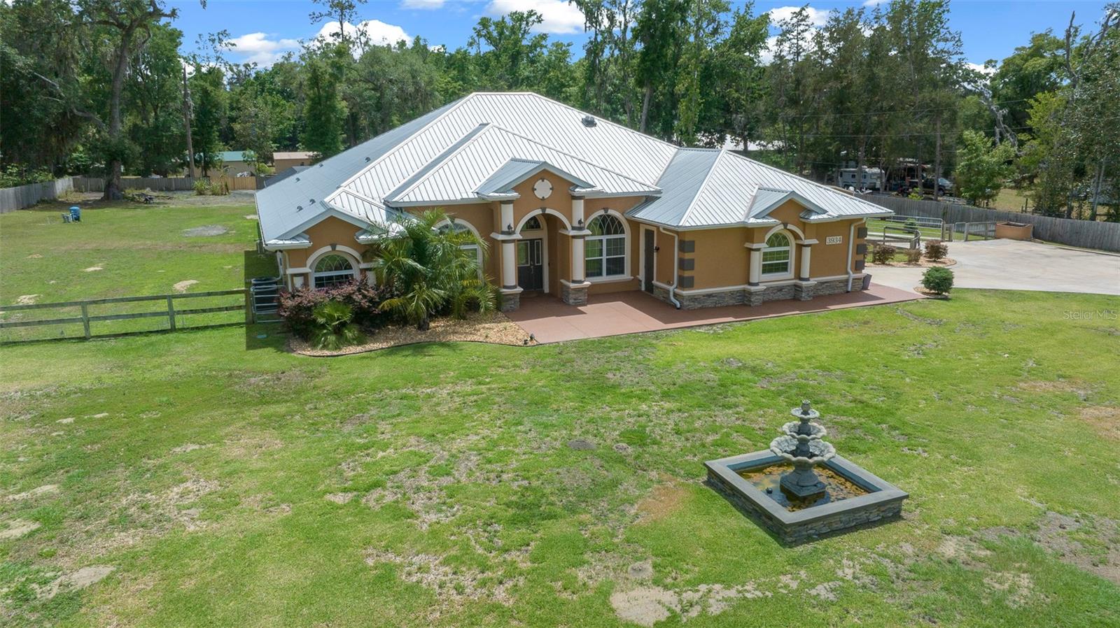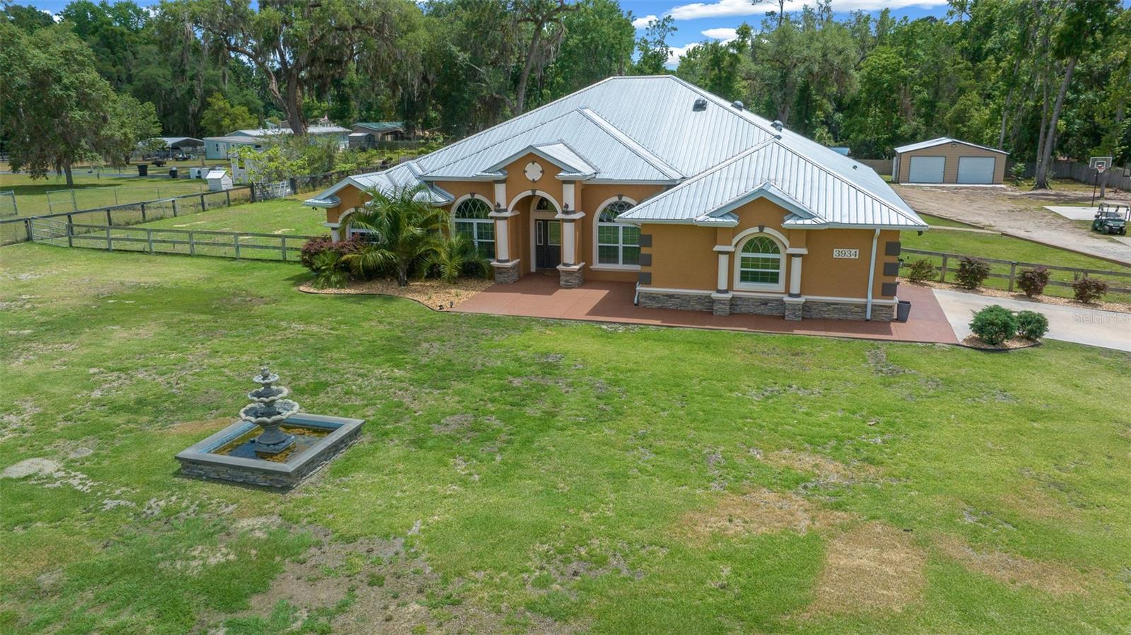 Experience luxury living in your new custom 5-bedroom estate set on 1.5 acres of private land. Over 3,849 square feet of beautifully designed living space, this 2021-built home offers elegance and functionality at every turn. The ceilings soar up 10 to 15 feet throughout this pristine home and is packed with luxury finishes, from the designer garage door to the gourmet kitchen and coffered ceiling in the family room. Enjoy the resort-style backyard, complete with a hot tub, in-ground heated pool under a grand screened birdcage enclosure and a fully equipped outdoor bathroom, kitchen, perfect for entertaining. Also includes a bonus detached, climate-controlled 12 x 16 office or in-law suite, plus a whole-house GENERAC generator, and a galvanized metal roof ensure comfort and security year-round. Bonus features include the home gym, basketball court, water softener, a garden, a fountain, gated entrance with plenty of parking space, plus an oversized detached 26 x 30 barn/garage and a carport. This is luxury, redefined! Schedule your private tour today!