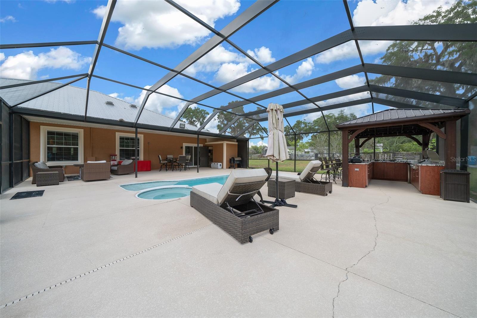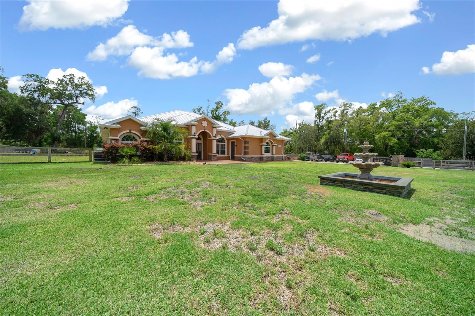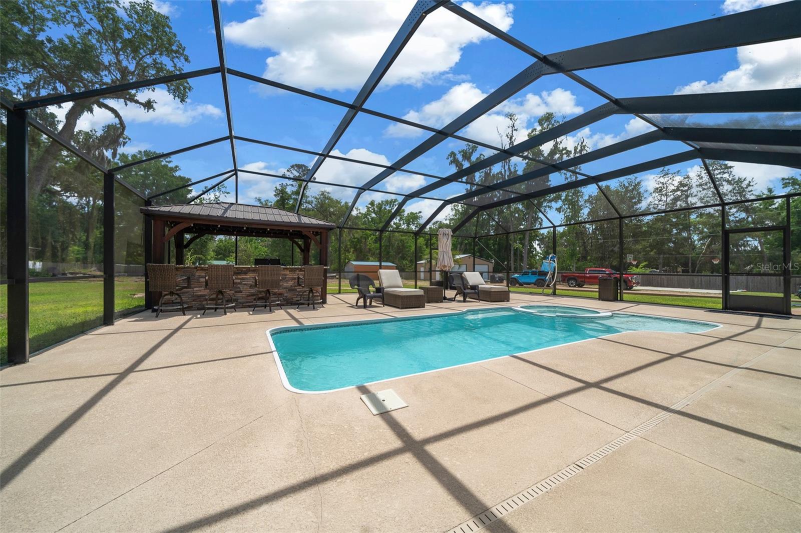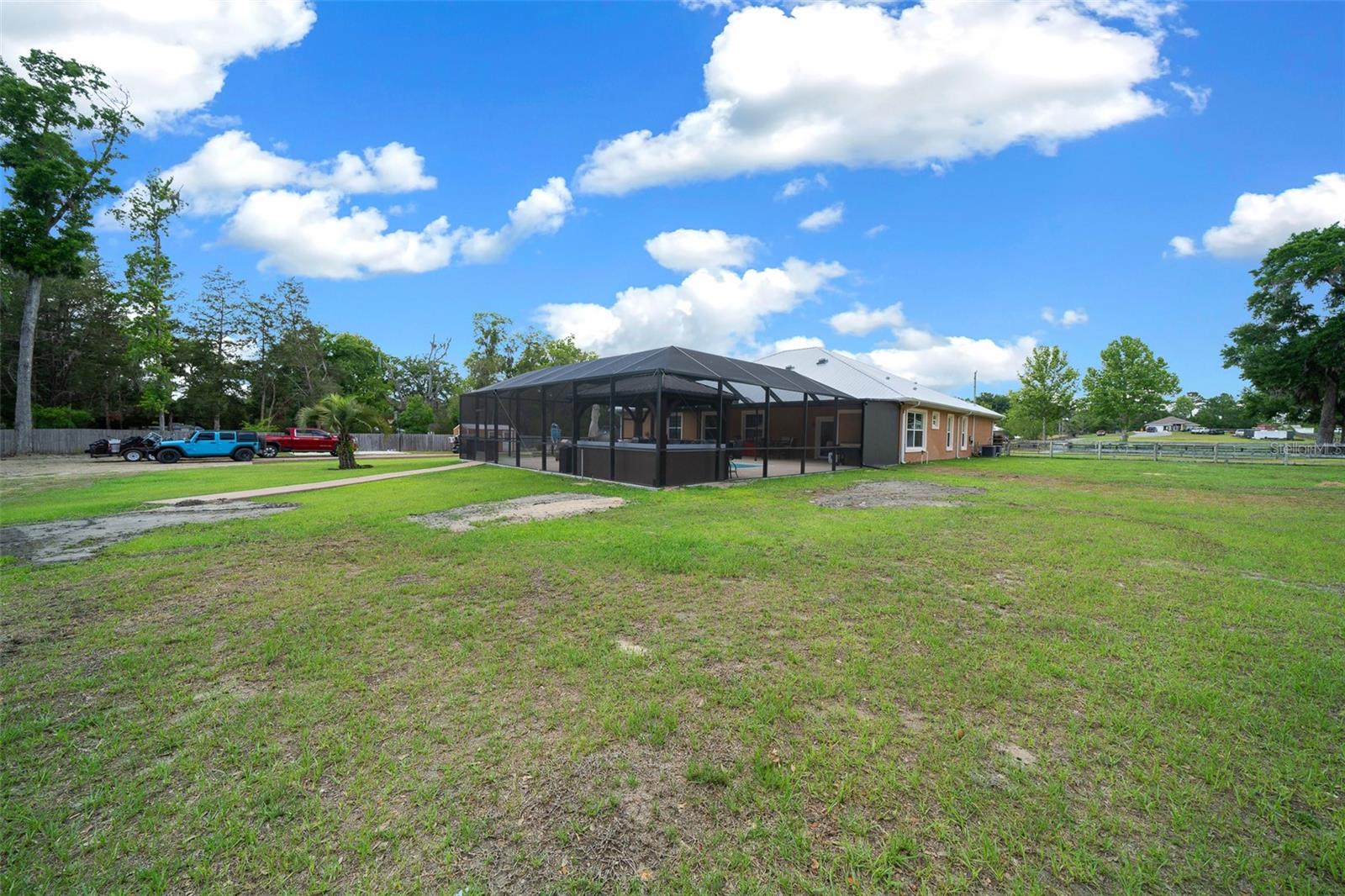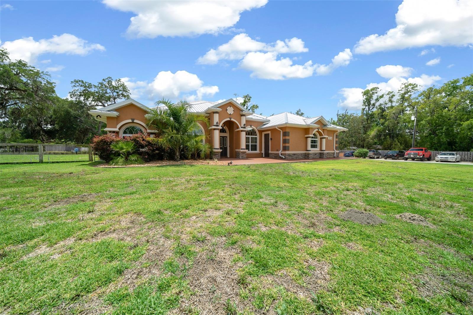 Experience luxury living in your new custom 5-bedroom estate set on 1.5 acres of private land. Over 3,849 square feet of beautifully designed living space, this 2021-built home offers elegance and functionality at every turn. The ceilings soar up 10 to 15 feet throughout this pristine home and is packed with luxury finishes, from the designer garage door to the gourmet kitchen and coffered ceiling in the family room. Enjoy the resort-style backyard, complete with a hot tub, in-ground heated pool under a grand screened birdcage enclosure and a fully equipped outdoor bathroom, kitchen, perfect for entertaining. Also includes a bonus detached, climate-controlled 12 x 16 office or in-law suite, plus a whole-house GENERAC generator, and a galvanized metal roof ensure comfort and security year-round. Bonus features include the home gym, basketball court, water softener, a garden, a fountain, gated entrance with plenty of parking space, plus an oversized detached 26 x 30 barn/garage and a carport. This is luxury, redefined! Schedule your private tour today!