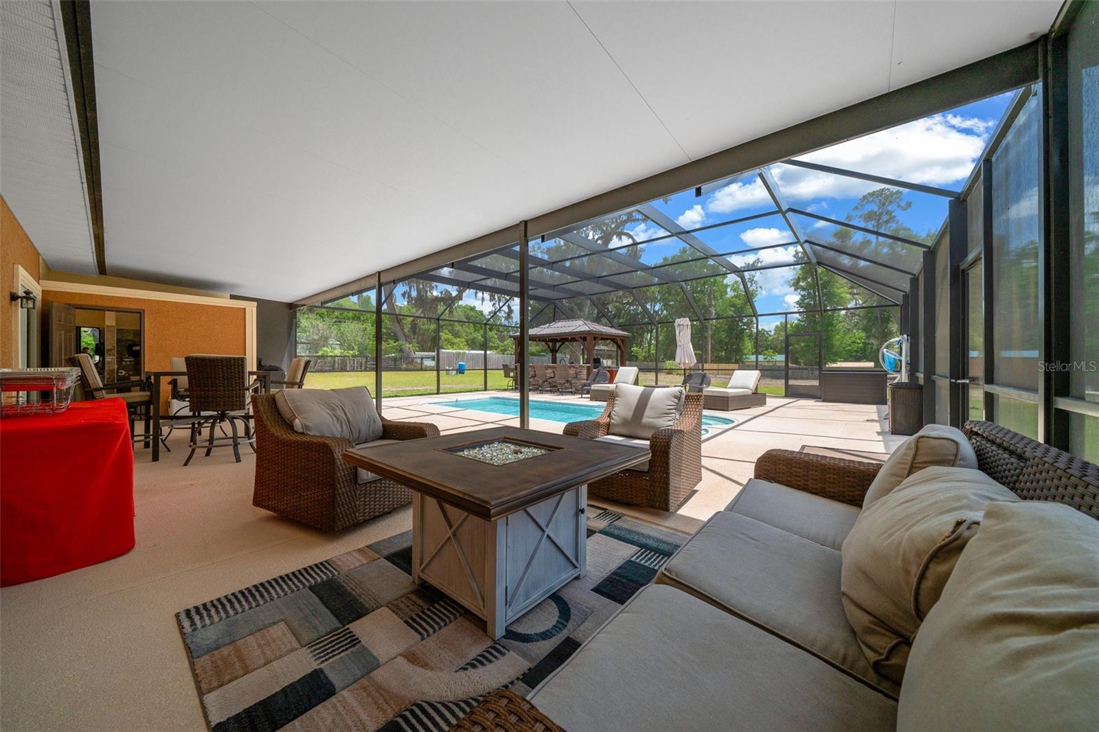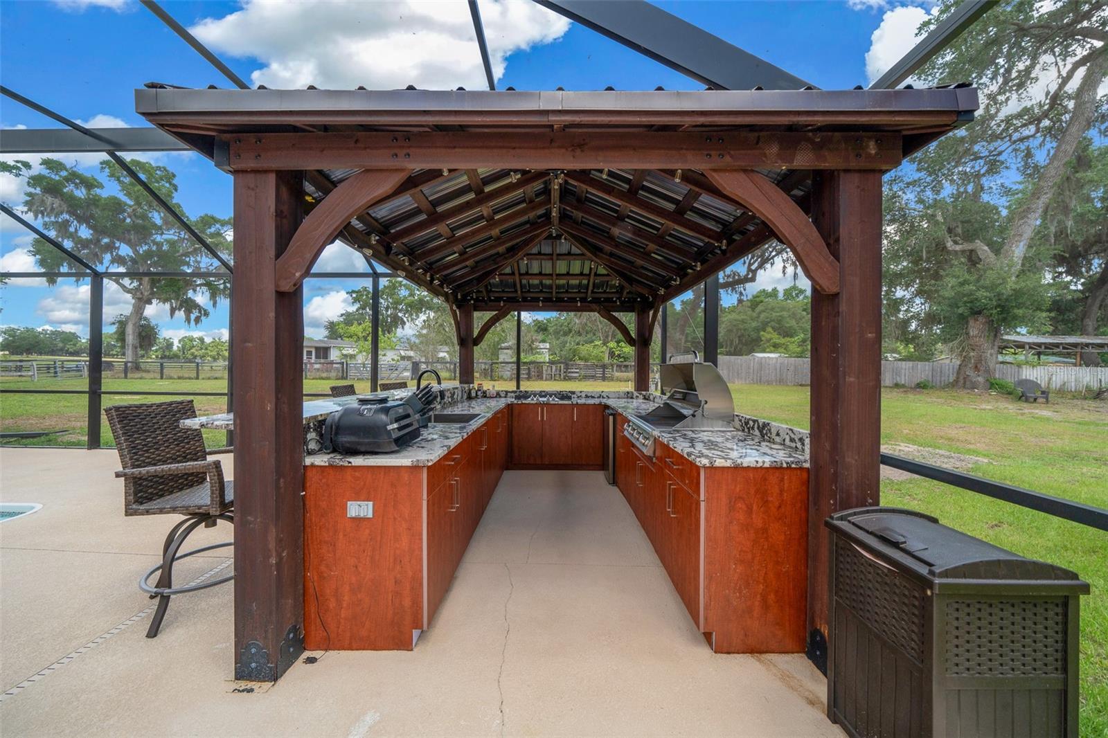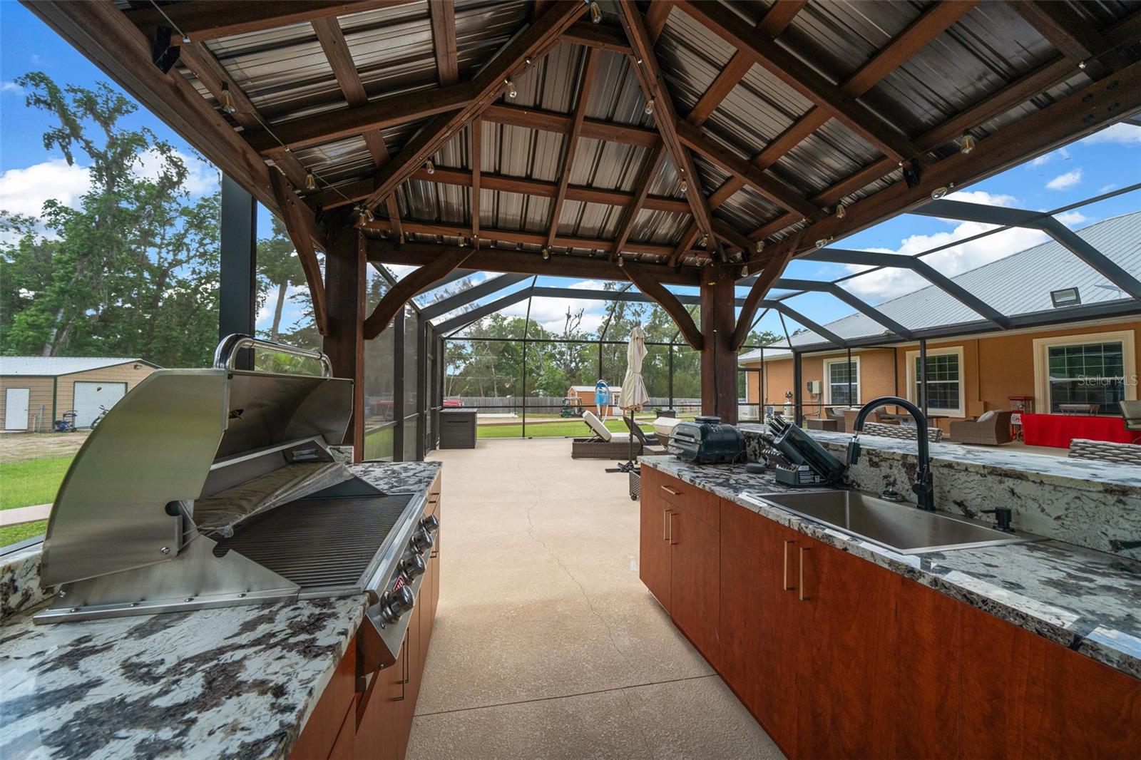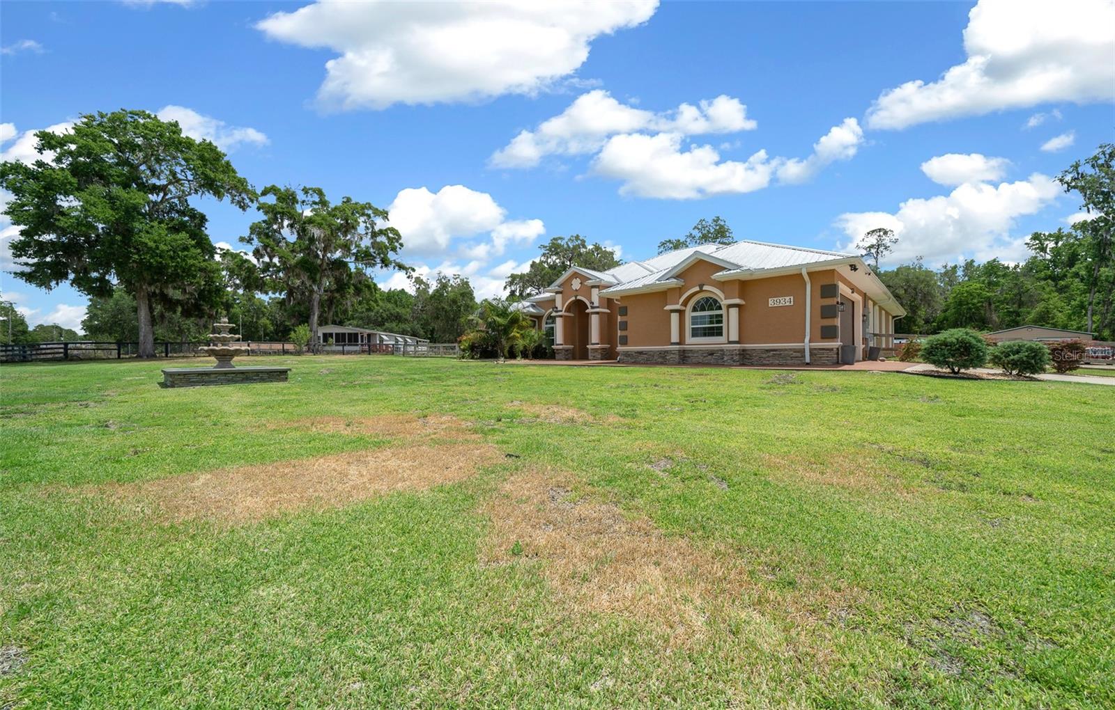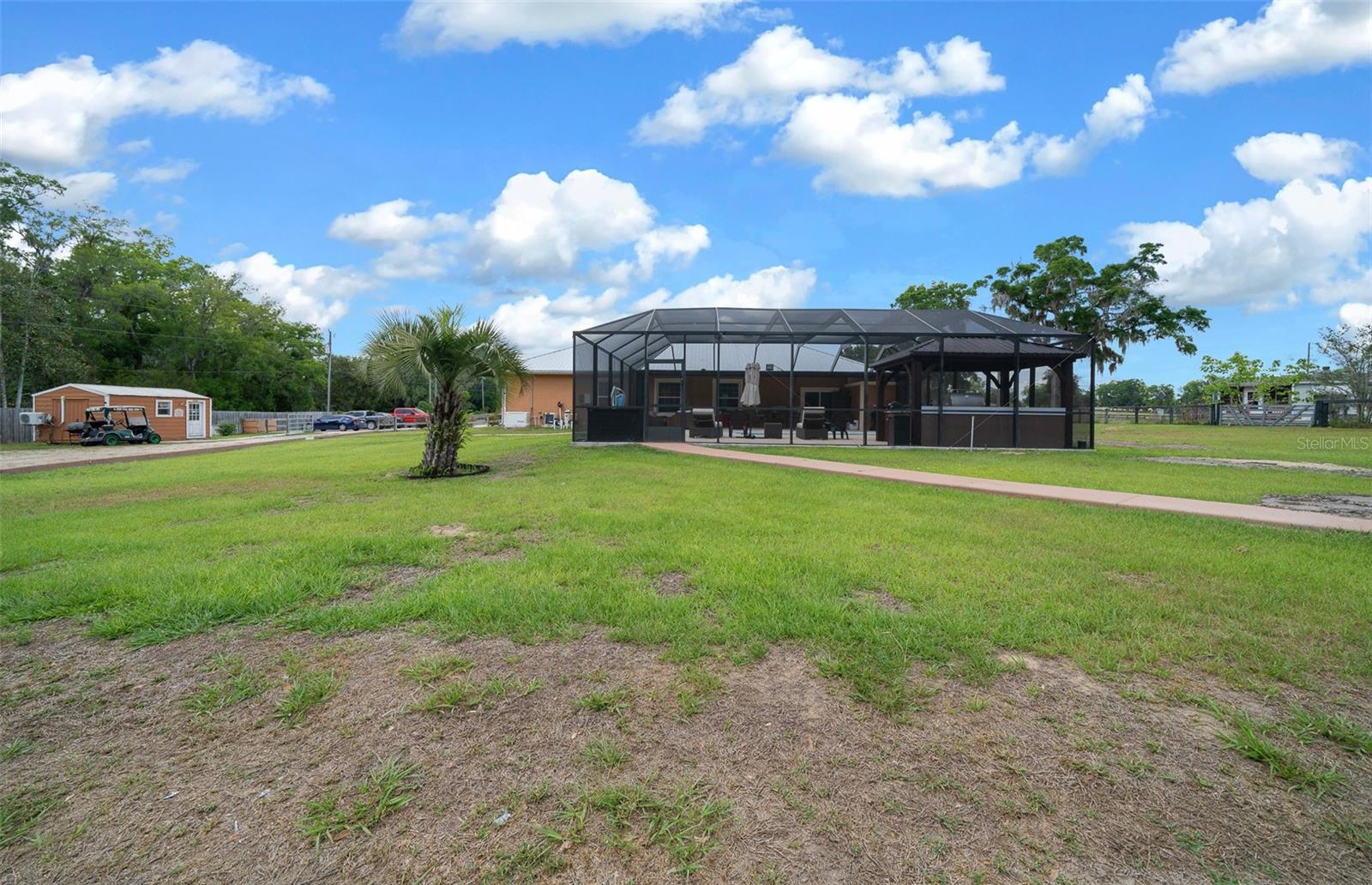 Experience luxury living in your new custom 5-bedroom estate set on 1.5 acres of private land. Over 3,849 square feet of beautifully designed living space, this 2021-built home offers elegance and functionality at every turn. The ceilings soar up 10 to 15 feet throughout this pristine home and is packed with luxury finishes, from the designer garage door to the gourmet kitchen and coffered ceiling in the family room. Enjoy the resort-style backyard, complete with a hot tub, in-ground heated pool under a grand screened birdcage enclosure and a fully equipped outdoor bathroom, kitchen, perfect for entertaining. Also includes a bonus detached, climate-controlled 12 x 16 office or in-law suite, plus a whole-house GENERAC generator, and a galvanized metal roof ensure comfort and security year-round. Bonus features include the home gym, basketball court, water softener, a garden, a fountain, gated entrance with plenty of parking space, plus an oversized detached 26 x 30 barn/garage and a carport. This is luxury, redefined! Schedule your private tour today!