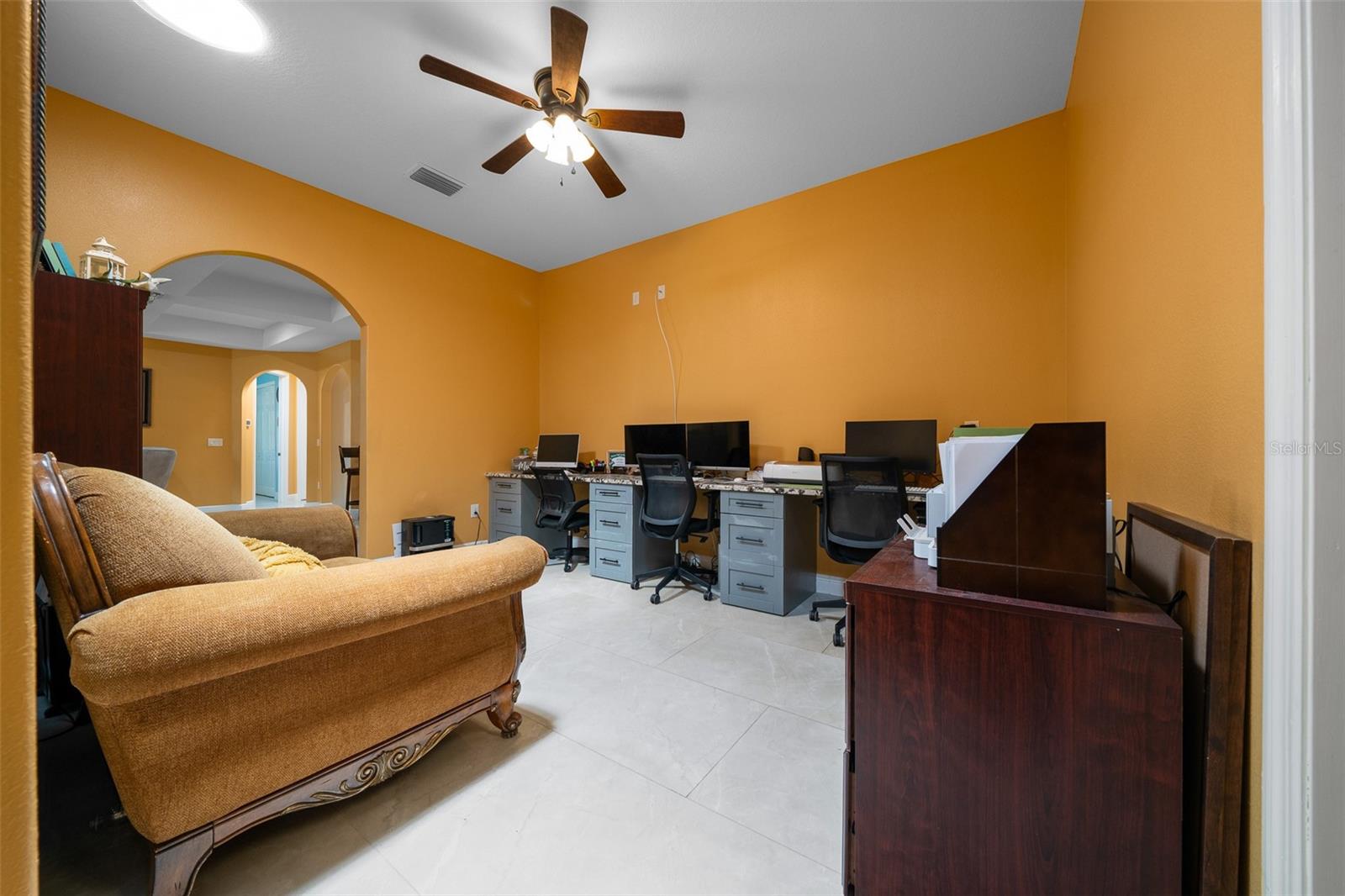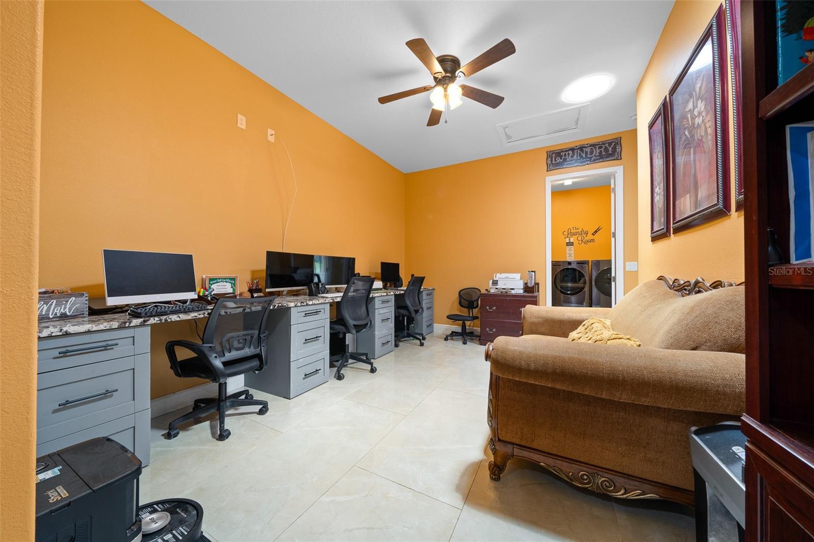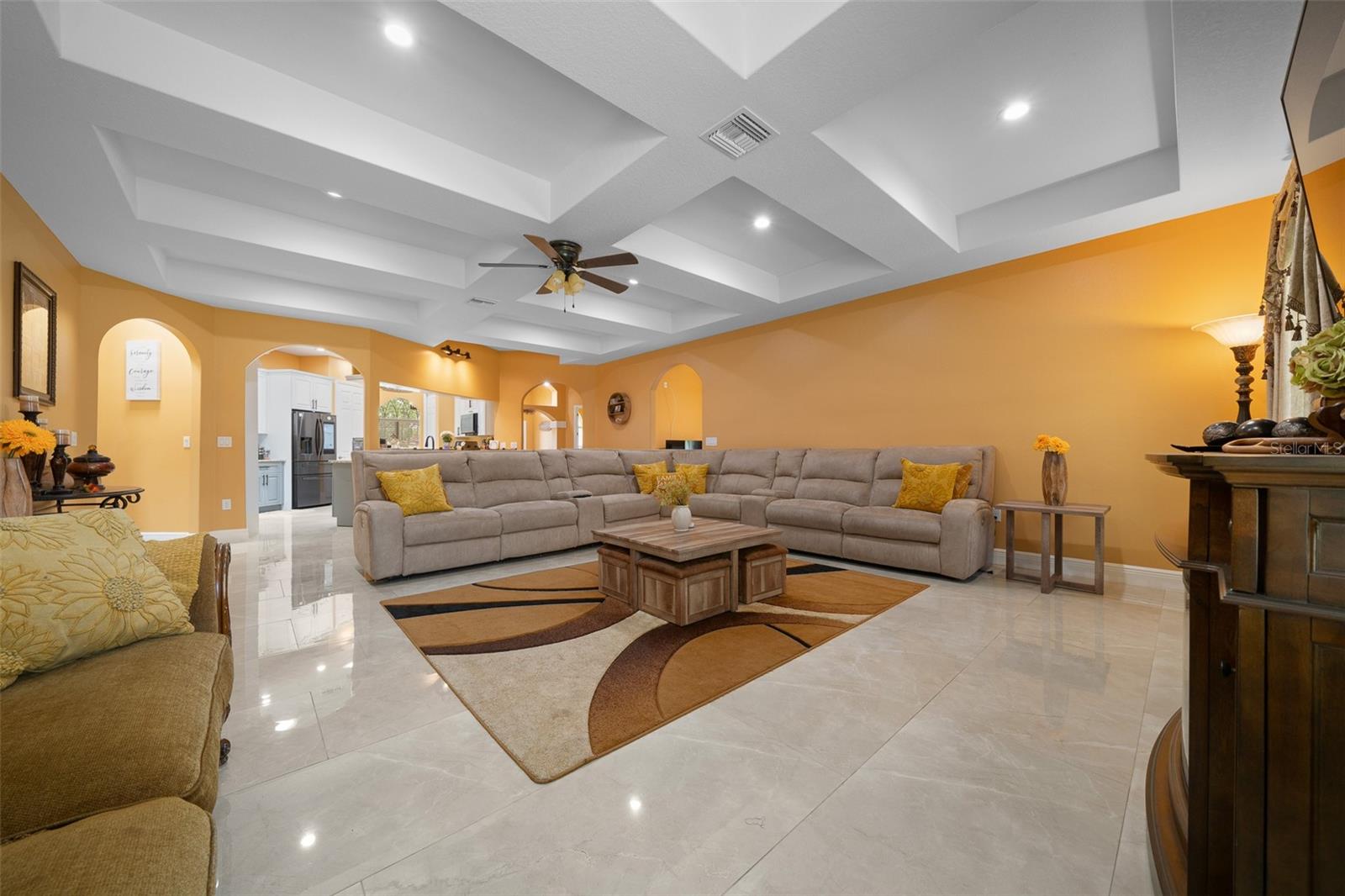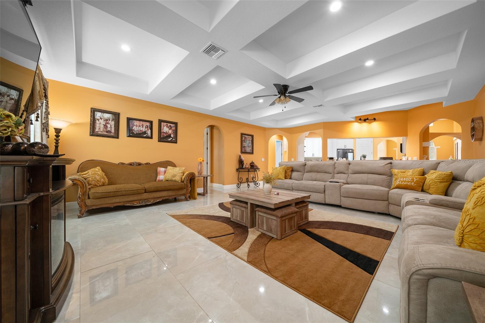 Experience luxury living in your new custom 5-bedroom estate set on 1.5 acres of private land. Over 3,849 square feet of beautifully designed living space, this 2021-built home offers elegance and functionality at every turn. The ceilings soar up 10 to 15 feet throughout this pristine home and is packed with luxury finishes, from the designer garage door to the gourmet kitchen and coffered ceiling in the family room. Enjoy the resort-style backyard, complete with a hot tub, in-ground heated pool under a grand screened birdcage enclosure and a fully equipped outdoor bathroom, kitchen, perfect for entertaining. Also includes a bonus detached, climate-controlled 12 x 16 office or in-law suite, plus a whole-house GENERAC generator, and a galvanized metal roof ensure comfort and security year-round. Bonus features include the home gym, basketball court, water softener, a garden, a fountain, gated entrance with plenty of parking space, plus an oversized detached 26 x 30 barn/garage and a carport. This is luxury, redefined! Schedule your private tour today!