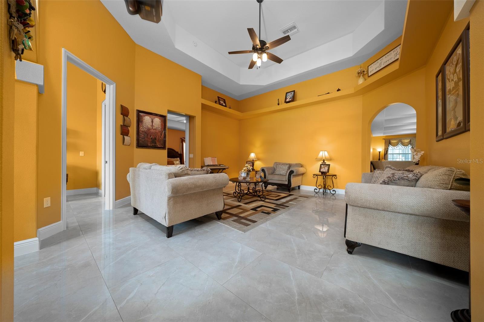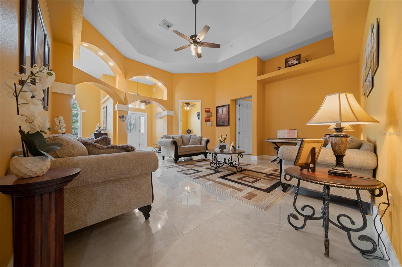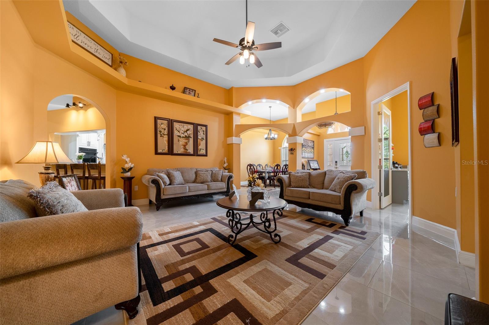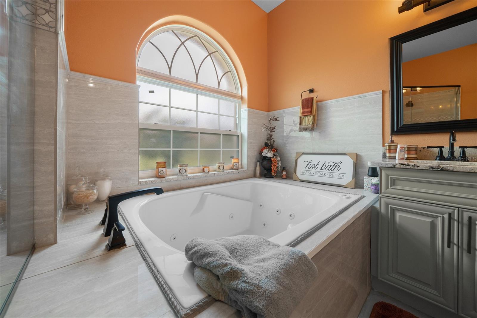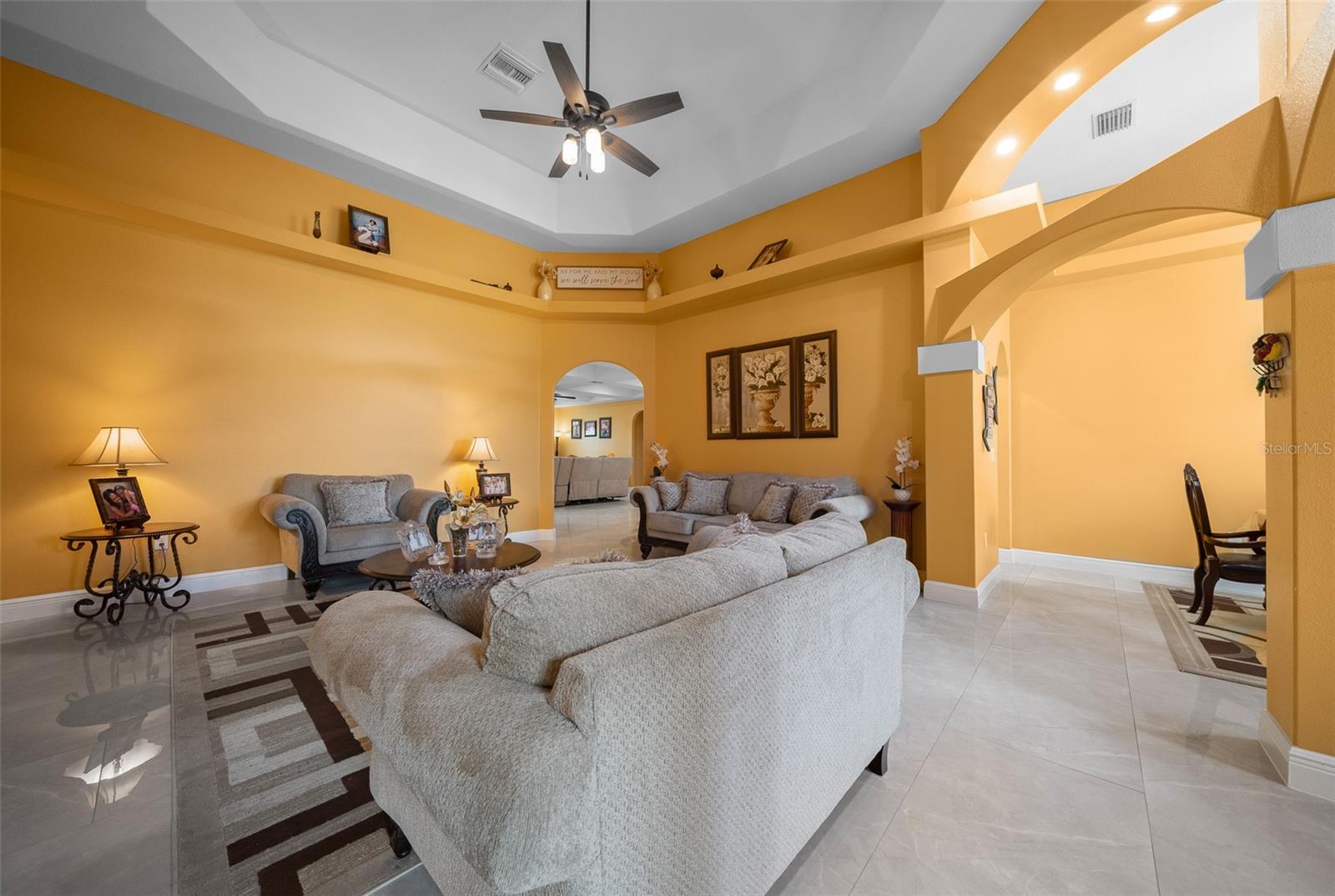 Experience luxury living in your new custom 5-bedroom estate set on 1.5 acres of private land. Over 3,849 square feet of beautifully designed living space, this 2021-built home offers elegance and functionality at every turn. The ceilings soar up 10 to 15 feet throughout this pristine home and is packed with luxury finishes, from the designer garage door to the gourmet kitchen and coffered ceiling in the family room. Enjoy the resort-style backyard, complete with a hot tub, in-ground heated pool under a grand screened birdcage enclosure and a fully equipped outdoor bathroom, kitchen, perfect for entertaining. Also includes a bonus detached, climate-controlled 12 x 16 office or in-law suite, plus a whole-house GENERAC generator, and a galvanized metal roof ensure comfort and security year-round. Bonus features include the home gym, basketball court, water softener, a garden, a fountain, gated entrance with plenty of parking space, plus an oversized detached 26 x 30 barn/garage and a carport. This is luxury, redefined! Schedule your private tour today!