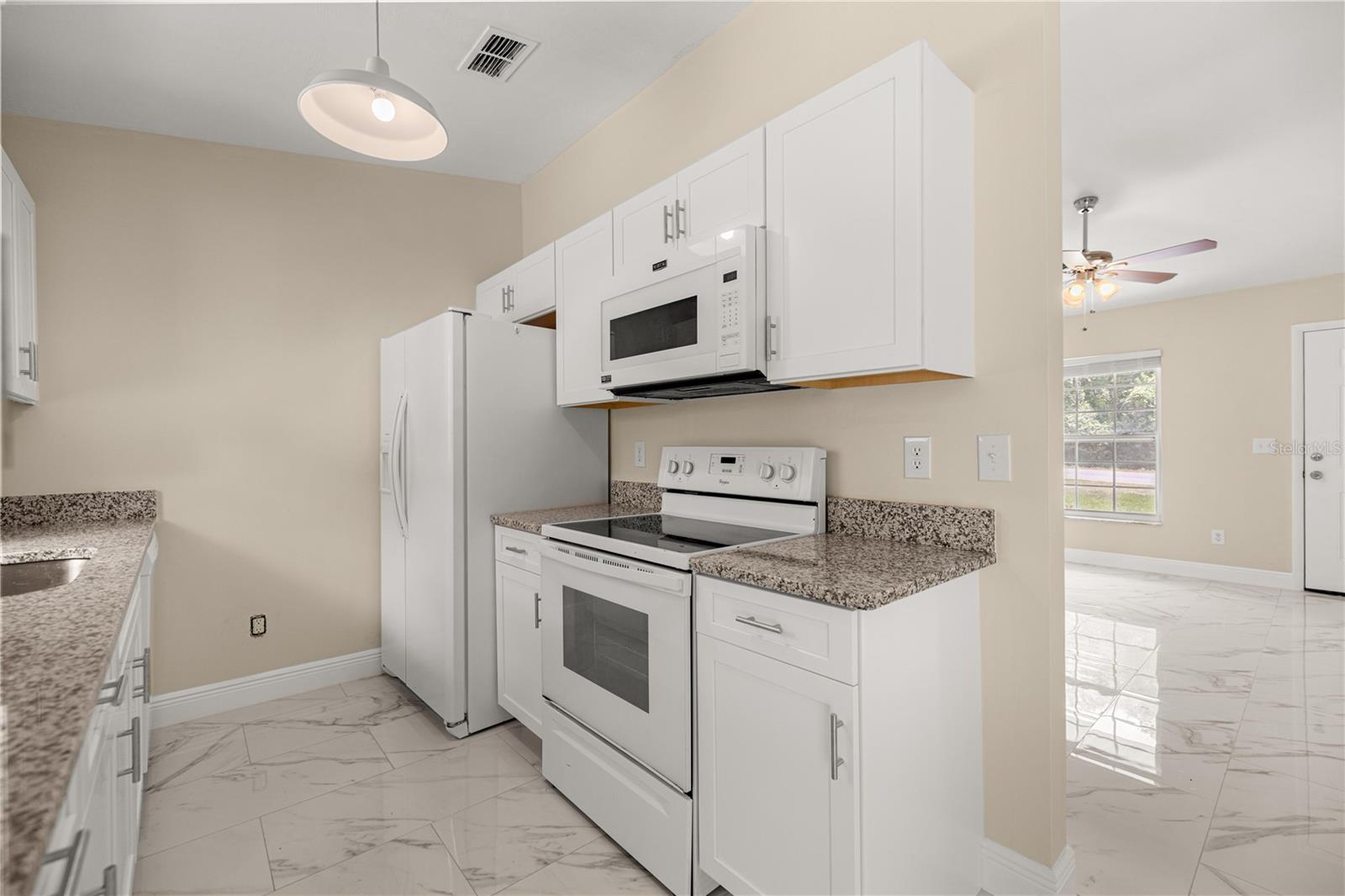 Move-in ready 3BR/2BA home in Belleview, just minutes from Lake Weir and Carney Island! This beautifully updated home features new tile flooring throughout, fresh neutral paint inside and out, a brand-new kitchen with granite countertops, and updated vanities in both bathrooms. Enjoy new interior and exterior doors, faux wood blinds, and a new patio roof. Plumbing upgrades include new faucets, toilets, water heater, and water softener. Major systems are in great shape with a roof replaced in 2023 and AC in 2021. Repaired fencing, a storage shed, and USDA eligibility make this home a standout! Schedule your tour today, to call this Home Sweet Home!