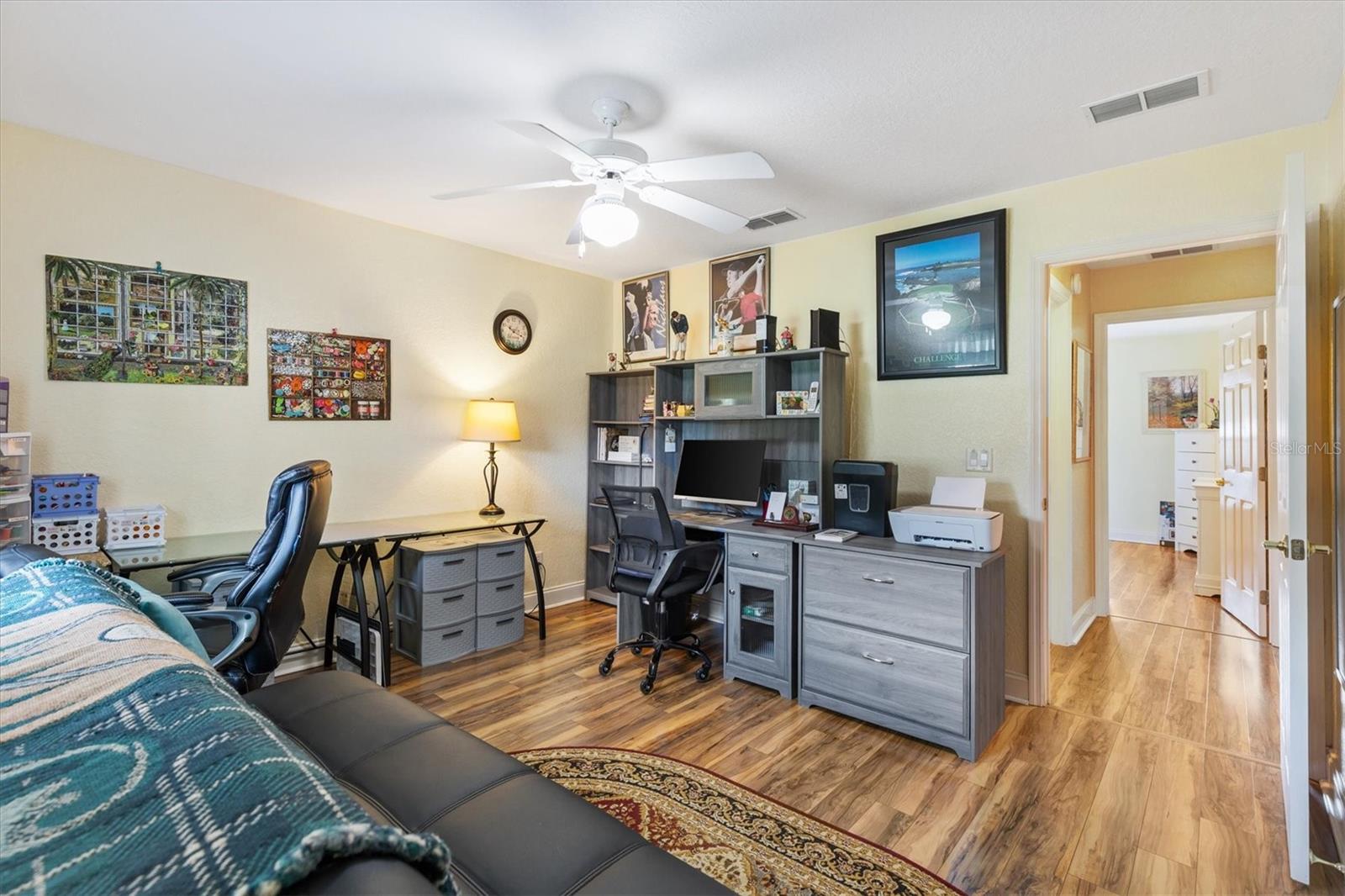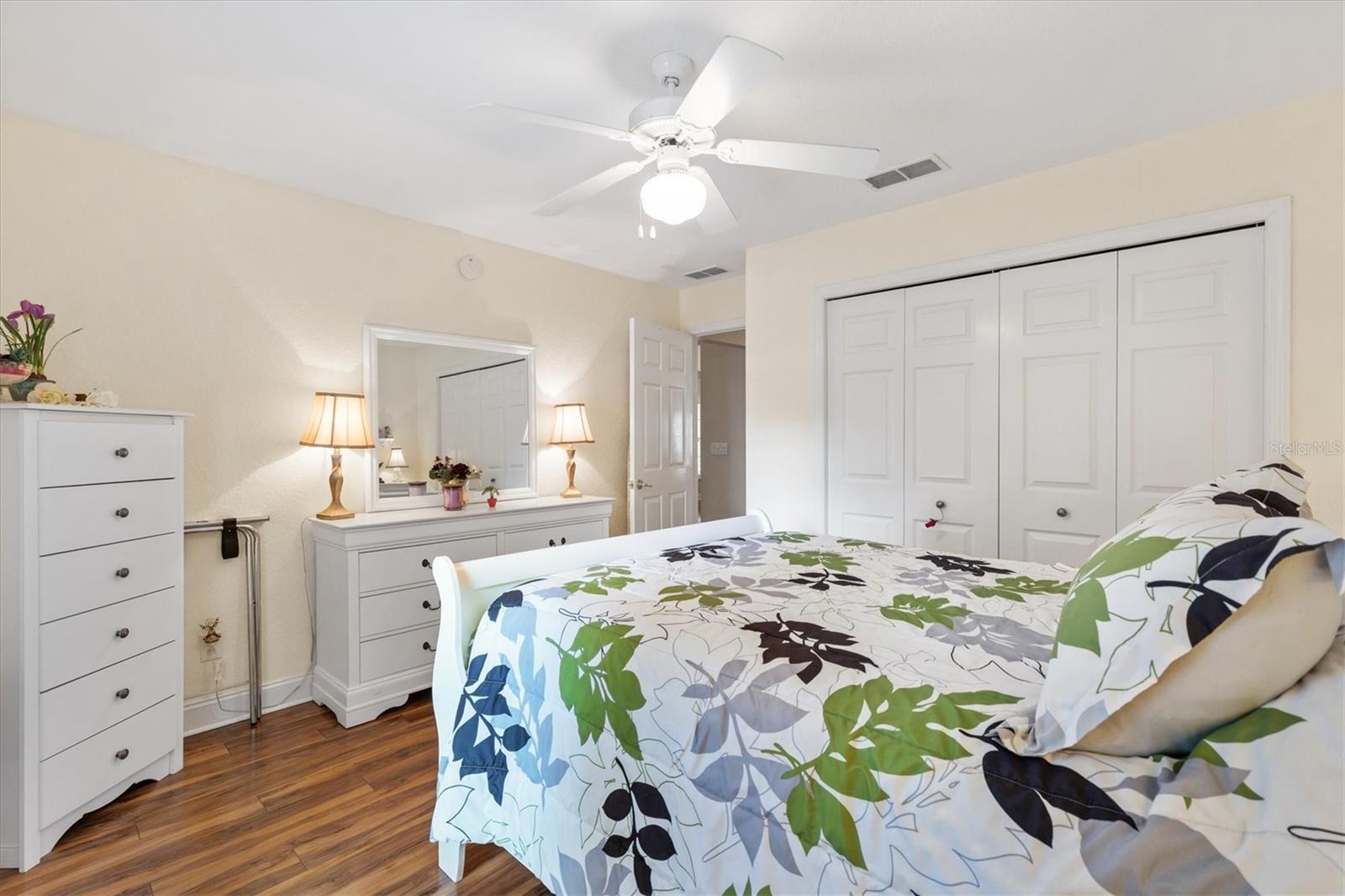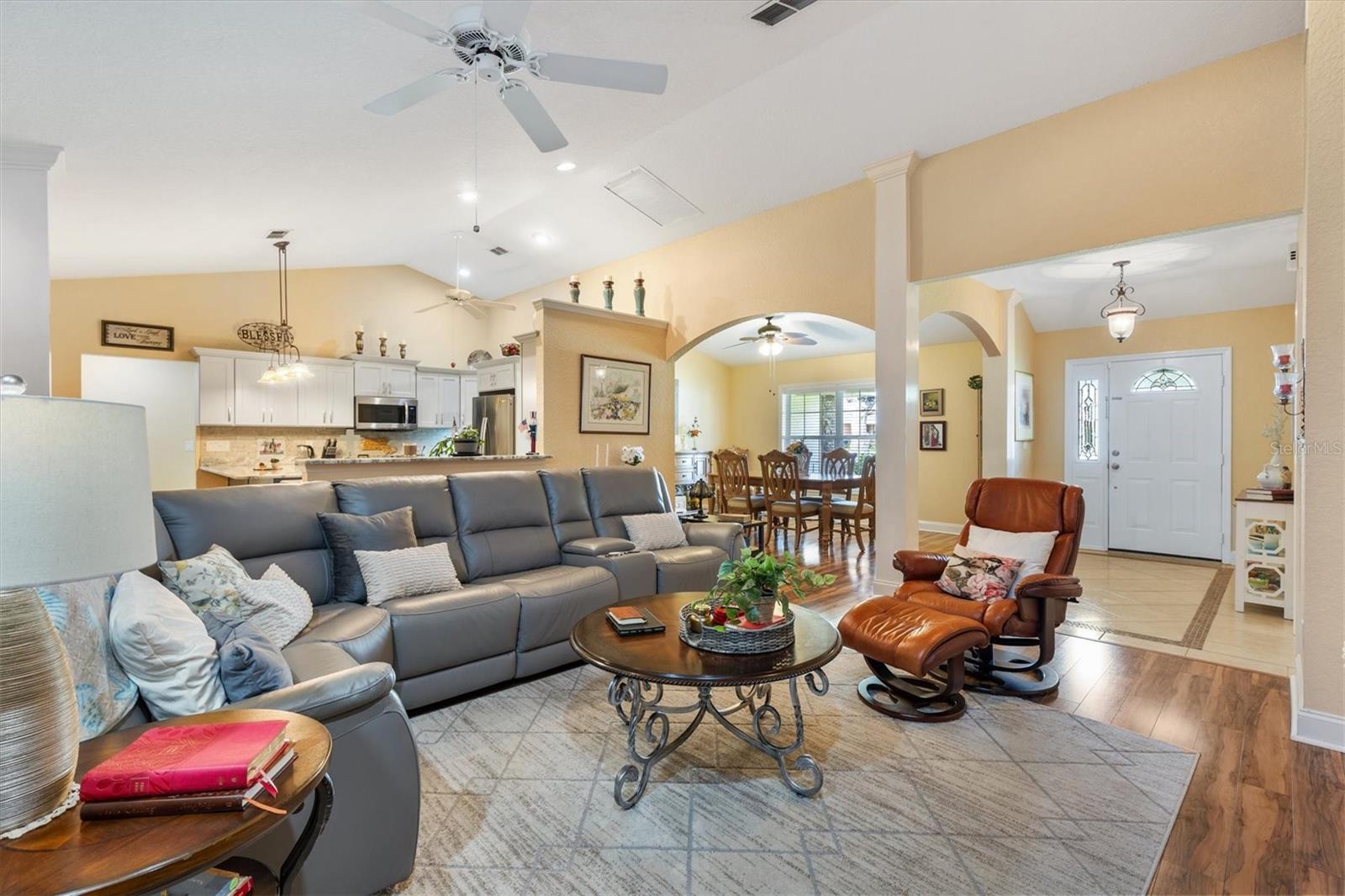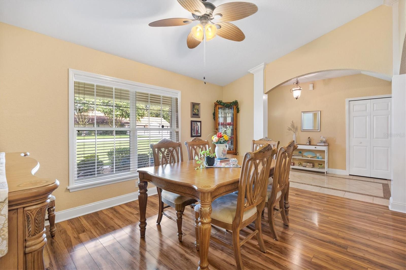 Your Private Paradise Awaits in COBBLESTONE... Resort-Style Living in this 3 Bedroom, 2 Bath CONCRETE/BLOCK/STUCCO home Minutes from The Villages, Florida! Tucked away in a peaceful all-age community, just 20 minutes North of The Villages and 15 minutes South of Ocala, this Belleview gem feels like your own private resort. Surrounded by lush greenery and framed by a brand-new 2025 METAL FENCE, the backyard becomes your sanctuary. Whether you’re sipping morning coffee in the enclosed lanai, grilling on the wooden deck, or simply soaking in the serenity. Step inside and be greeted by a warm and inviting living space where a corner BRICK HEARTH GAS FIREPLACE sets the scene for cozy evenings. The split bedroom floor plan ensures privacy, while the 2022 Kitchen RENOVATION brings elegance and function together with QUARTZ countertops, Custom cabinetry, and Stainless Steel appliances. The primary suite is pure indulgence, offering a large walk-in shower, TWO WALK-IN CLOSETS, a luxurious soaking tub, dual sinks, and private lanai access. Every detail has been thoughtfully updated, from the 2021 ROOF and 2020 GAS TANKLESS WATER HEATER to the 2023 VINYL LANAI WINDOWS and WHOLE HOUSE WATER SOFTENER system. LAMINATE and TILE Flooring flow seamlessly throughout, adding both style and ease of care. With an extended driveway, epoxy flooring in garage and front porch, decorative curbing around landscaped flower beds, and a backyard designed for relaxation, this home offers the perfect balance of comfort and escape. Here, every day feels like a vacation yet you’re still just minutes from shopping, dining, hospitals, and entertainment. Schedule your private showing today!