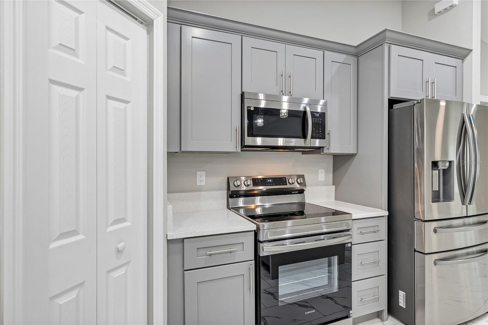 New construction, Move in Ready!!This Beautiful 3 bedroom, 2 bath, 2 car garage home was built to the highest of standards to include luxury vinyl plank flooring, Gourmet kitchen equipped with top-of-the-line Samsung appliances, top soft-close cabinets with crown molding, quartz counter tops and a sleek waterfall island, perfect for food preparation and entertaining, ceiling fans and inside laundry. This home has Modern light fixtures, quartz counters in all bathrooms, double sink in master with beautiful tile not to mention additional soft close drawers in master bath. The front entry is stunning with a modern front door, screened porch, beautiful landscaping plus rain gutters. Enjoy the beautiful Florida weather on the covered and screened back porch overlooking the fully fenced backyard!! The garage is epoxy coated and a 20-foot wide driveway these are just another of the builder’s personal touches to make your home complete and ready for your family to move in. NO HOA, Great location nearby shopping, dining, medical centers, Full one year builder warranty with an extended 2-10 warranty provided at closing. Come see this one, we know you will be impressed and get your offer in as it will sell quickly.