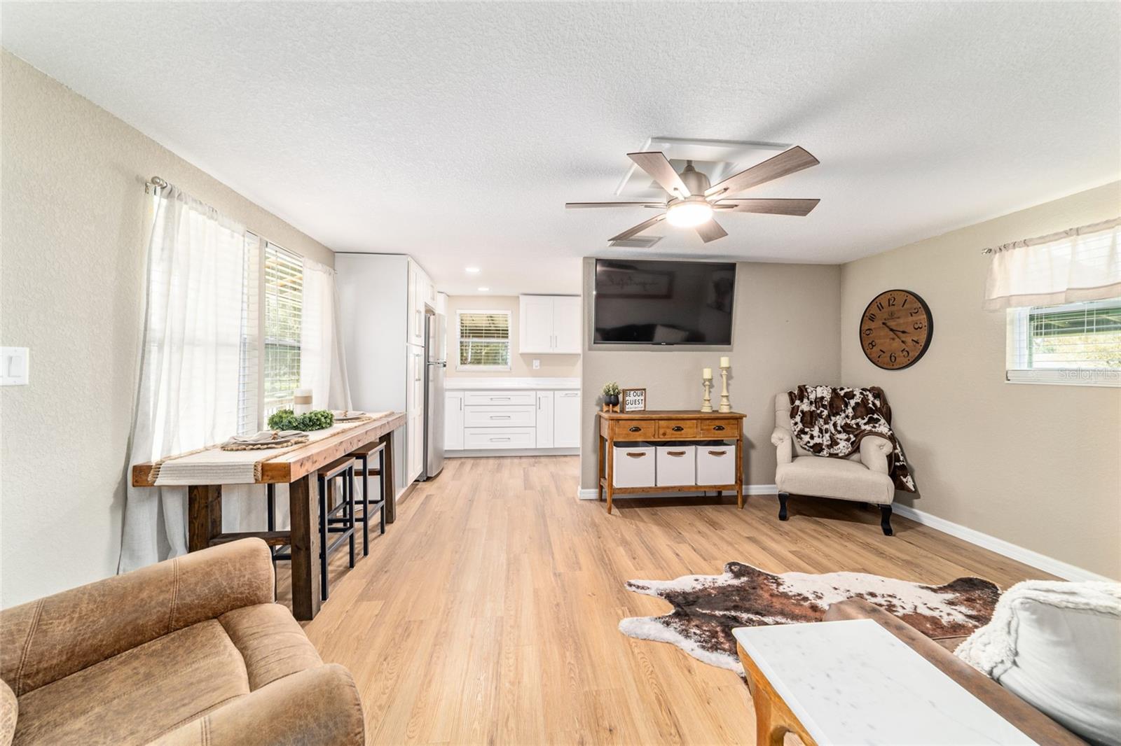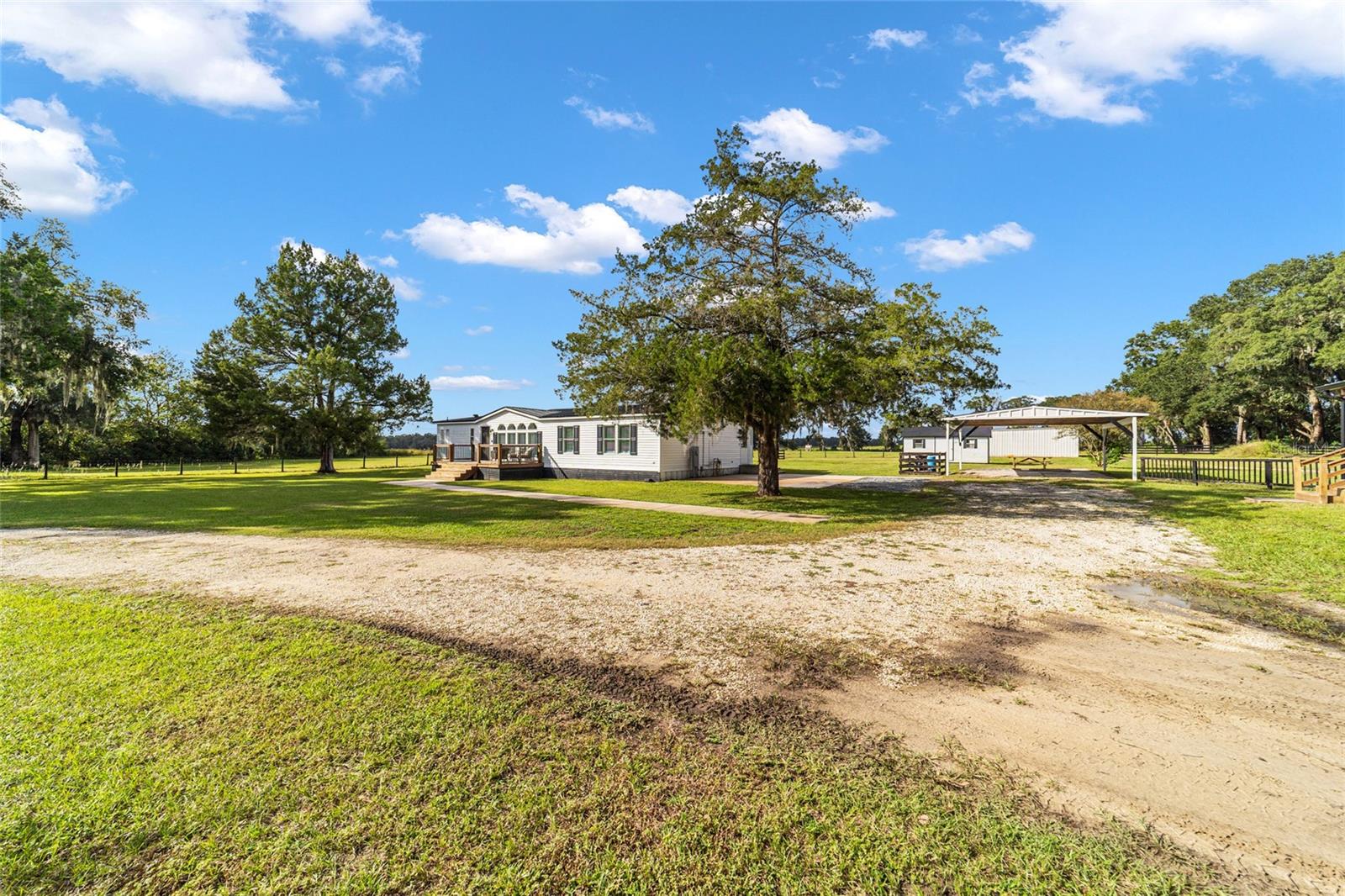 Discover this truly unique property, nestled on nearly 7 picturesque acres! This exceptional estate includes a spacious triple-wide manufactured home and an adorable remodeled guest cottage—ideal for multi-generational living or as an income-producing opportunity. Both residences were fully remodeled in 2023, including stunning kitchen and bath renovations that bring modern comfort and style to every space. The main residence offers an impressive 2,134 square feet of living space with 3 bedrooms, 2 baths, and a beautiful open-concept great room providing ample space for a large dining area or playroom—perfect for entertaining. The gorgeous kitchen features new soft-close cabinetry, all new appliances, and elegant finishes. The large master suite includes dual walk-in closets and a luxurious bathroom with an oversized walk-in shower. Enjoy welcoming front and back decks, luxury vinyl plank flooring throughout, and the peace of mind of major updates including a 2020 HVAC system, a 2023 hot water heater, and a 2022 metal roof. The charming guest cottage compliments the main home perfectly and was beautifully remodeled inside and out in 2023. Updates include all new Hardie board siding, double-pane windows, and exterior doors. Inside, you’ll love the stylish kitchen with new soft-close cabinetry, all new appliances, and a farmhouse sink. The cottage also features a cozy living room, one bedroom, a gorgeous bath with a large walk-in shower, and a spacious utility area. Additional updates include a 2023 HVAC system, a 2023 hot water heater, and a 2022 metal roof. Each home is equipped with its own well, septic system, and electric meter for added independence. Outside, enjoy the expansive pasture, a large pole barn, and two storage sheds—perfect for animals, hobbies, or equipment. Zoned Agricultural, this peaceful retreat offers endless possibilities and a serene country lifestyle while remaining conveniently located near Belleview, Ocala, and The Villages.