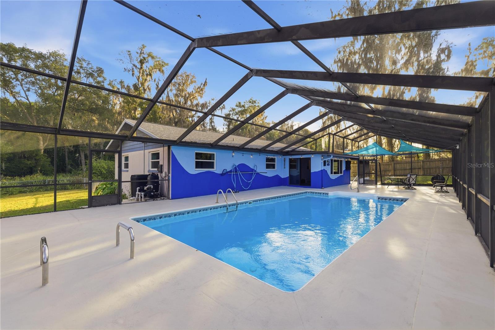 This charming 3-bedroom, 2-bath pool home truly checks all the boxes and has been thoughtfully updated for comfort, functionality, and peace of mind. Inside, you’ll find vinyl plank flooring, a cozy wood-burning fireplace, and a spacious kitchen with granite countertops, a breakfast bar, and plenty of storage throughout the home. Step outside to your private backyard retreat featuring a large in-ground pool with a birdcage, recently upgraded with a Jandy heat-and-chill system (2024) and saltwater system (2024) for year-round enjoyment. The pool deck was pressure-washed, sealed, and painted (2025), and the pool cage was professionally pressure-washed and treated (2026). Additional updates include new carpet in all bedrooms (2023), a restored and sealed wood fence (2023), a new water heater (2024), and a newer roof (2022). The spacious yard, surrounded by mature trees, includes a tool shed and offers privacy and functionality. Meticulously maintained and move-in ready, this home delivers the perfect blend of charm, upgrades, and Florida lifestyle living.
